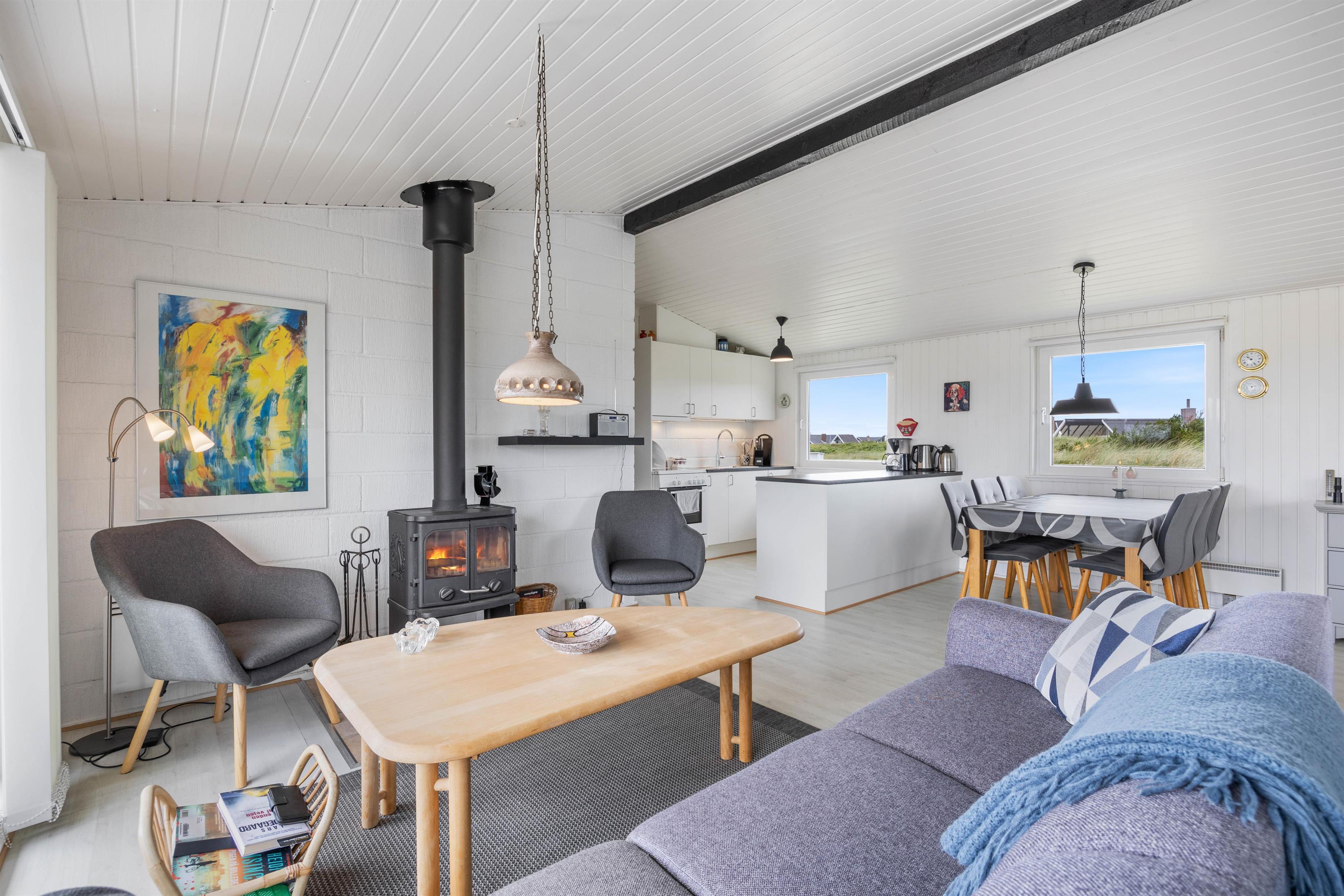 Derudover vil I kunne se en god film i sofaområdet, høre jeres yndlings musik med bluetooth højtaleren, eller spille et godt gammeldags brætspil ved spisebordet. Alt dette kan gøres mens husets brændeovn spreder varme og hygge. Til lidt ekstra opvarmning er der også installeret en energibesparende varmepumpe.