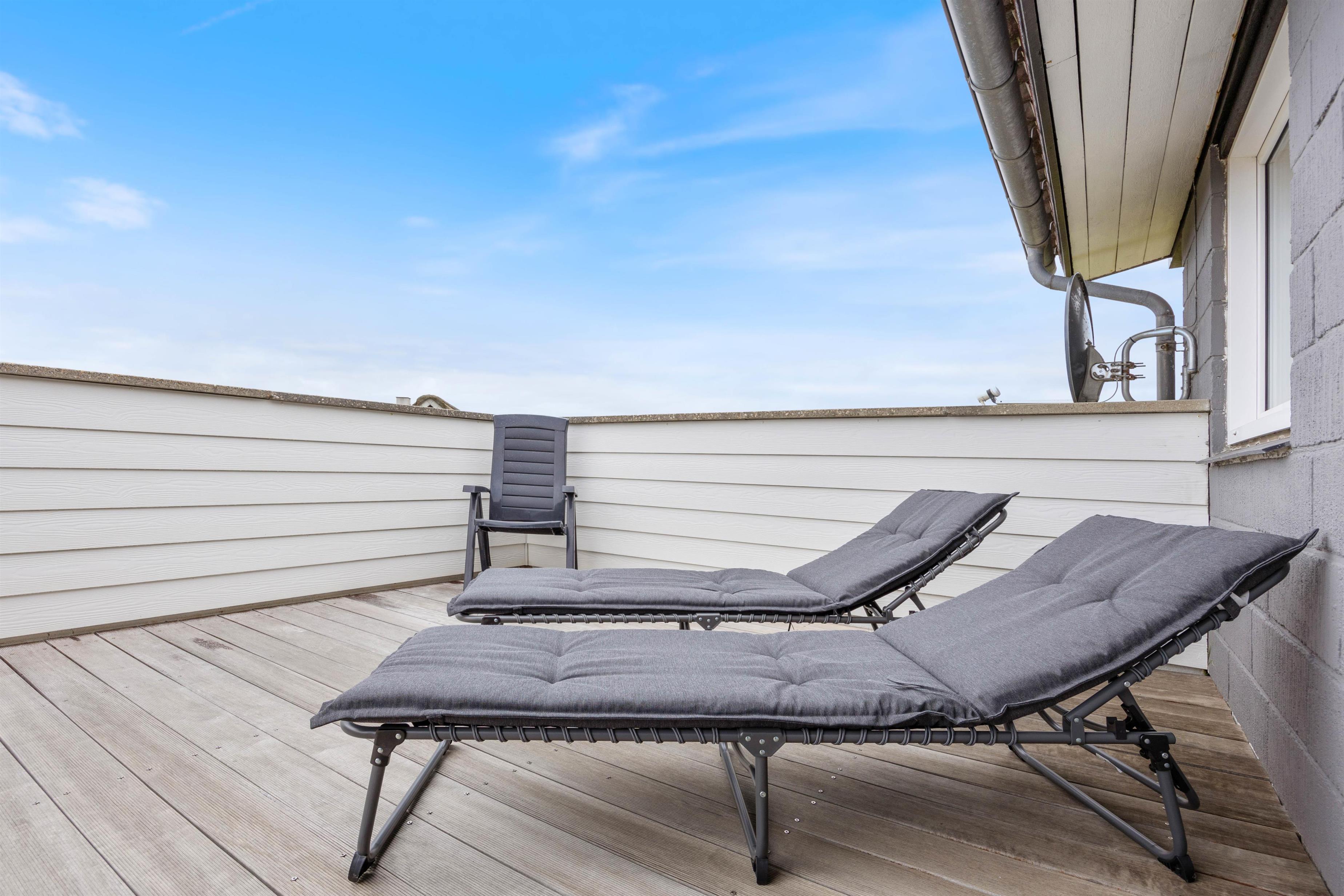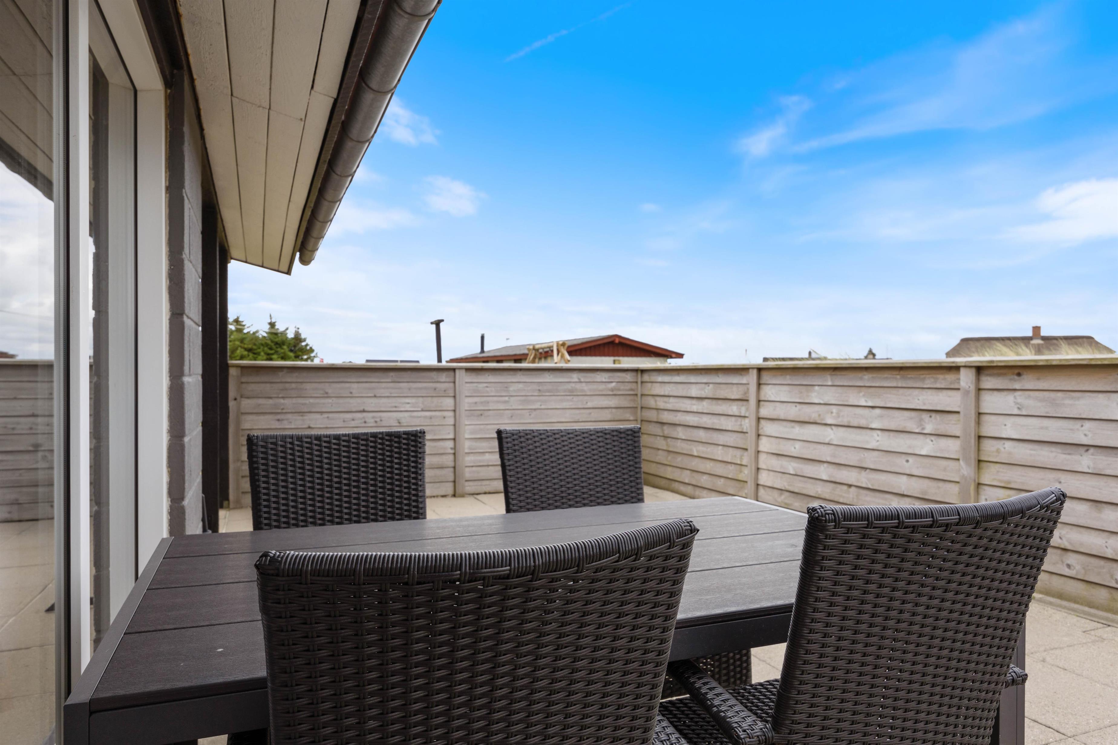 På den skønne terrasse som er delvist overdækket og afskærmet, vil I kunne nyde jeres dage i fred og ro fra naboer. Her er der nemlig både langt til naboerne, samt der er sat stakit op som afskærmer jer fra forbipasserende.