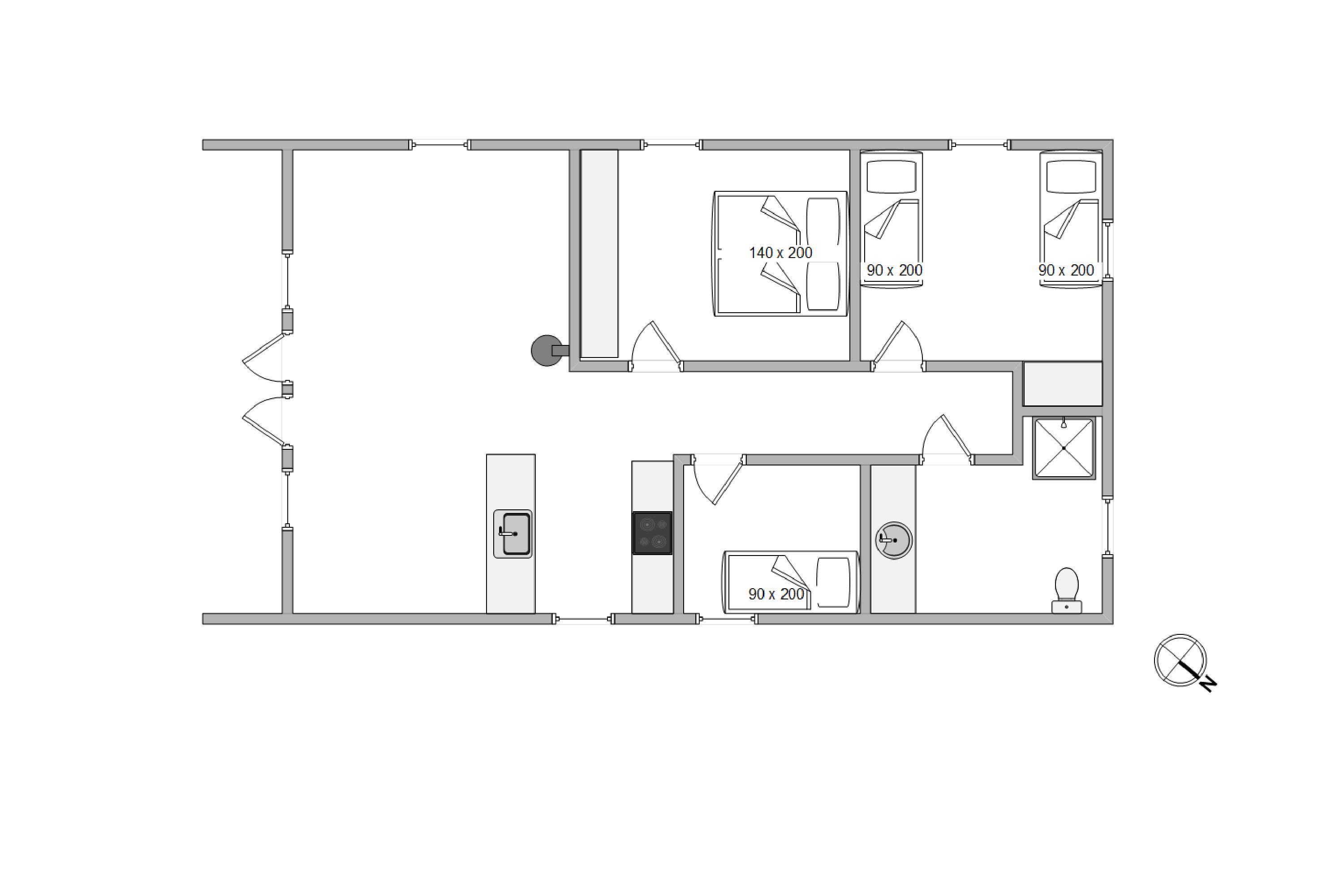 Feriehuset består af et badeværelse, tre soverum og et stort køkken-alrum, der flyder sammen som et dejligt opholdsrum, hvor familien kan samles gennem dagen. Den enkle og lyse indretning skaber en visuel og rolig base, der passer perfekt til det enkle sommerhusliv. Indretningen har små personlige detaljer, der skaber masser af varme og hygge i indretningen. Her vil du med garanti føle dig hjemme og godt tilpas. Chromecast i stuen er sørger for, at I kan stream lige det I vil, når I vil.