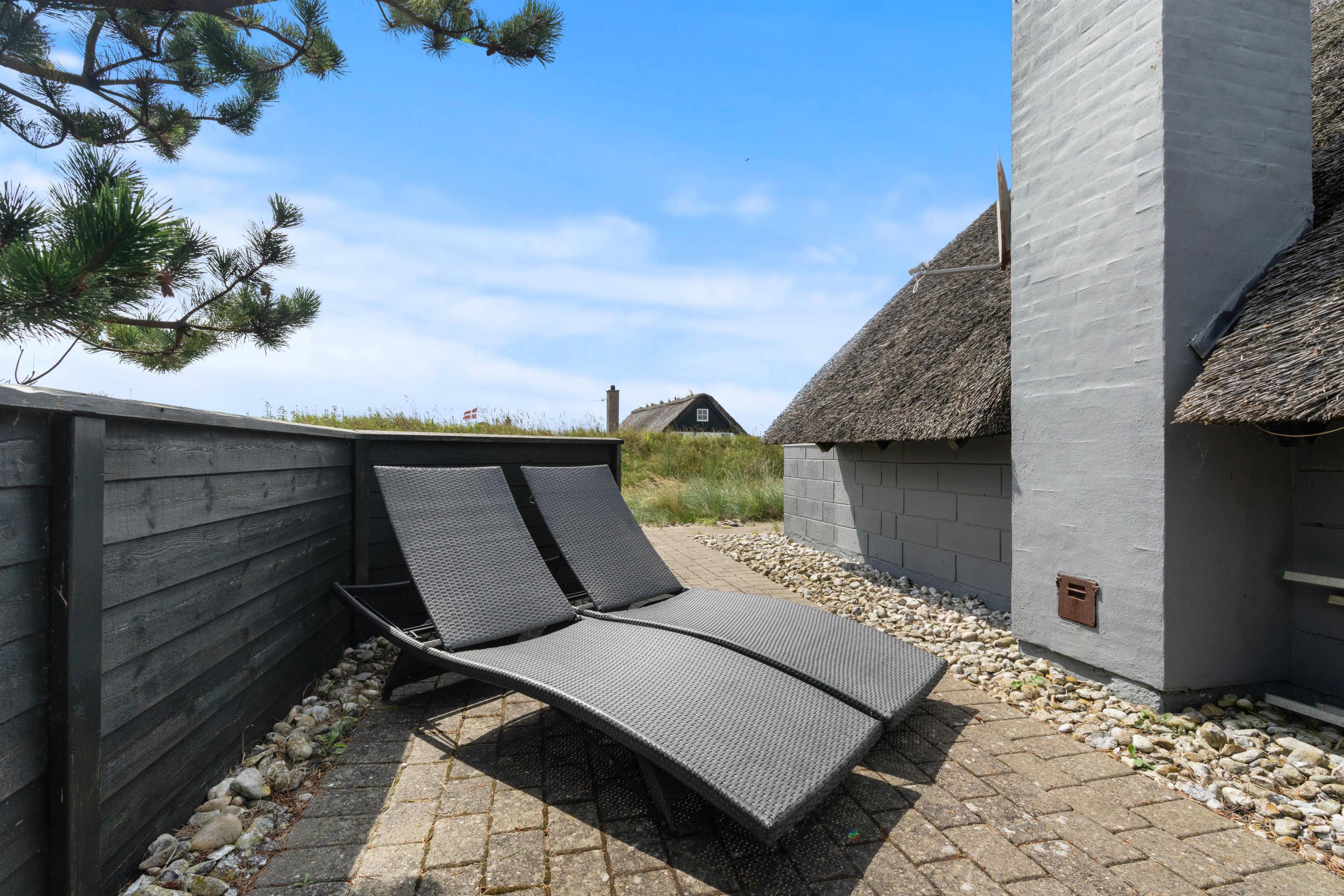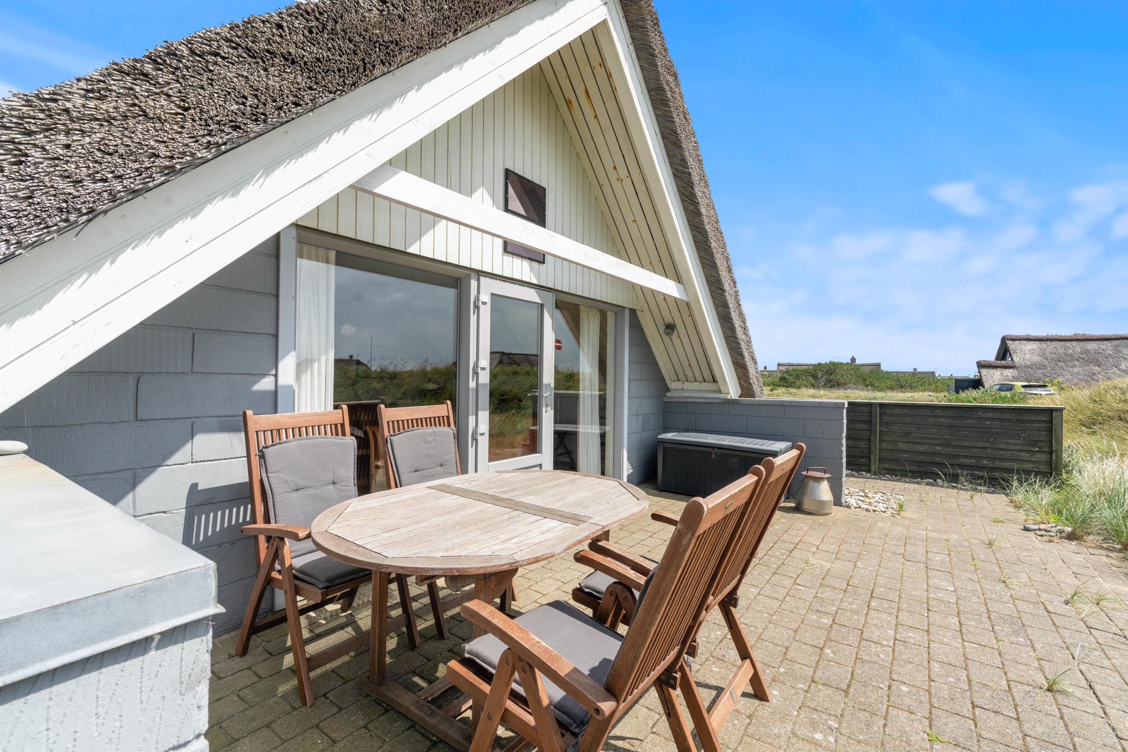 Nyd den friske luft og solen på den sydvendte terrasse, lyt til suset fra Vesterhavet eller find en læfyldt plet mod øst. Mulighederne er mange. Huset er omgivet af fine afskærmede terrasser, og mod syd er terrassen delvist overdækket. Her er gode havemøbler med hynder og en grill til en hyggelig aften sammen med familie eller venner.