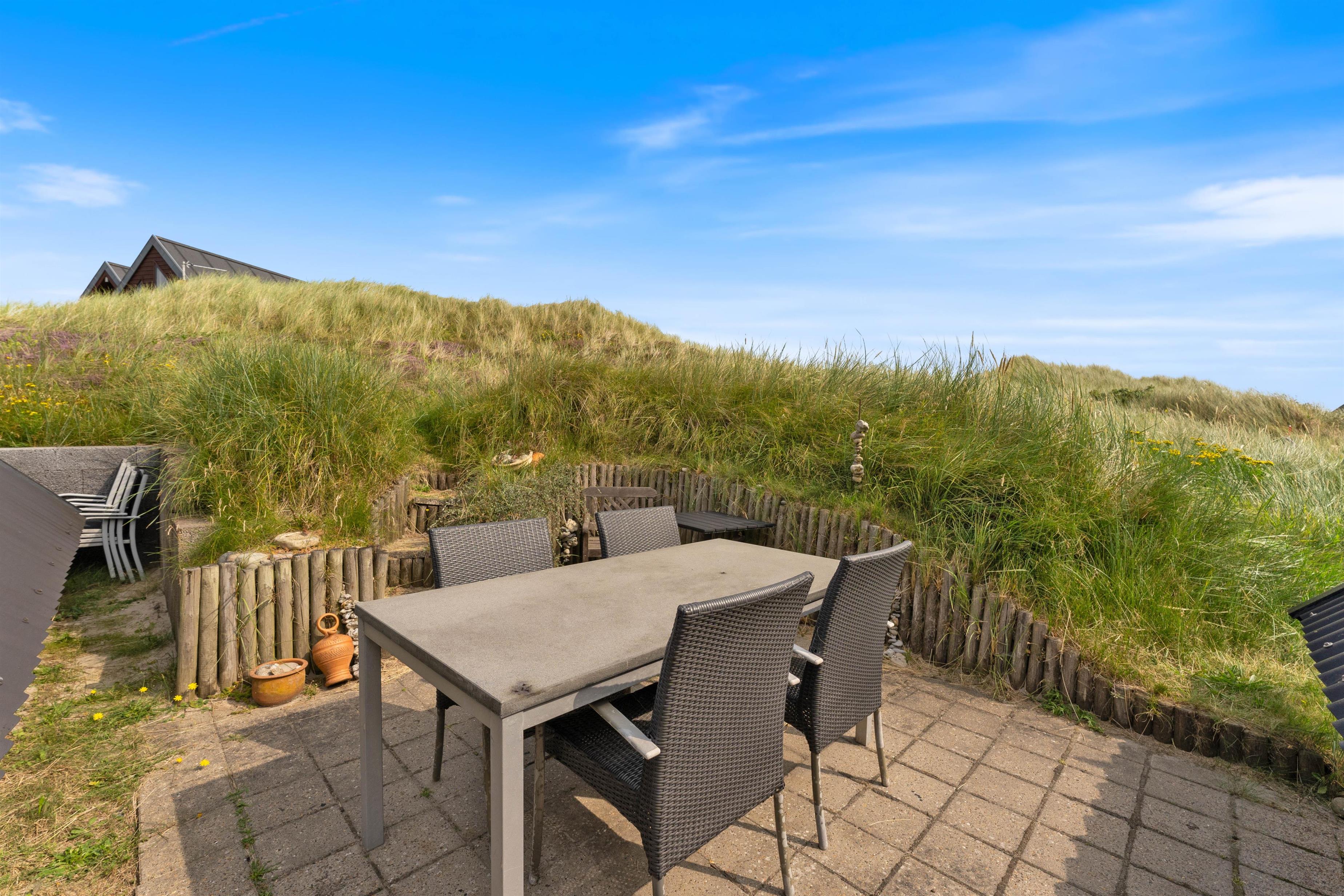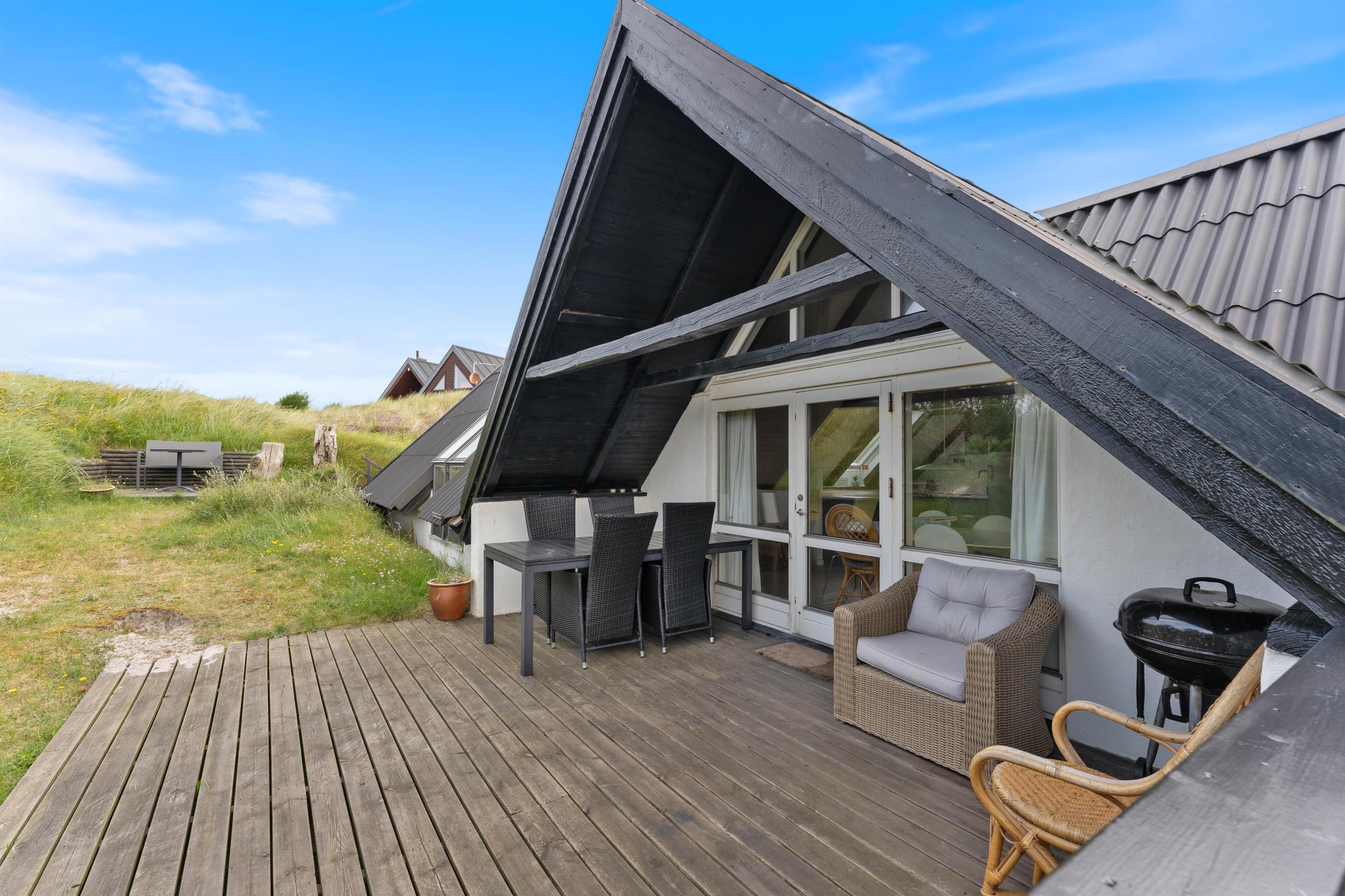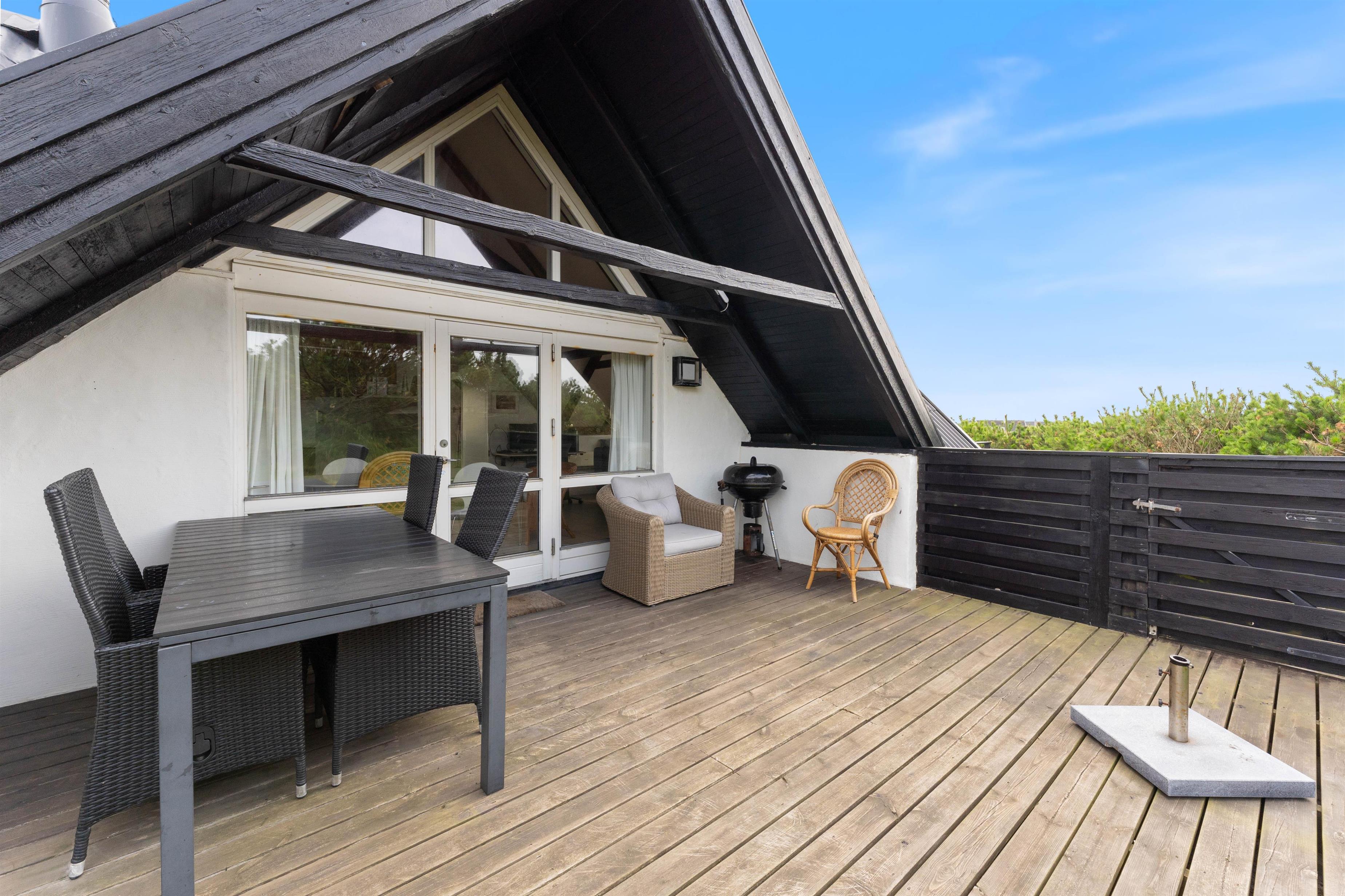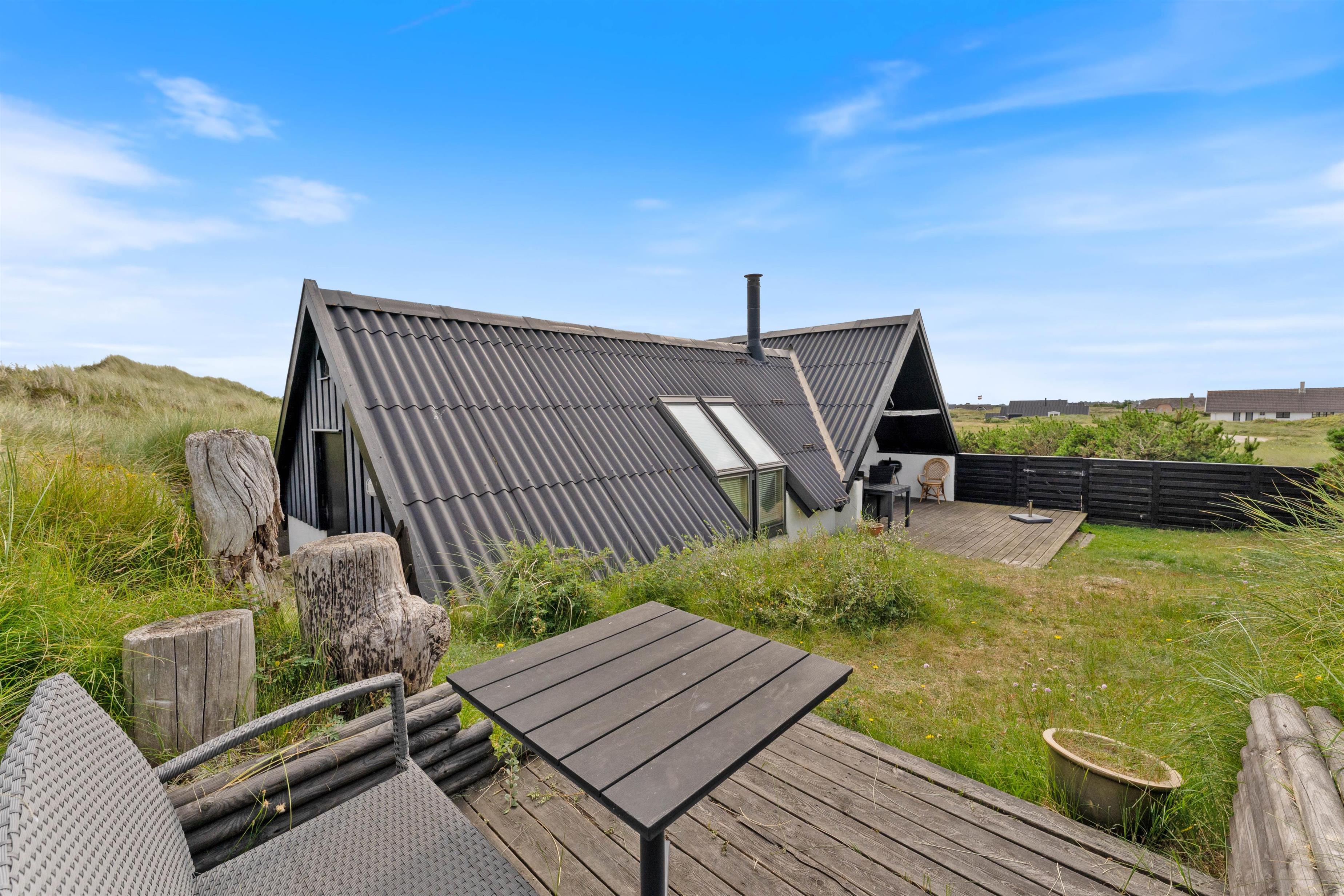 Derudover har sommerhuset en højtbeliggende træterrasse med ekstra god udsigt til det helt uspolerede hedelandskab. Her kan I holde øje med børnene, der leger i haven eller i den tilhørende sandkasse. I kan også tænde op i grillen og nyde et lækkert måltid.