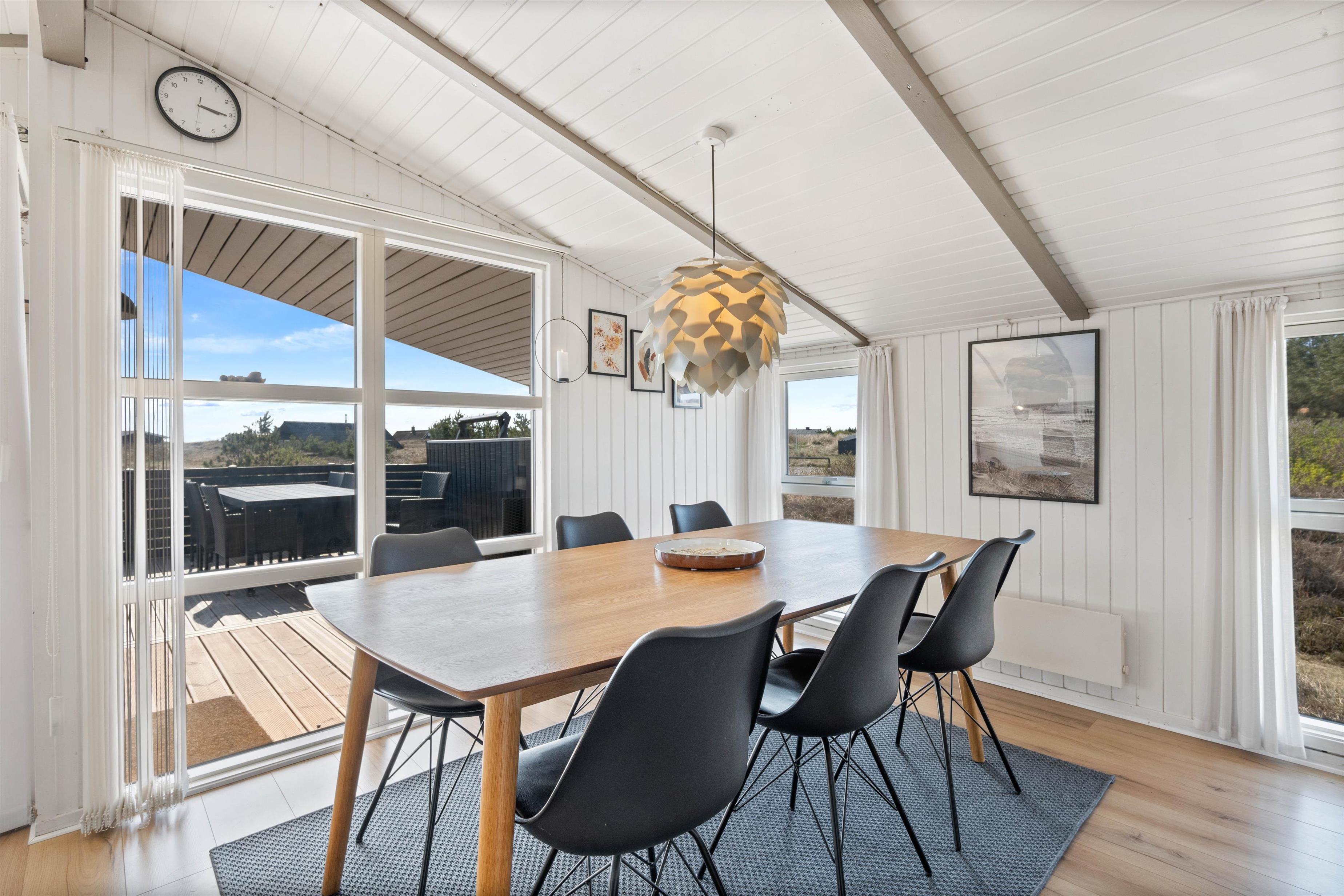 Sommerhuset er moderne indrettet, og har trælofter til kip i alle rum. Der er i alt 3 soveværelser. 2 med dobbeltsenge og 1 med to enkeltsenge. Når I trænger til at komme helt ned i gear kan i sætte jer ned i spaen, som I finder på sommerhuset badeværelse, og nyde roen. På badeværelset er der også gulvvarme og en vaskemaskine.