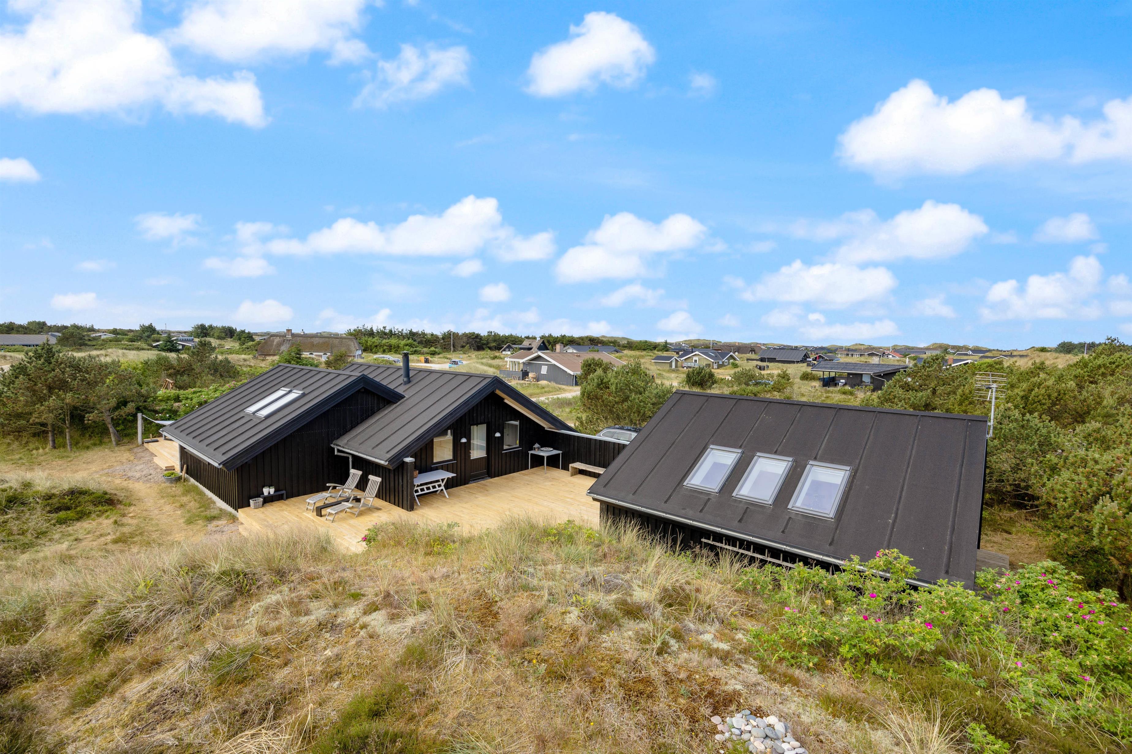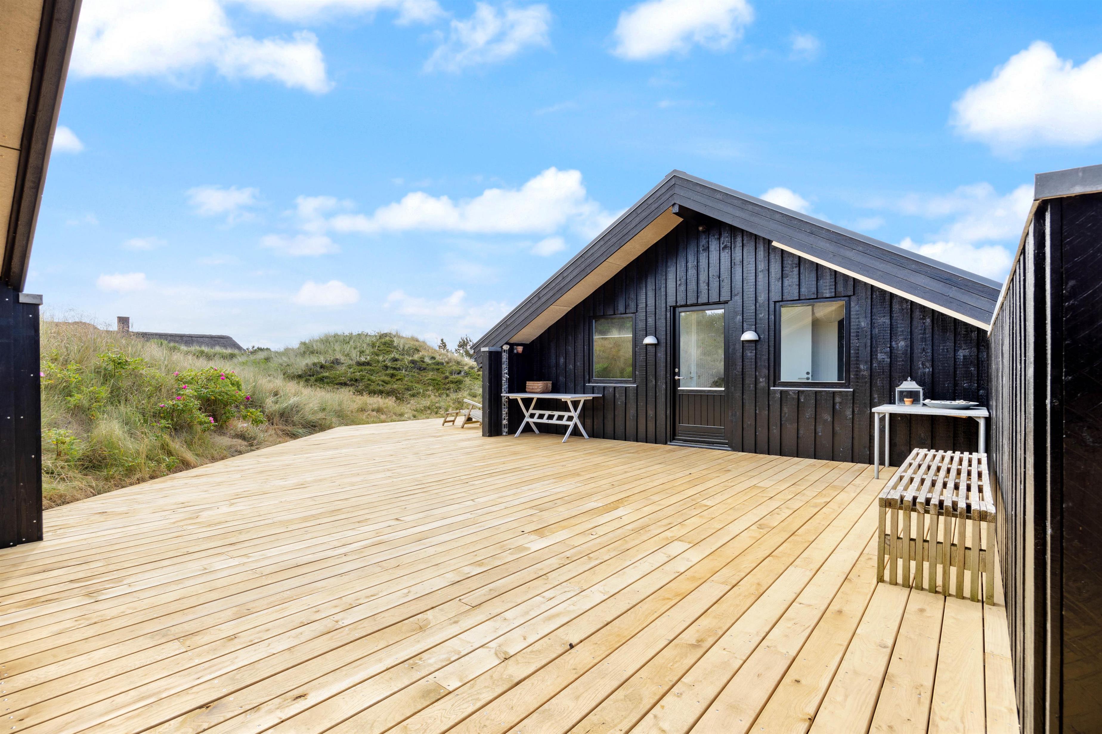 Drømmer I om en ferie i det vestjyske klitlandskab i gåafstand fra Vesterhavet, så er dette sommerhus i Klegod bestemt værd at se nærmere på! Sommerhuset på Fladsbjergvej 102 ligger dejligt ugeneret, kun 800 meter fra havet og har plads til 6 personer. Sommerhuset byder på en skøn afskærmet terrasse med et udendørs køkken og ligger dejligt ugeneret. På terrassen er også en udebruser, hvor I kan få skyllet fødderne efter en lang gåtur ved stranden.