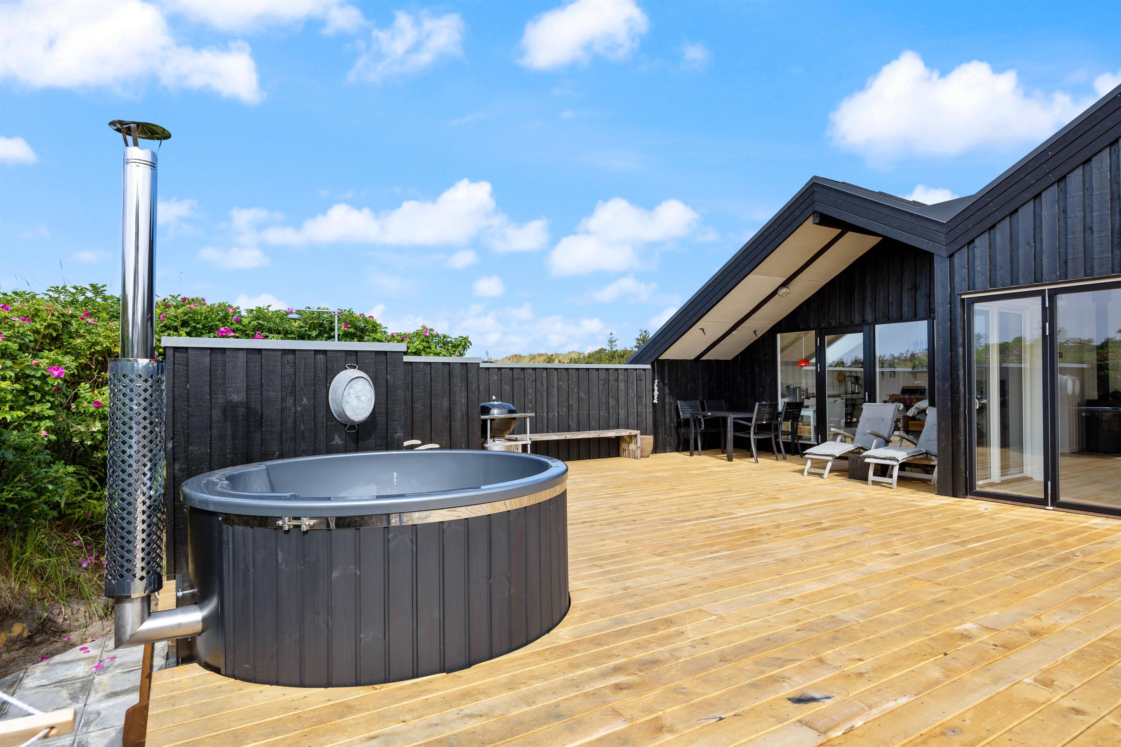Desuden kan I nyde et varmt bad i det skønne vildmarksbad. Tag et glas vin med og nyd varmen med en af dine kære.