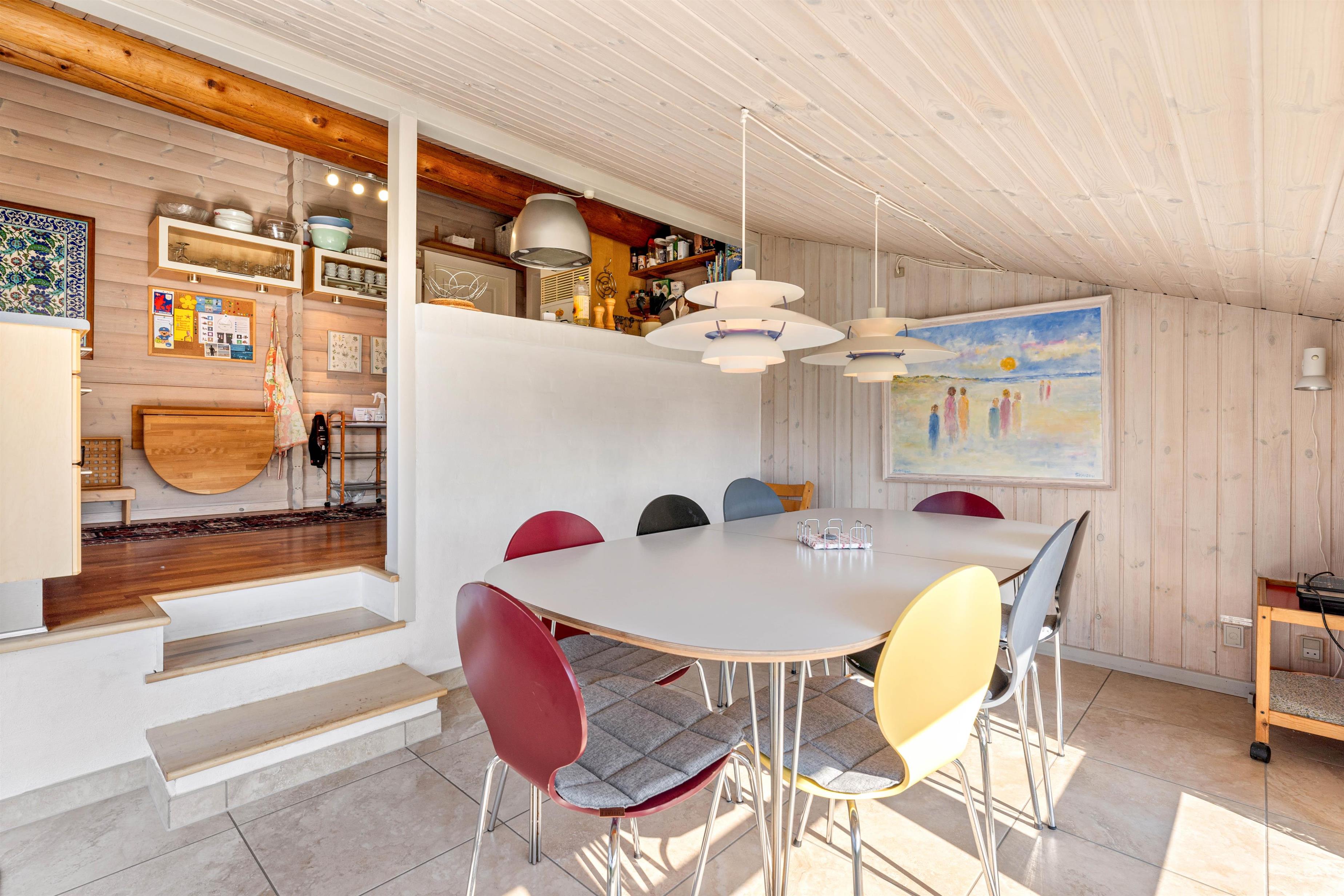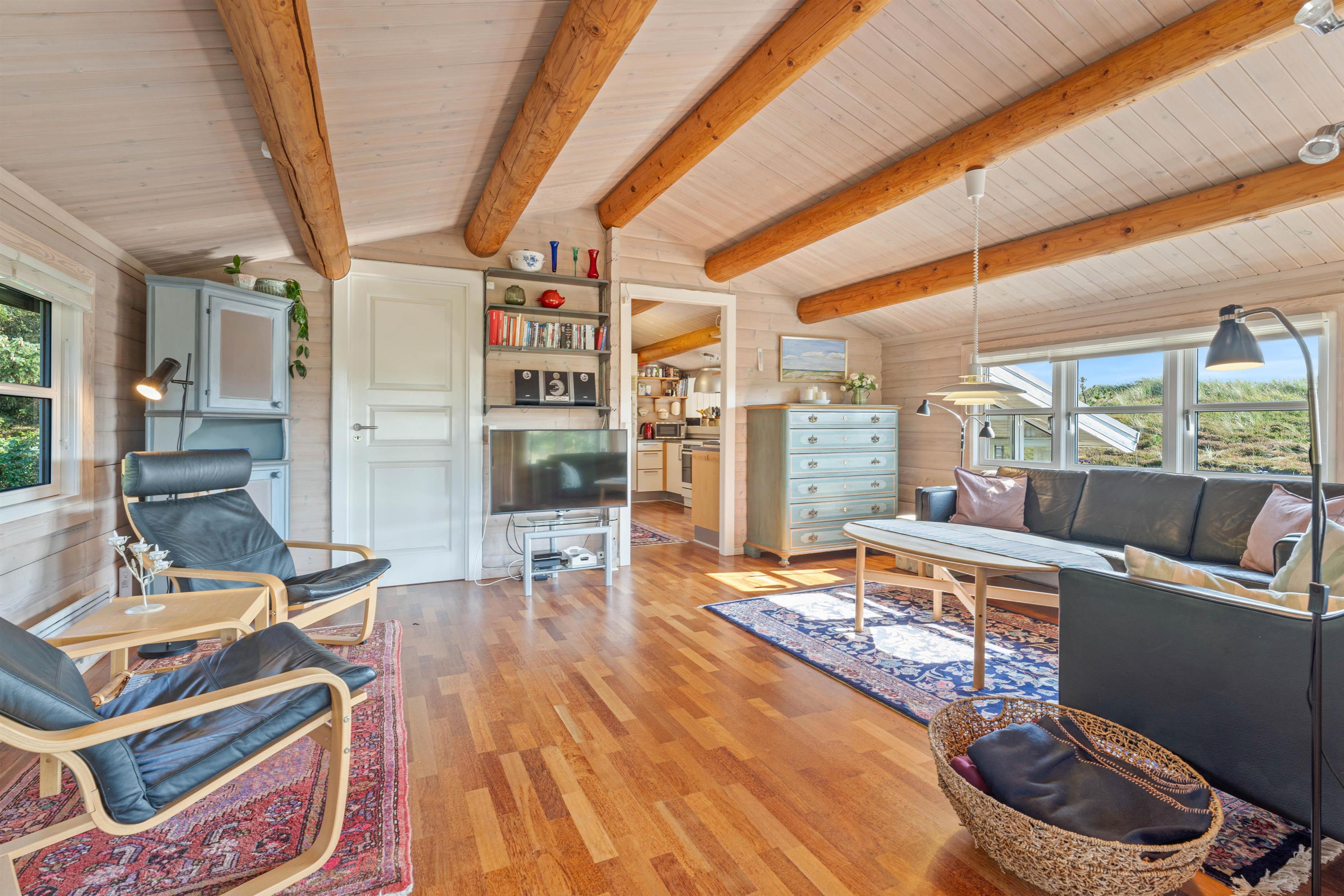 Dejligt, charmerende og velindrettet feriehus med dejlig fredelig beliggenhed på en kuperet naturgrund i et attraktivt område. Huset er omgivet af flere terrasser, – en delvist overdækket og med en flot udsigt mod syd. Indretningen er i en flot, personlig stil, hvor tingene passer godt sammen.