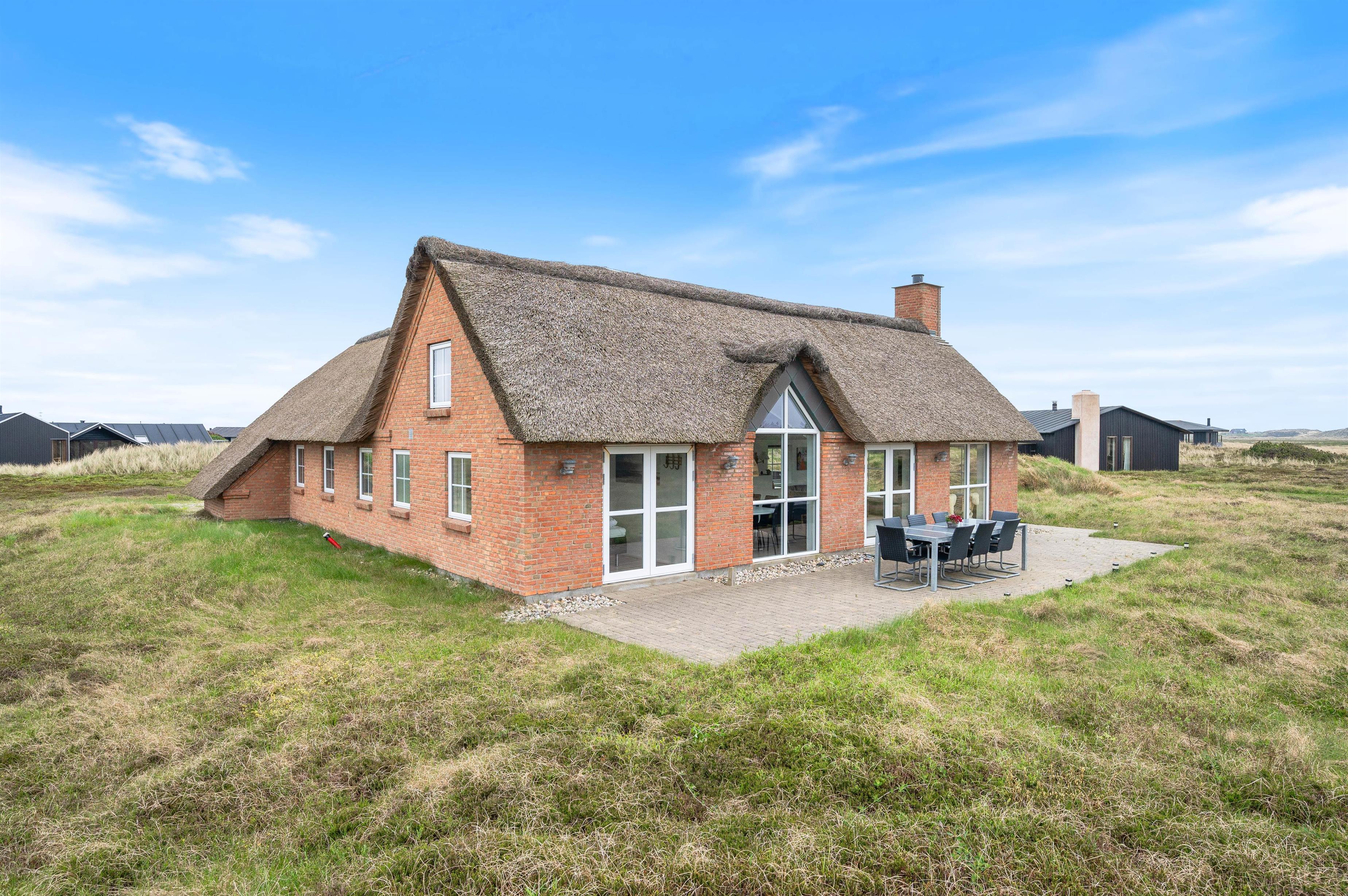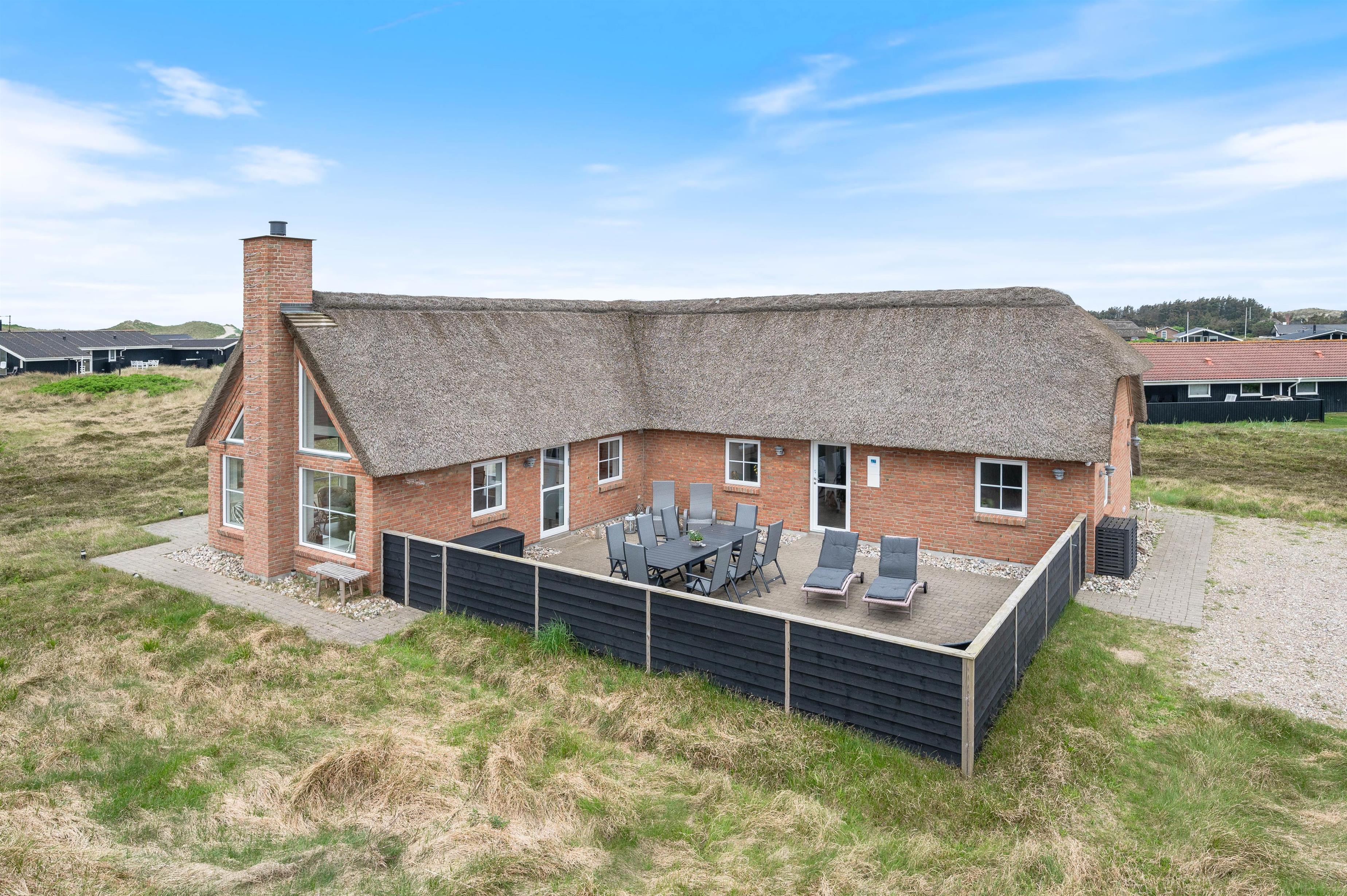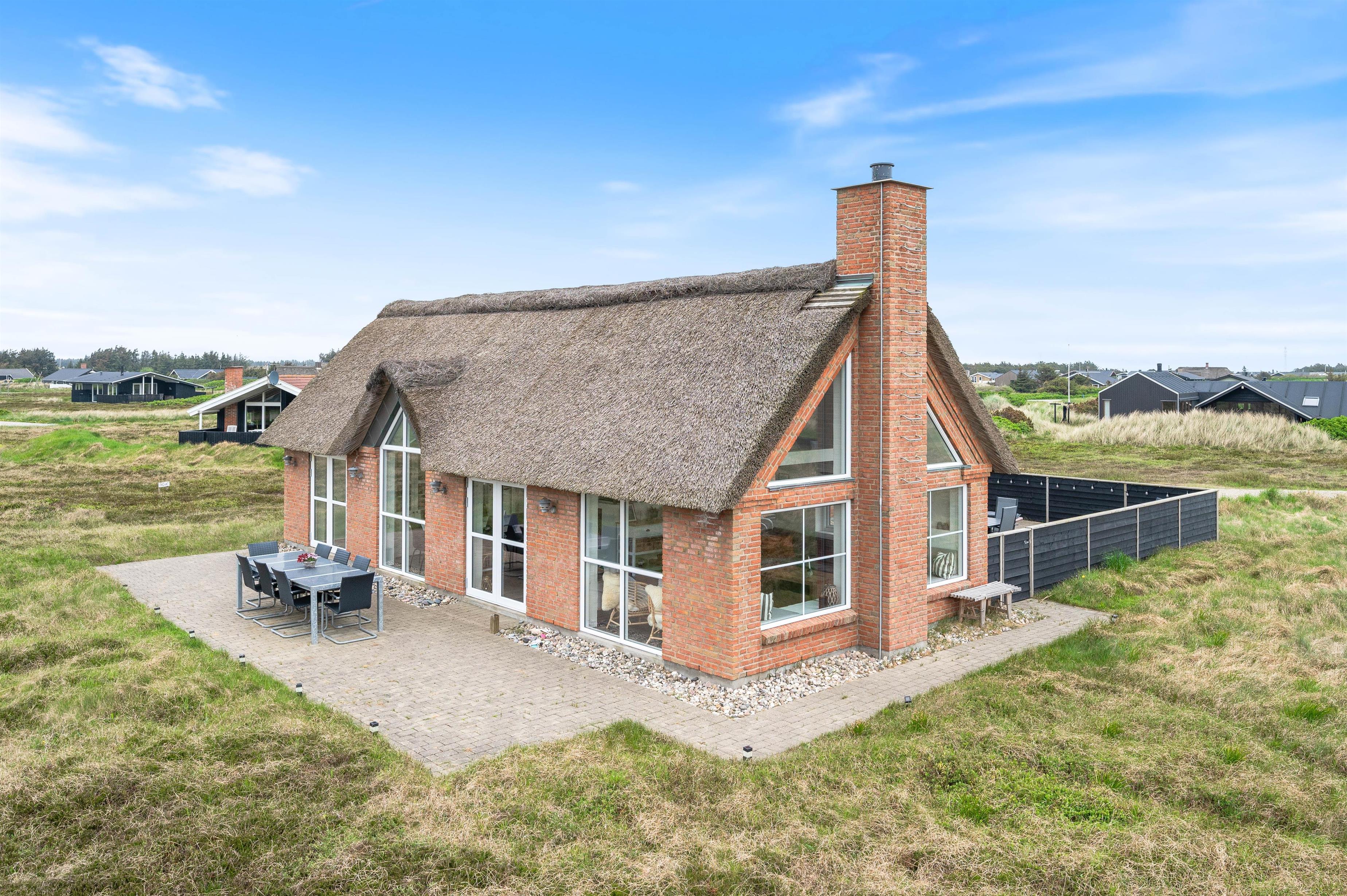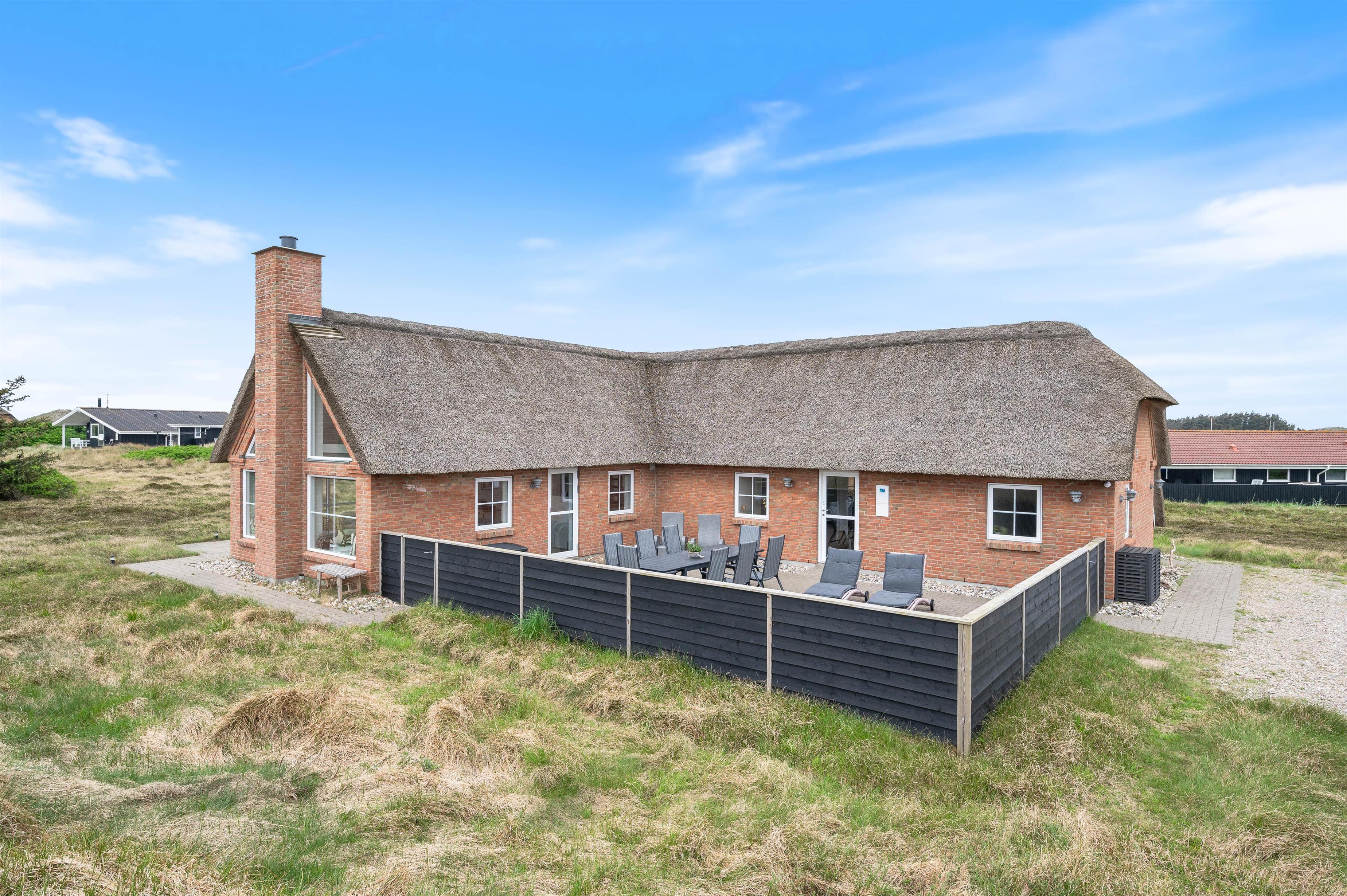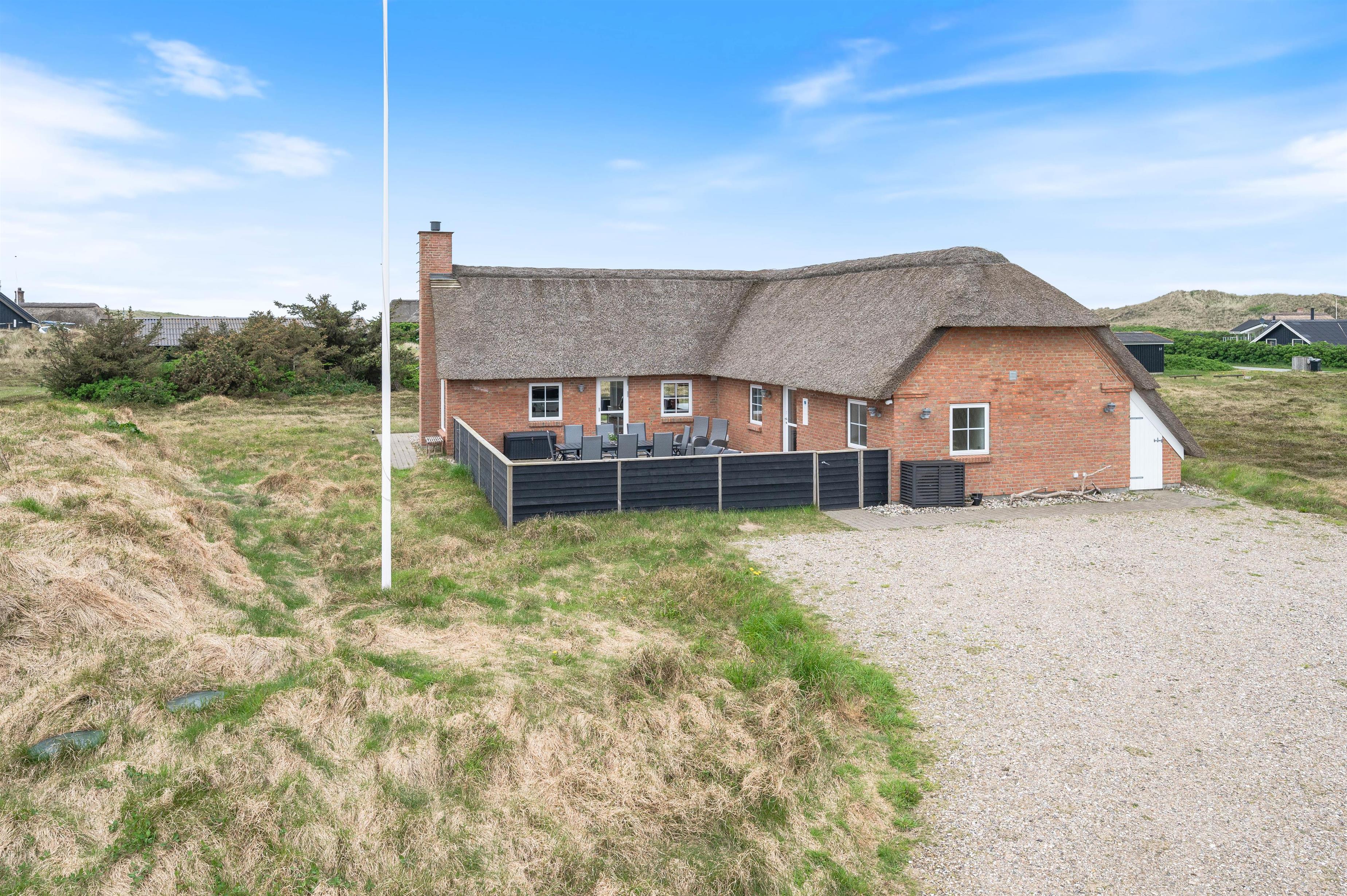 Denne flotte, stråtækte perle på Fladsbjergvej 49 er det helt ideelle feriehus til de wellnessglade gæster. Et moderne udseende med flot og gennemtænkt interiør kombineret med lækre faciliteter som spabad og sauna tilfører ferien ekstra luksus - og den strandnære beliggenhed er prikken over i'et. Huset ligger skønt - man betages af udsigten til klitterne, Lyngvig Fyr og "baronens ejendom".