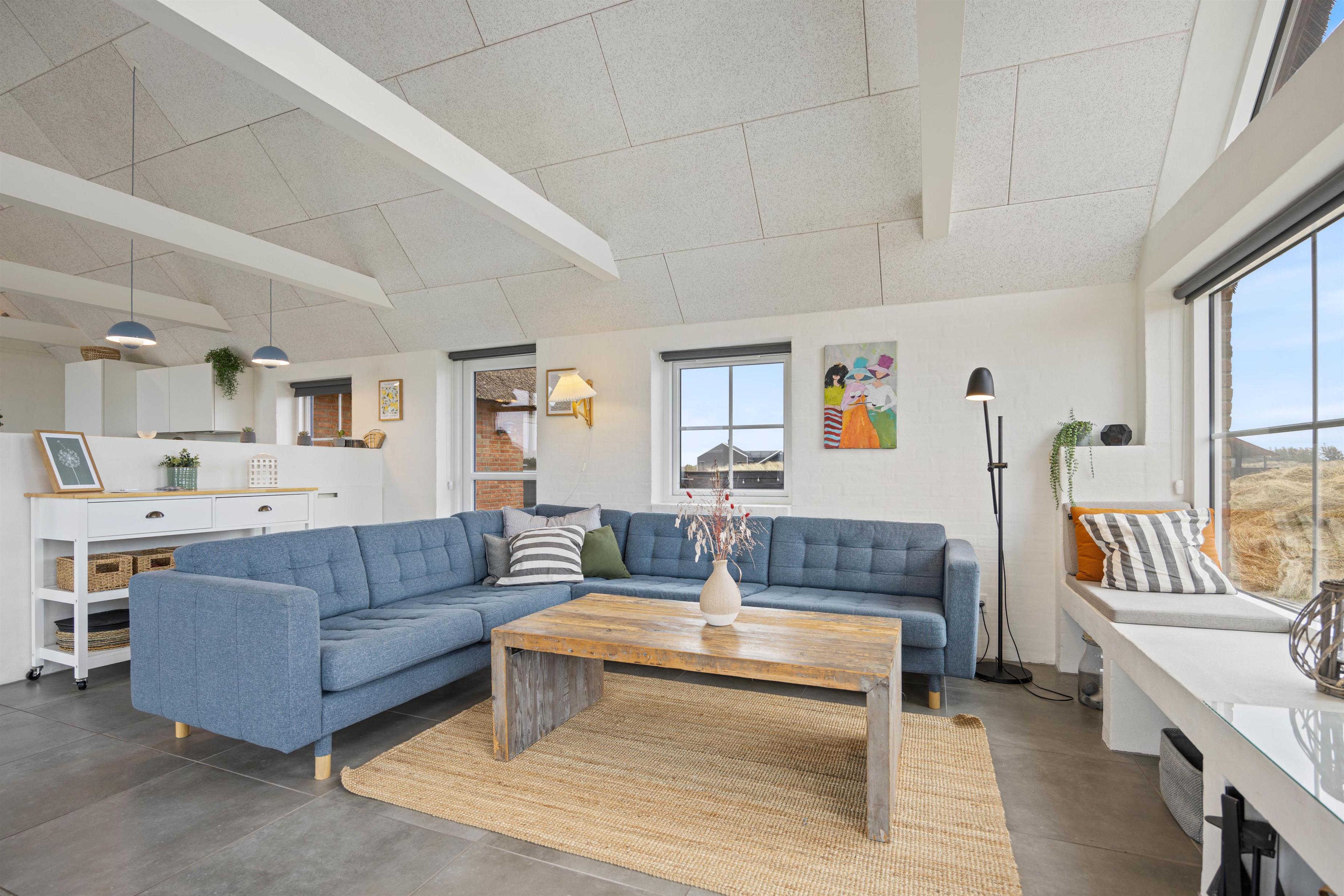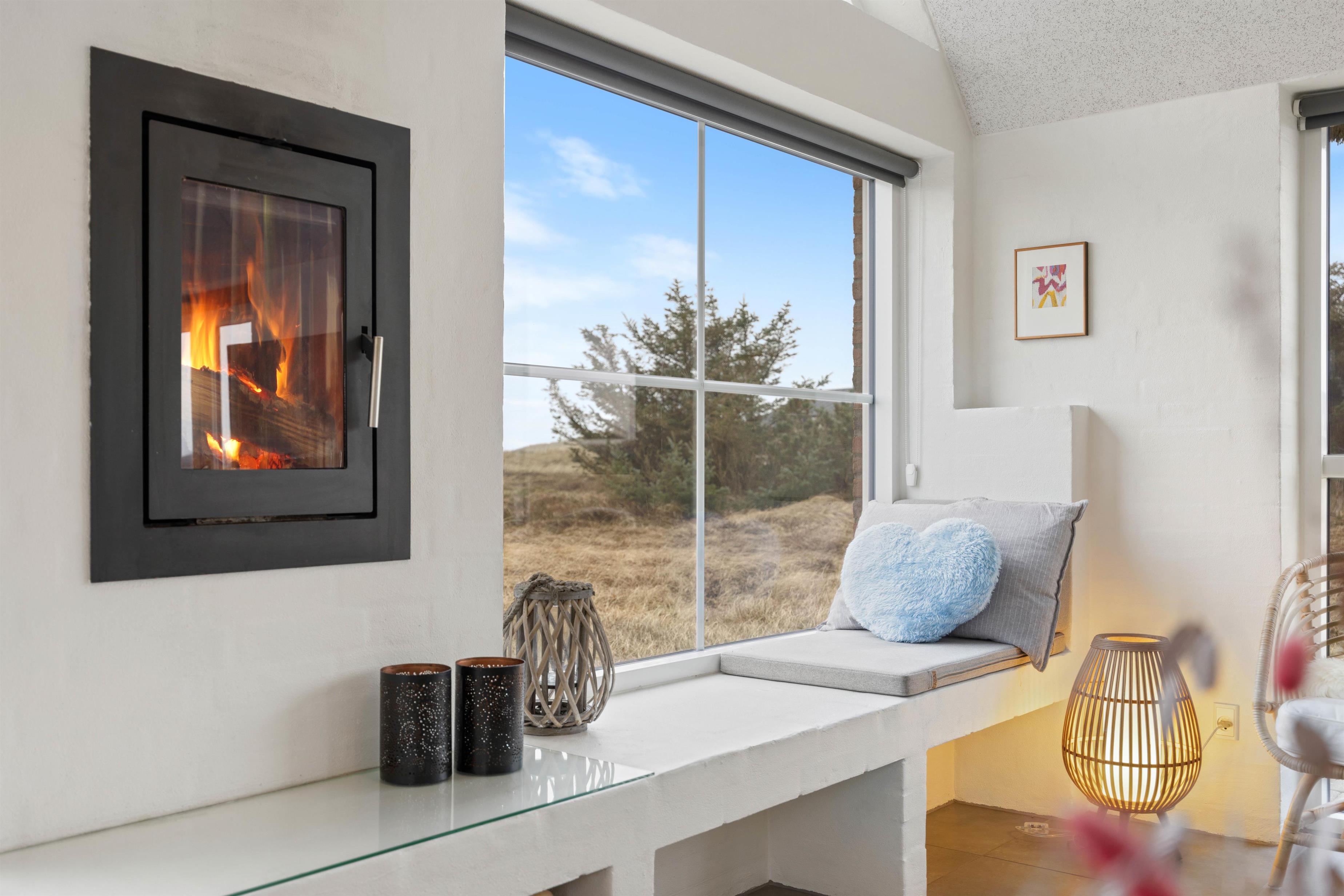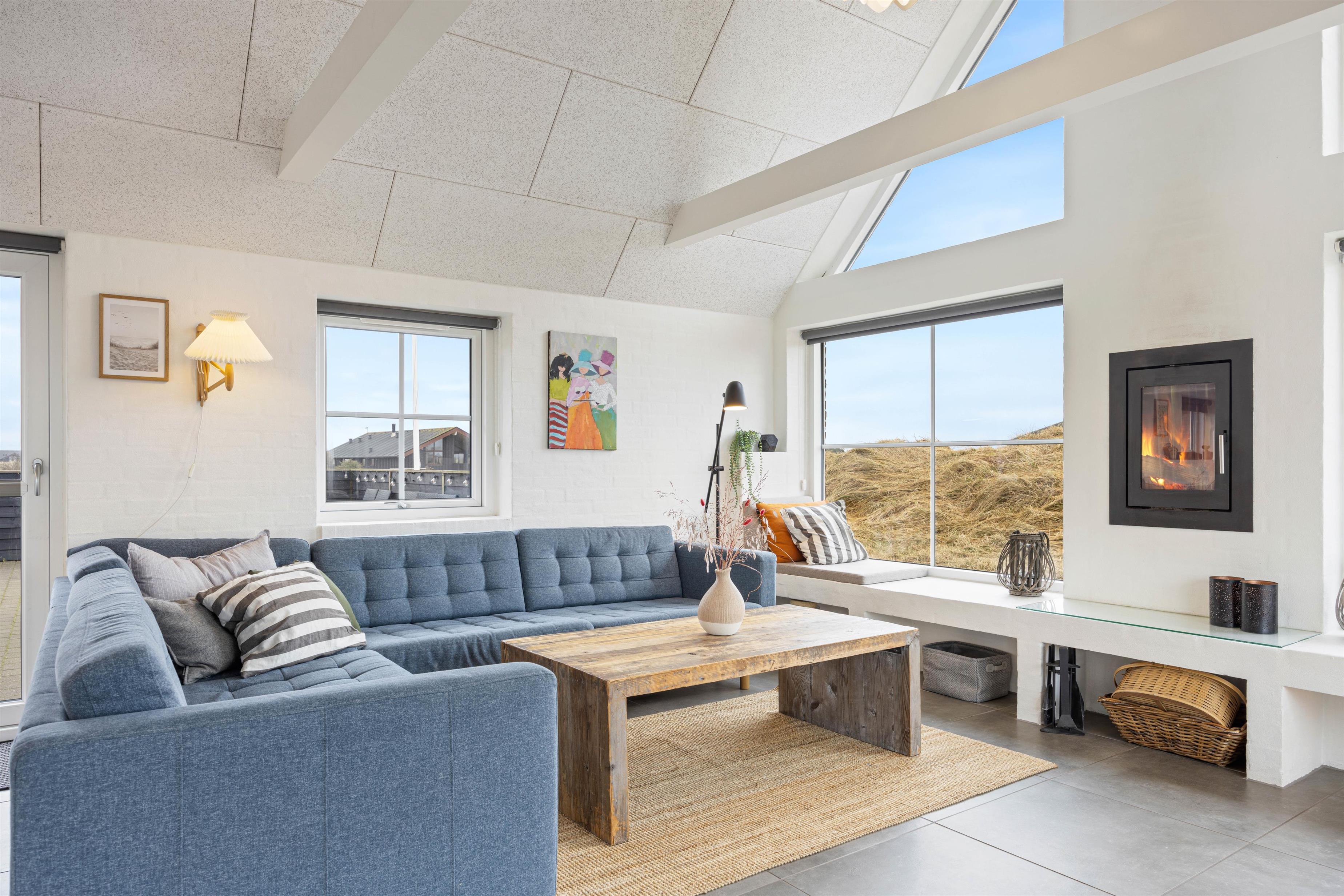 Loft i kip, lyse farver fra top til tå og ikke mindst store glaspartier skaber en behagelig atmosfære og gør omgivelserne endnu mere imødekommende, mens den lækre indretning blandet med de klassiske feriefaciliteter som for eksempel den indbyggede brændeovn gør ferien både hyggelig og luksuriøs på én og samme tid.