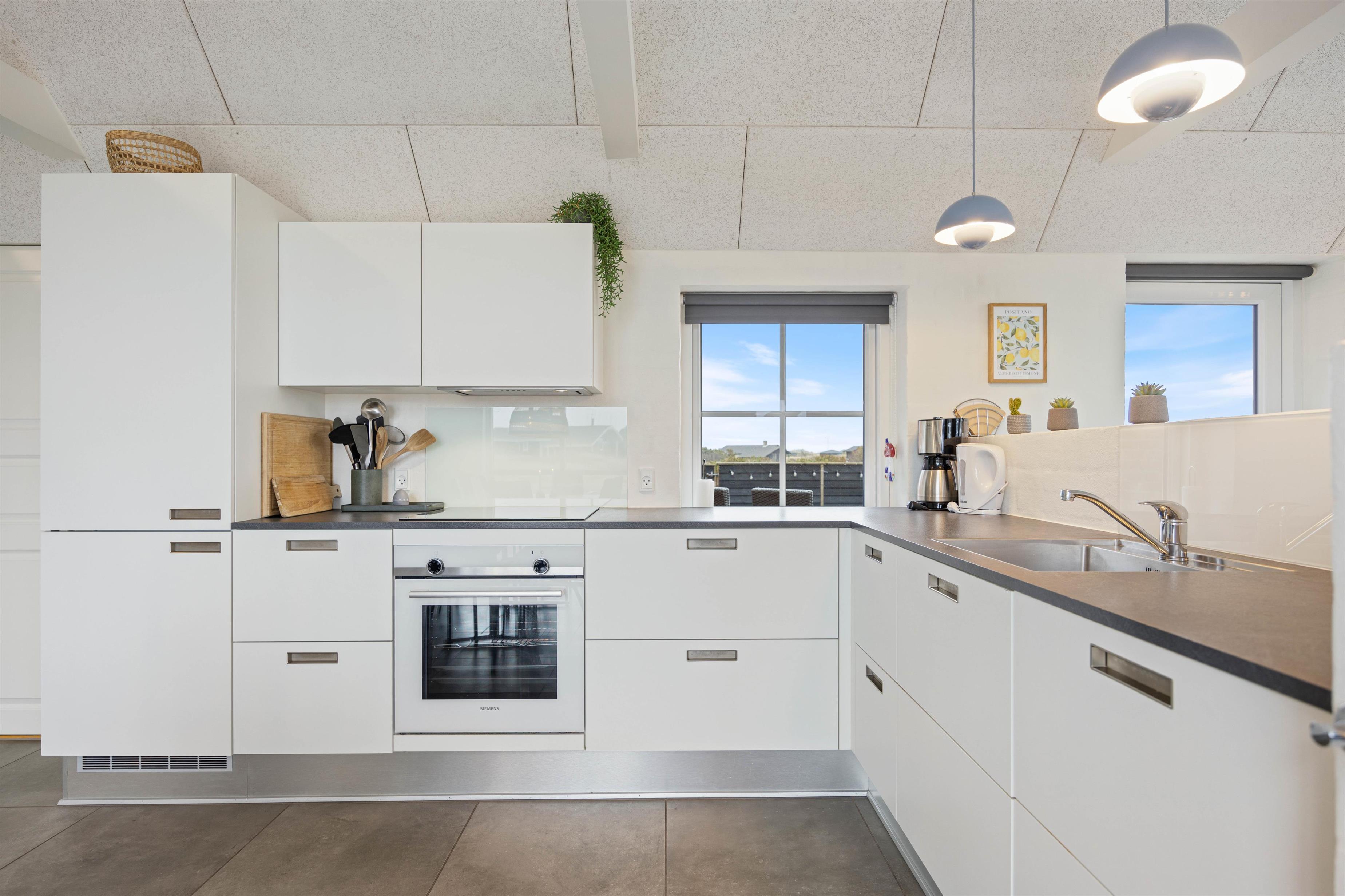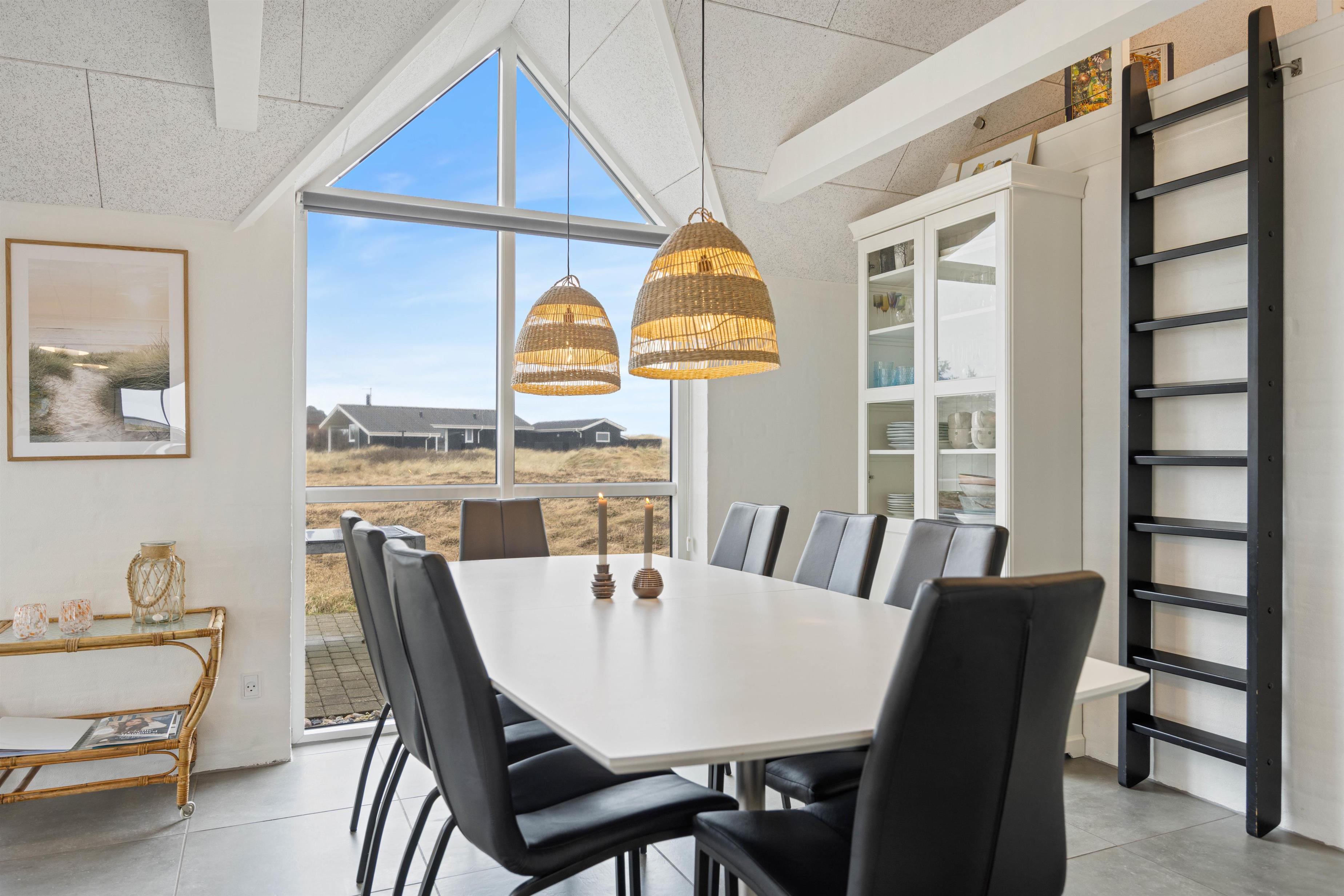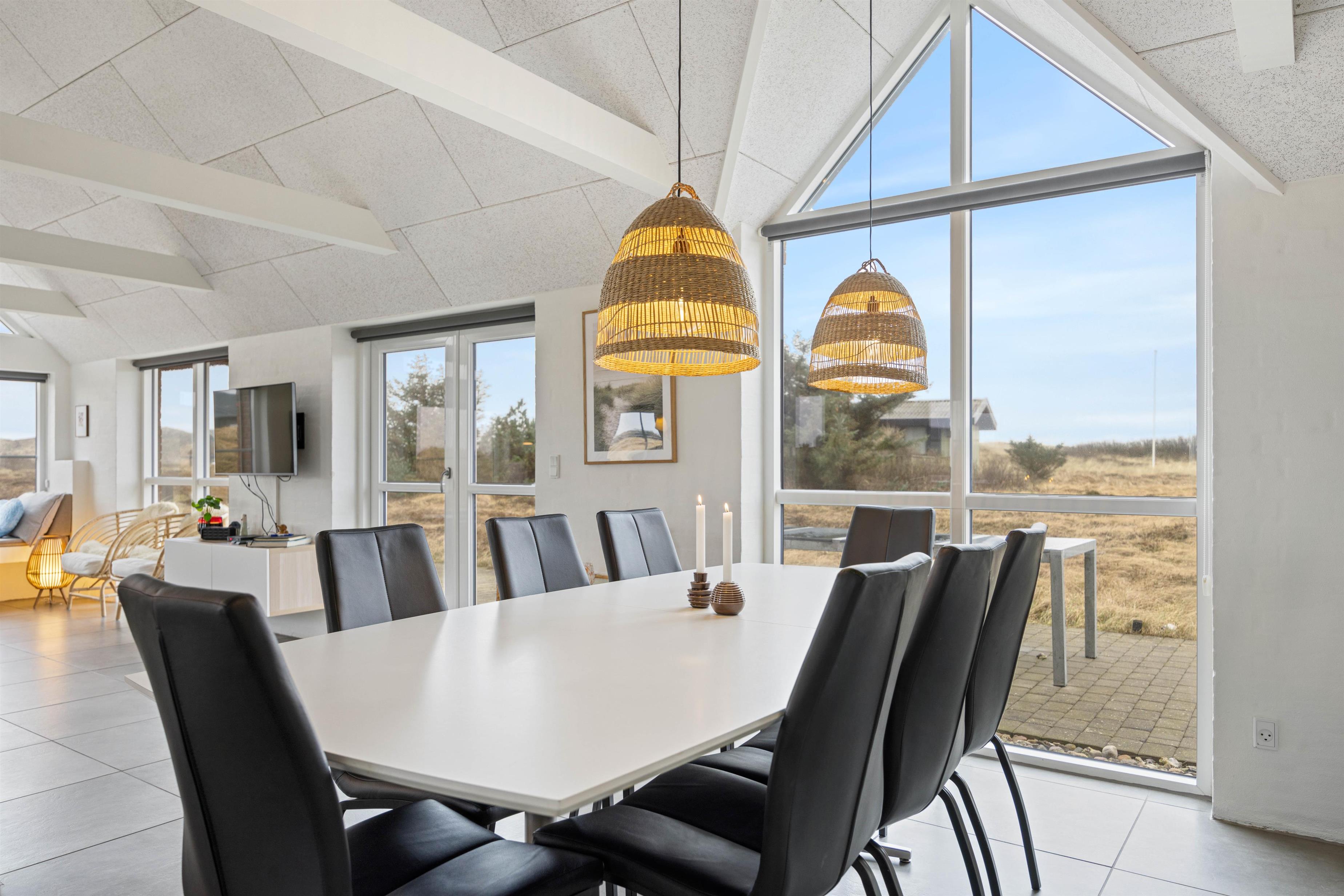 Loft i kip, lyse farver fra top til tå og ikke mindst store glaspartier skaber en behagelig atmosfære og gør omgivelserne endnu mere imødekommende, mens den lækre indretning blandet med de klassiske feriefaciliteter som for eksempel den indbyggede brændeovn gør ferien både hyggelig og luksuriøs på én og samme tid.