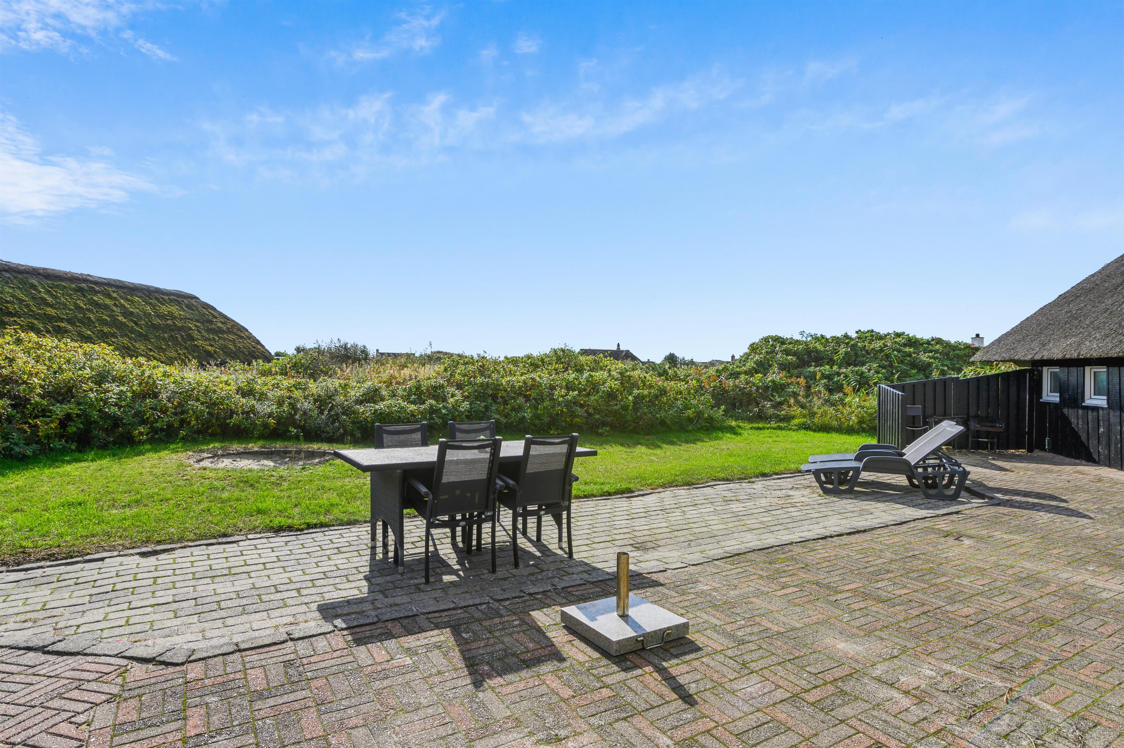 Sommerhuset er beliggende på en mere end 2.200 kvadratmeter stor grund, hvor I har god plads at boltre jer på – både børn og hunde vil helt sikkert elske det! Efter en dejlig dag i den friske vestjyske luft kan I samles på terrassen og lave en lækker middag på sommerhusets grill.