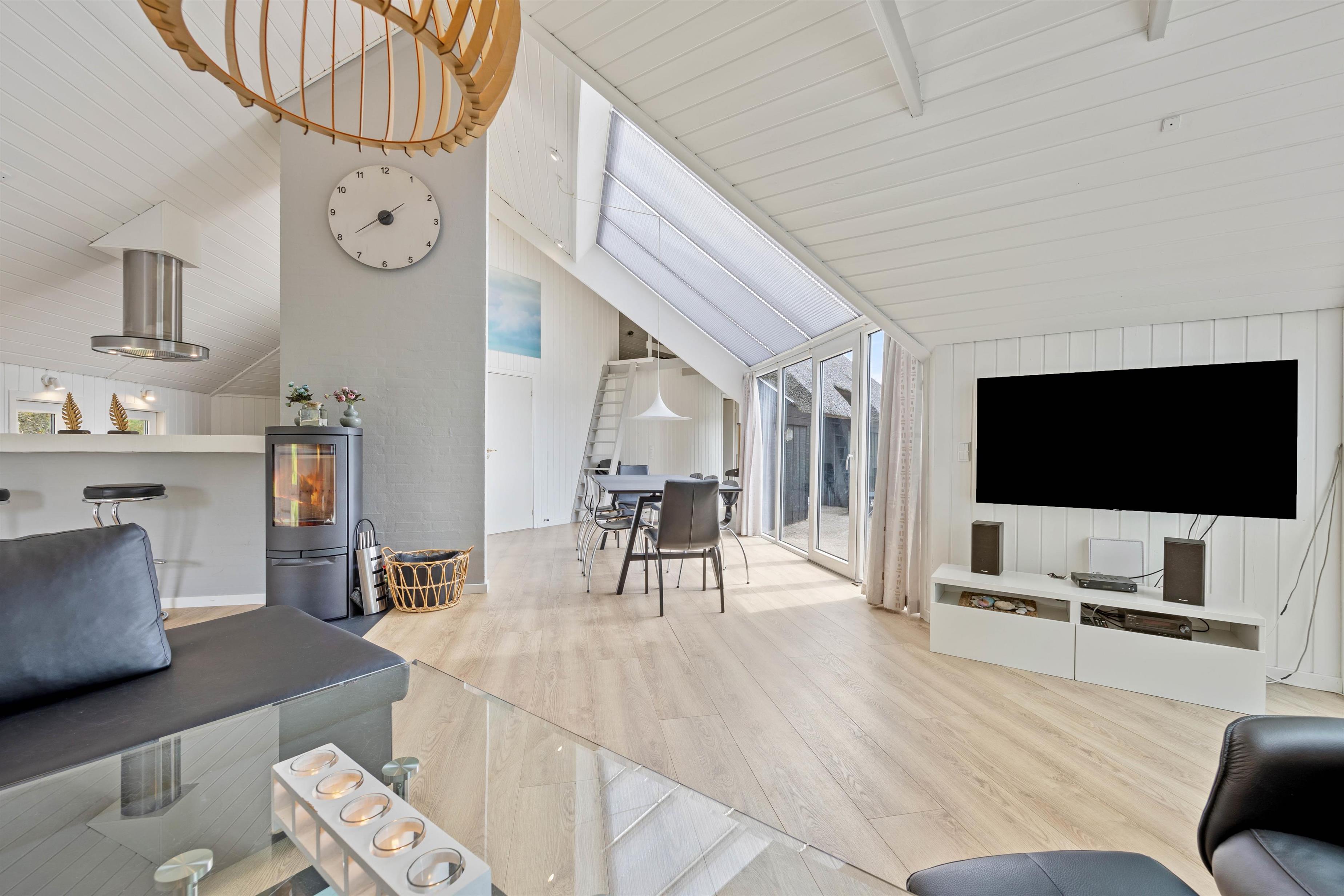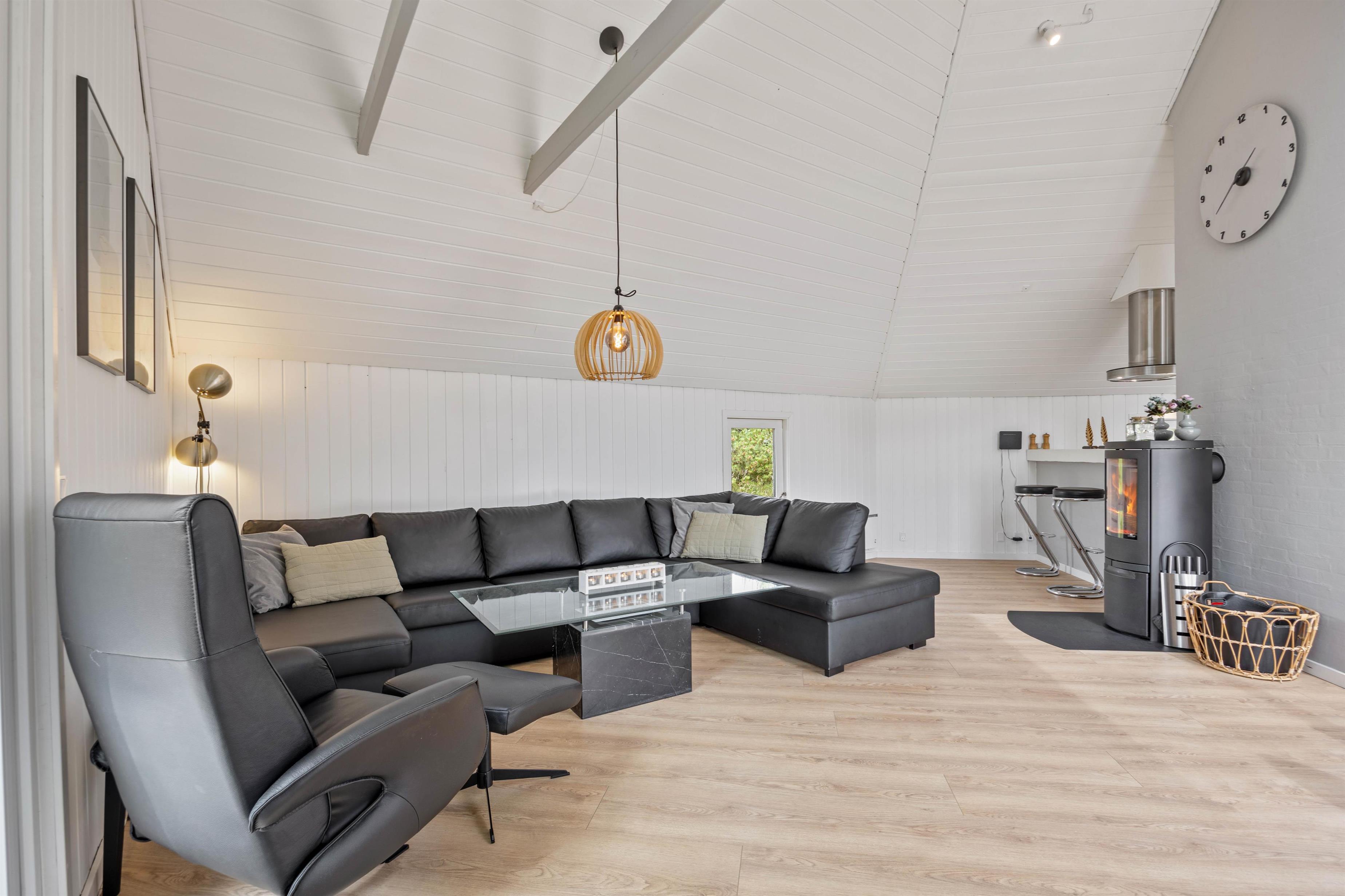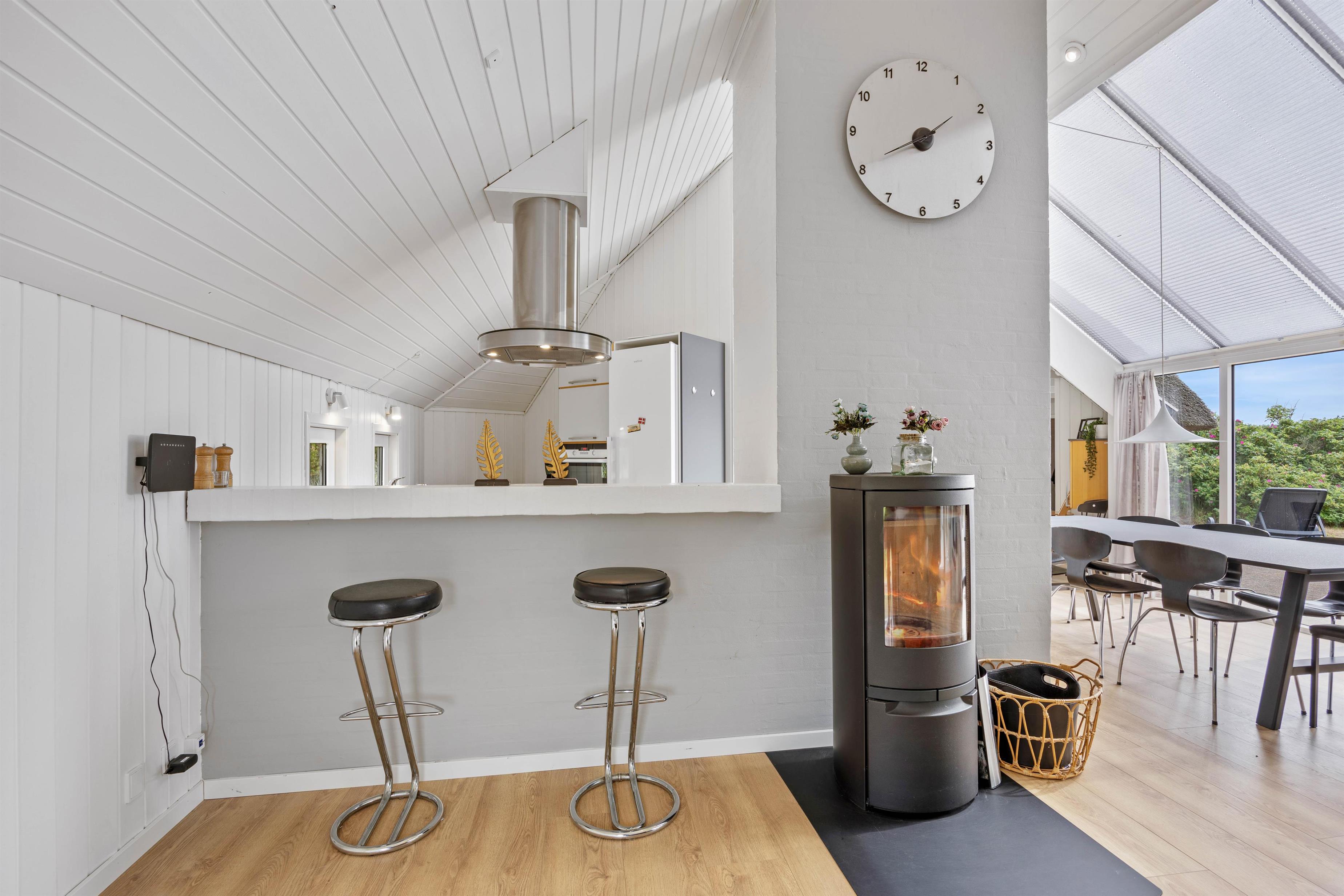 I sommerhuset vil I blive mødt af en hyggelig indretning med komfortable møbler, som I kan finde jer til rette i på jeres ferie. På ægte sommerhusvis er der en brændeovn i stuen, som fuldender feriestemningen og spreder dejlig varme i feriehuset.