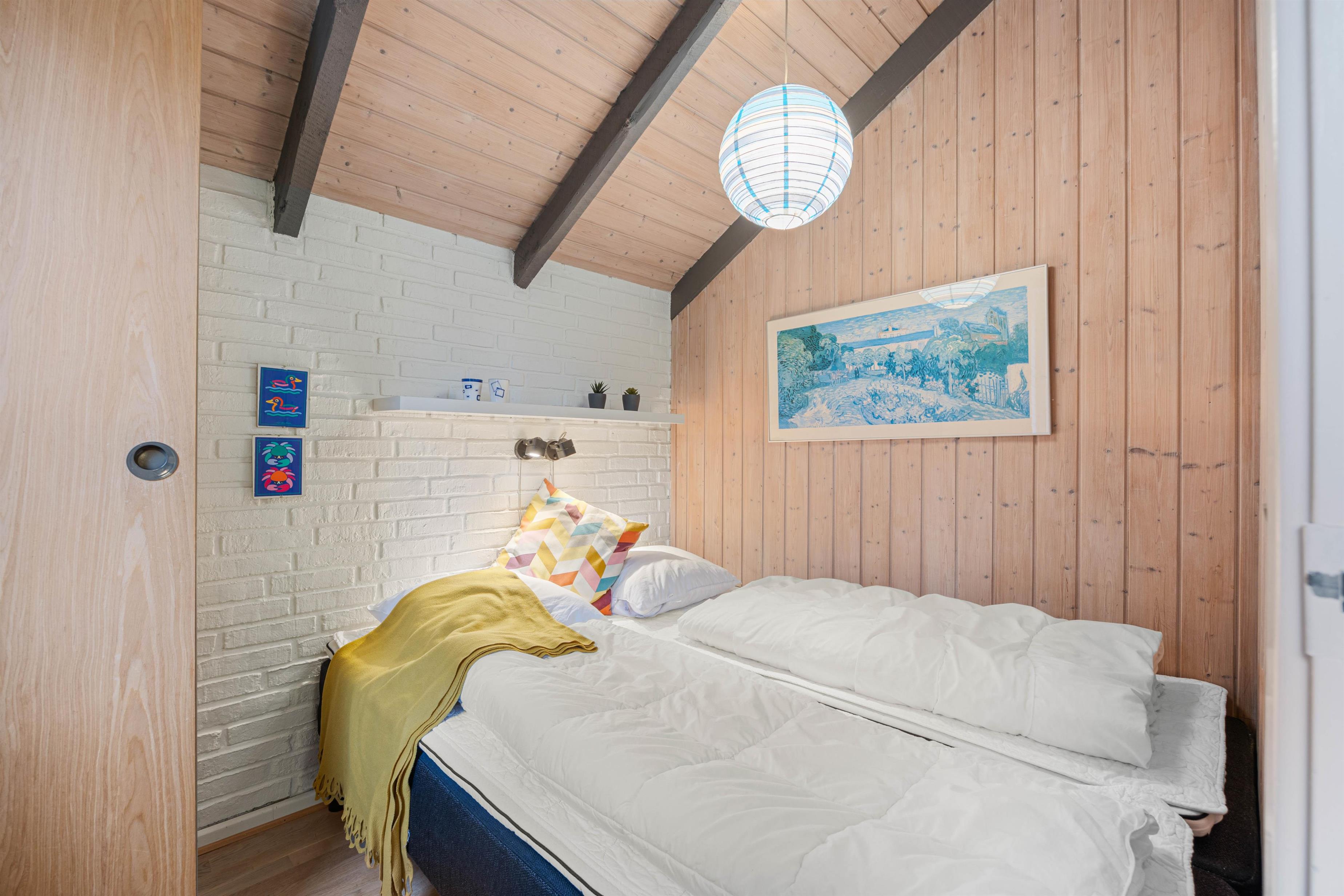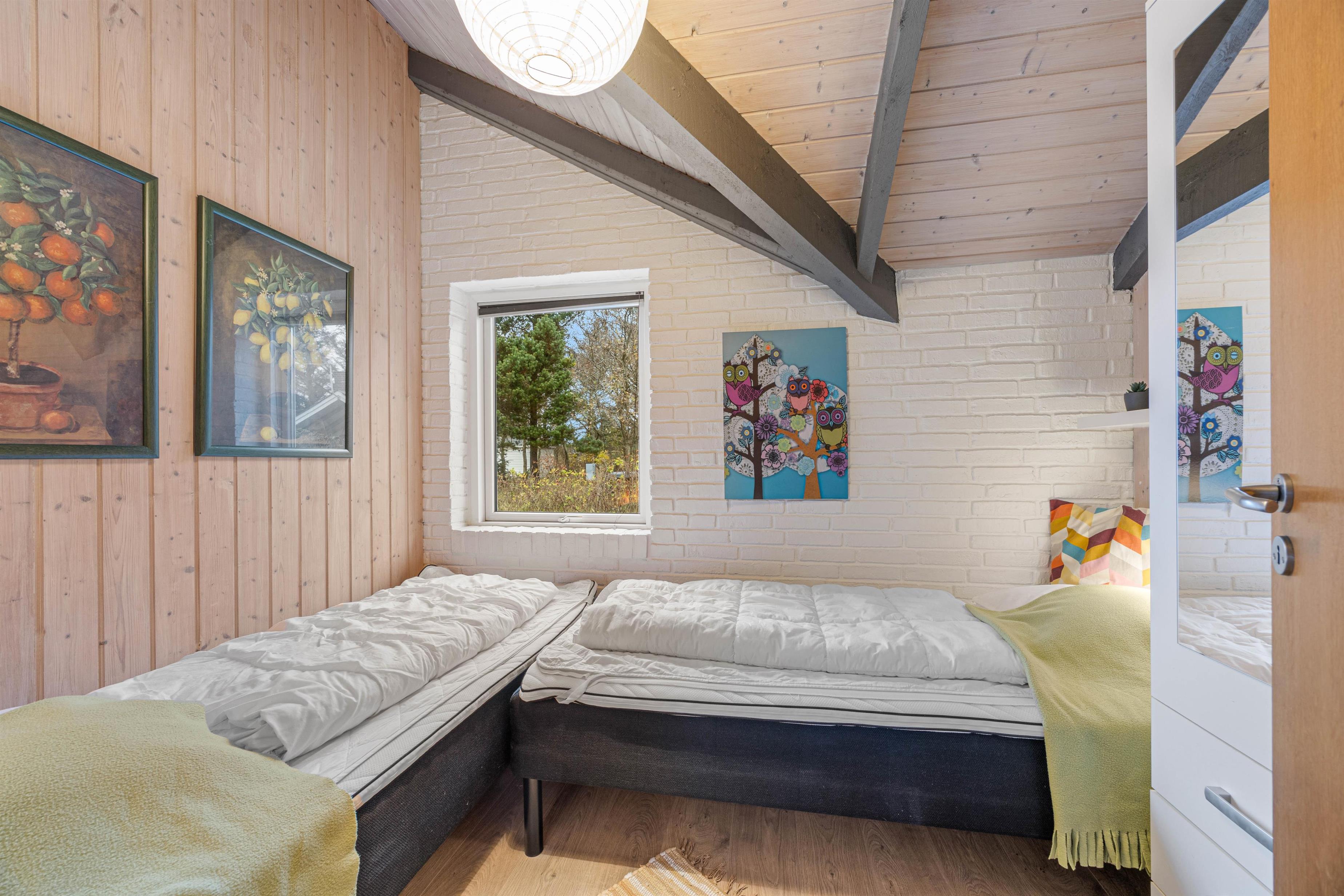 Dette familievenlige sommerhus har egen carport, så bilen kan stilles i tørvejr og ugeneret væk fra grunden. Sommerhuset er indrettet med praktiske og rengøringsvenlige trægulve i soveværelserne, og det er velholdt og personligt indrettet med friske farver.