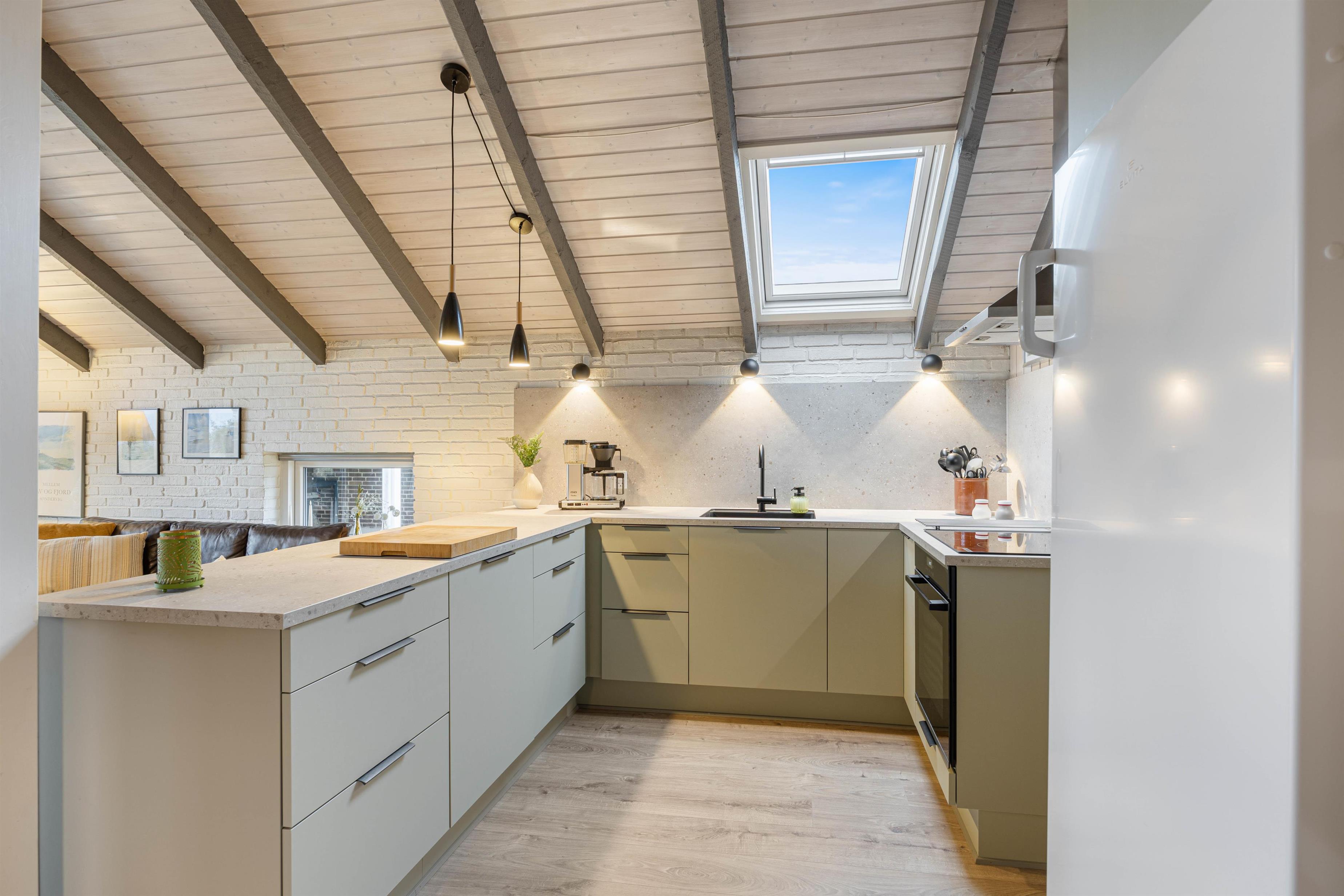Sommerhuset er familievenligt, da køkkenet og stuen er i åben forbindelse med hinanden, således hele familien kan være samlet i et rum. Der kan nydes en god film i sofaen eller et spil kort omkring spisebordet, mens der kommunikeres med familiens kok, der flittigt i køkkenet gør klar til lækker aftensmad ud fra en opskrift fundet på internettet, som er gratis i sommerhuset.