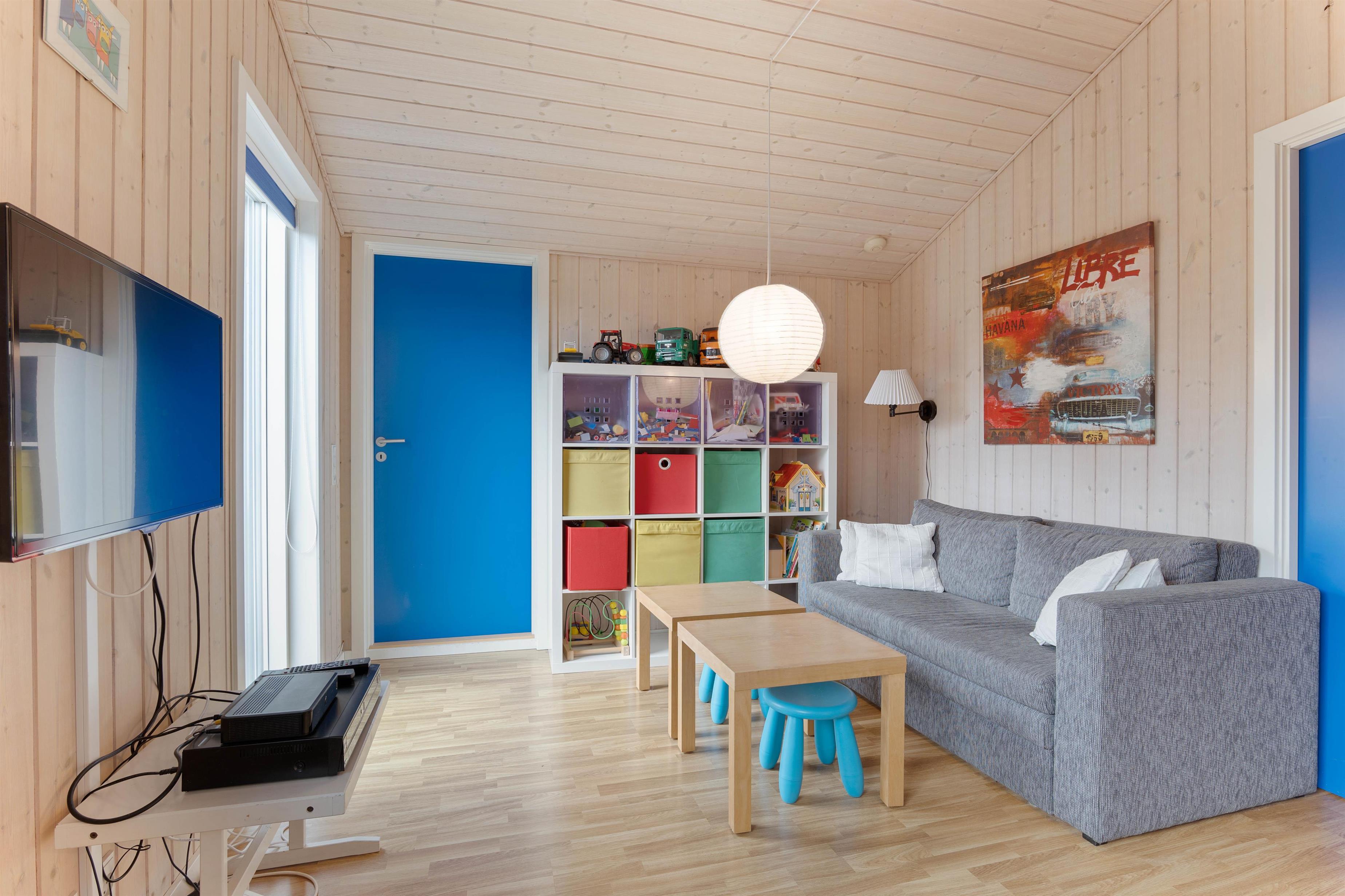 I det store køkkenalrum og stue kan I samles hele familien. Her kan I lave alverdens madretter i det veludstyrede køkken med både induktionskomfur med ovn samt mikroovn og opvaskemaskine, som kan klare opvasken for jer. Ved spisebordet kan I samles om brætspil og hygge, og i stuen kan I slå jer ned i de behagelige møbler og nyde udsigten til klitterne.
