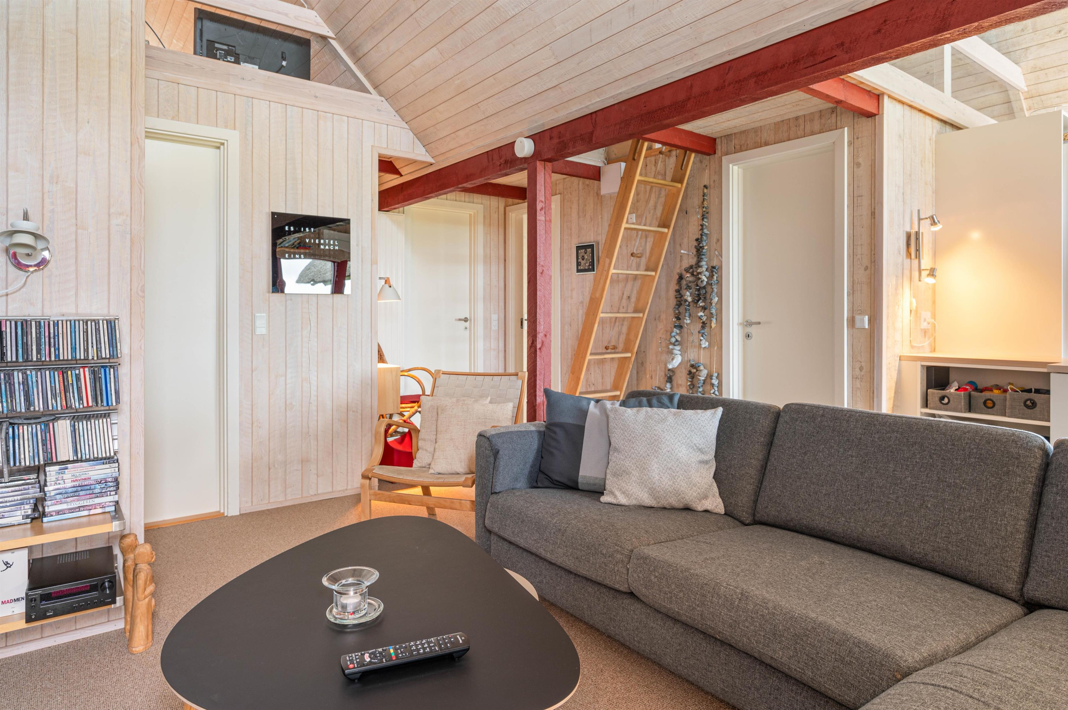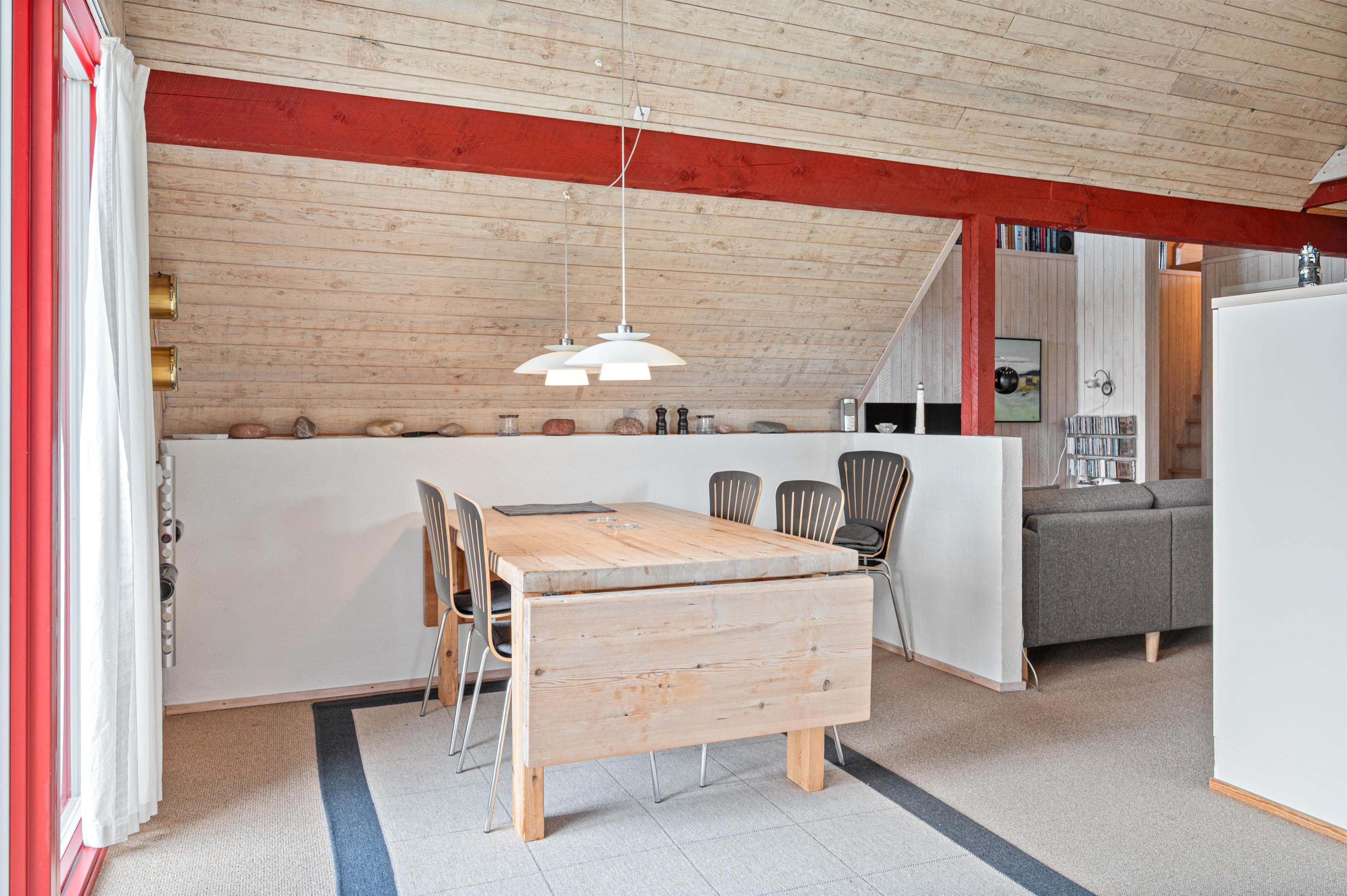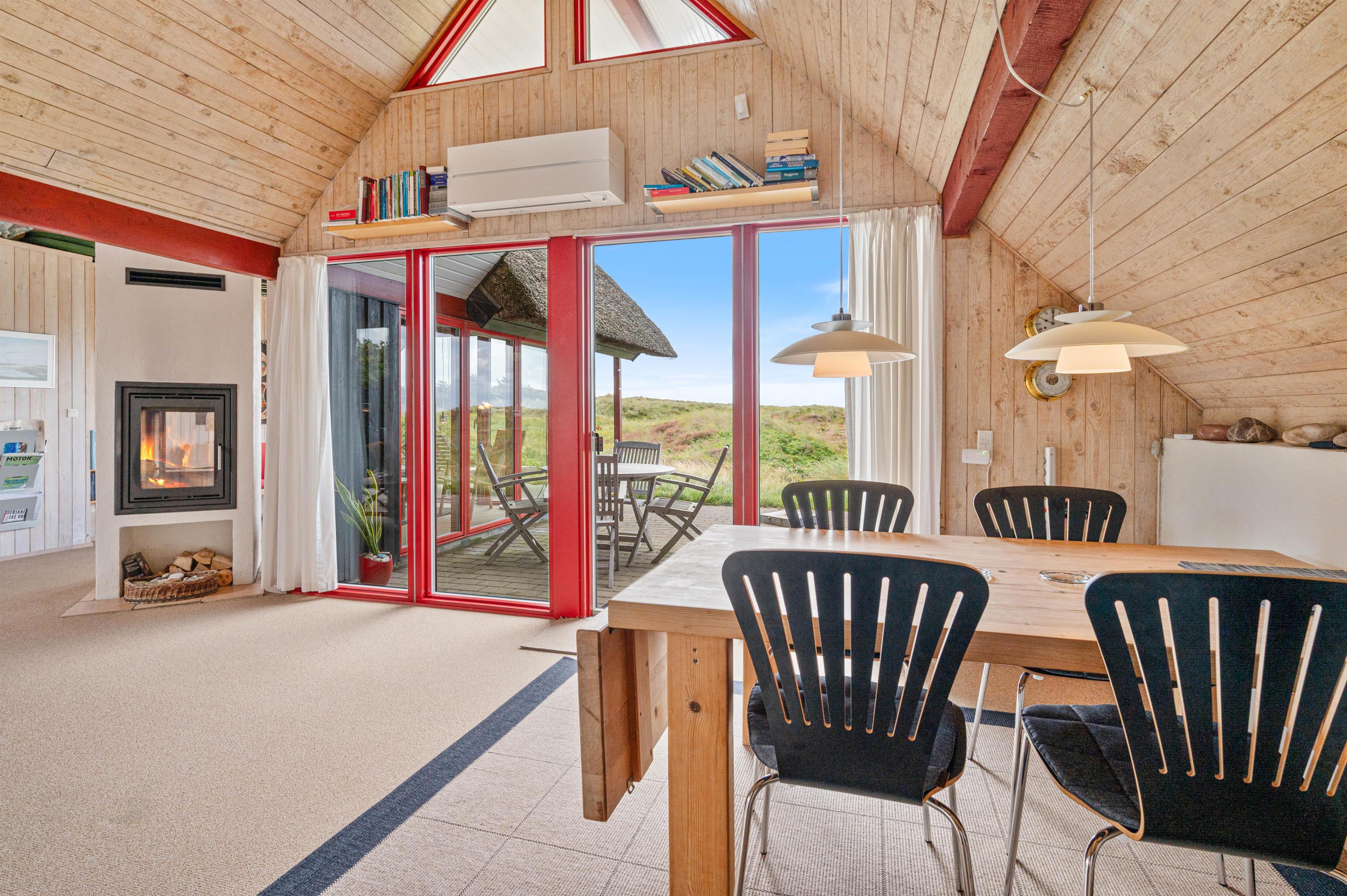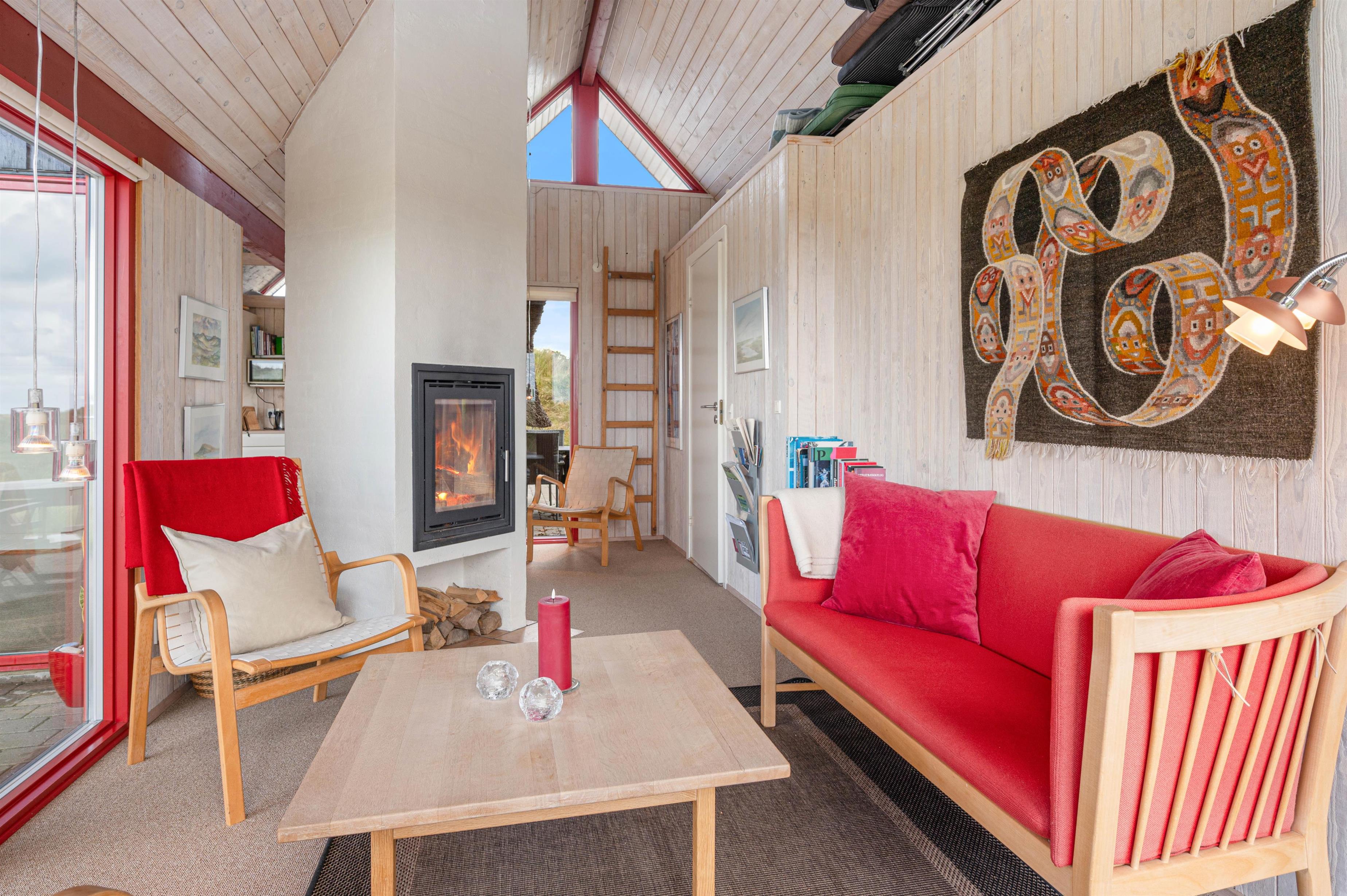I sommerhuset finder I et veludstyret køkken, som er placeret centralt i sommerhuset med åben forbindelse til den ene stue og spiseafdelingen. Så der er altid mulighed for at hygge sig med familien, imens I sørger for de daglige gøremål bliver ordnet. Stuen er særdeles hyggelig og afslappende med en skøn udsigt til de marehalms beklædte klitter. I sommerhuset er der også en brændeovn, som frembringer en behagelig sommerhusatmosfære.