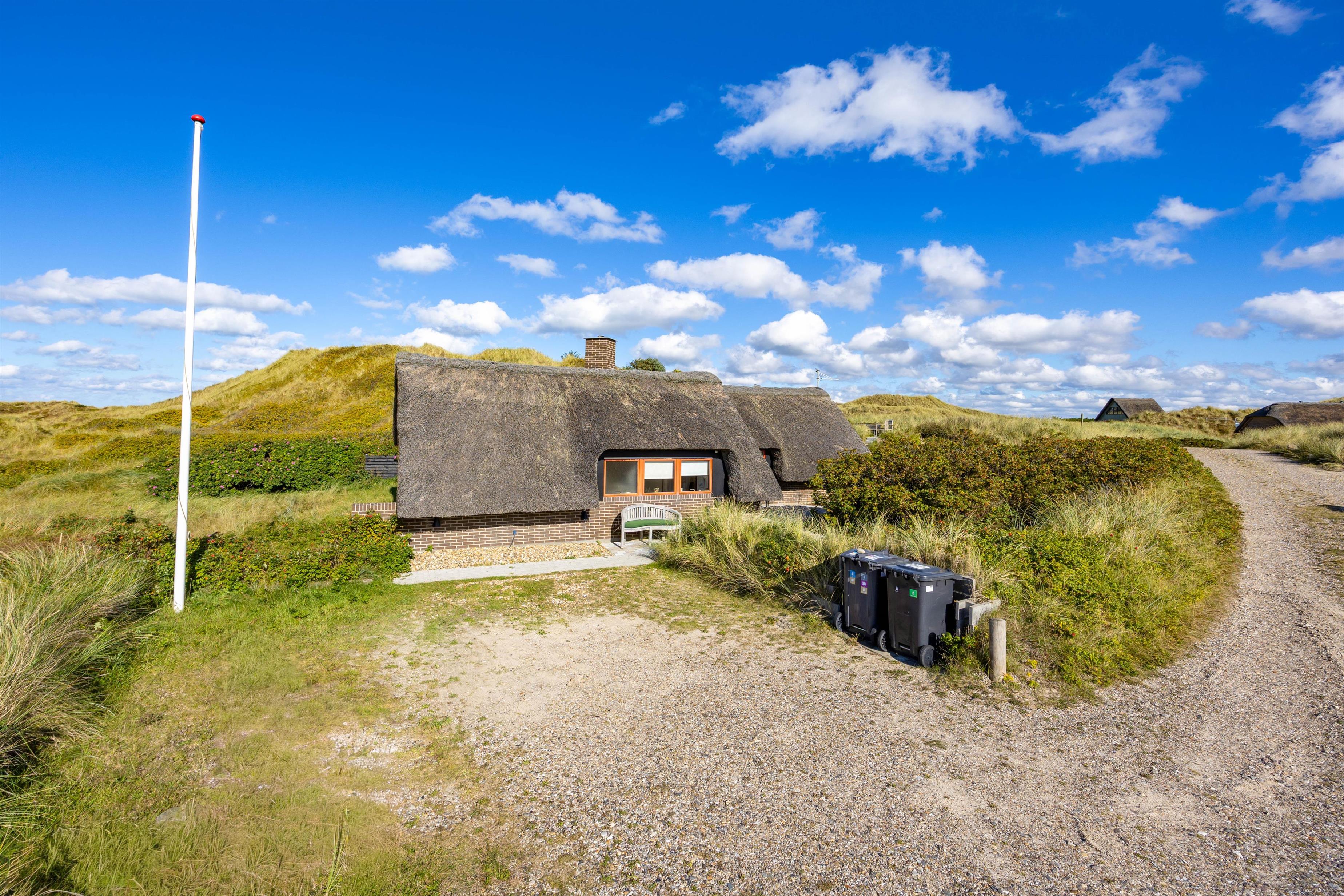 Velkommen til Lyngvejen 104, her vil I møde et stråtækt sommerhus med plads til 6 personer med en personlig indretning, der fremmer den hyggelige sommerhusatmosfære. Beliggenheden er fremragende direkte ved klitterne og blot 250 meter til Vesterhavet, det er derfor nemt at nyde den smukke natur. Med en god terrasse med kig til klitterne, vil I kunne nyde de lange sommeraftener.