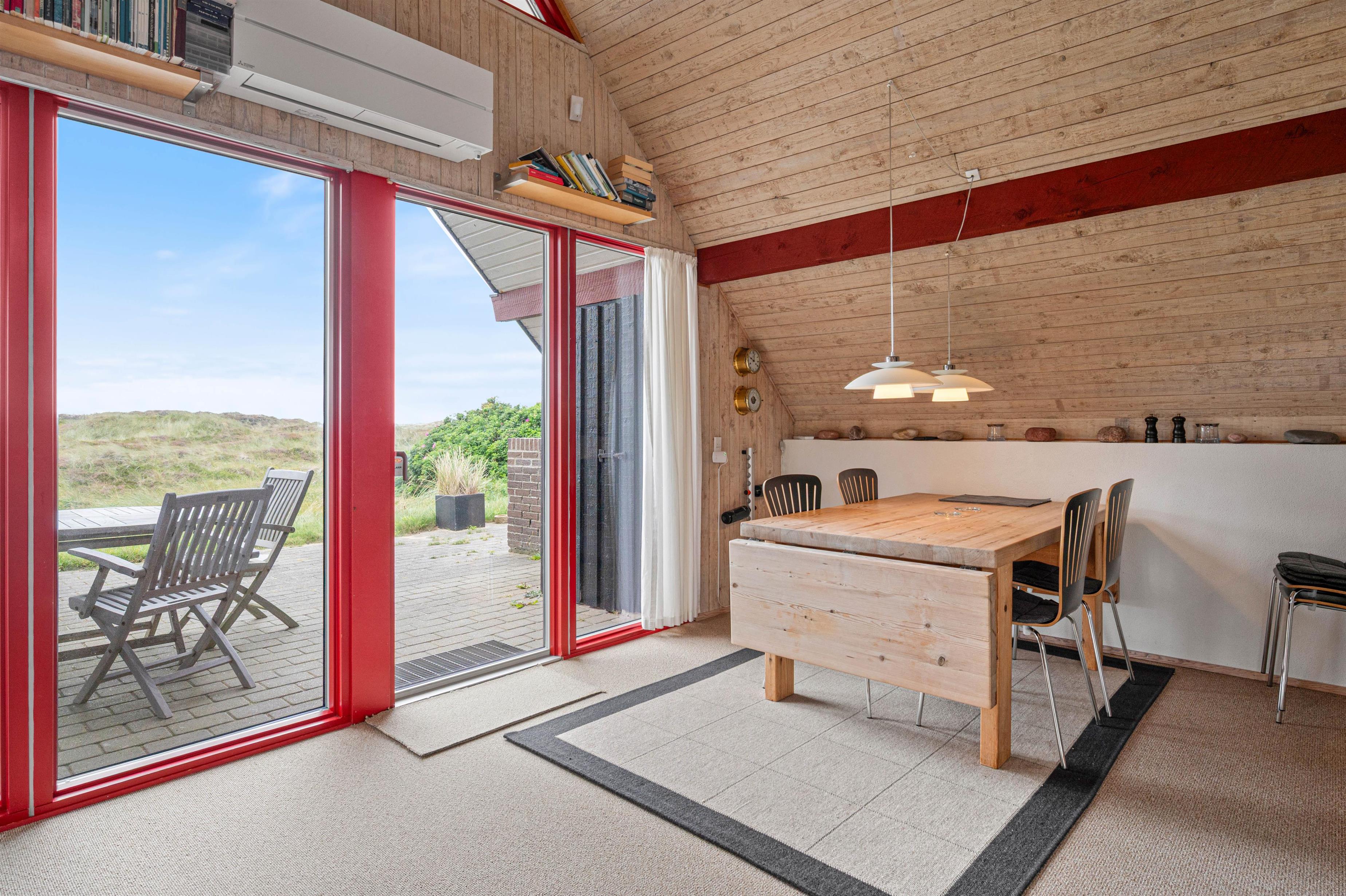 Sommerhuset ligger blot 250 meter fra Vesterhavet og midt i den smukke natur ved Ringkøbing Fjord. Her kan I opleve de skønne naturomgivelser med lange gåture langs vandkanten eller oppe i de skønne hedearealer. I kan også tage en tur på cykel og muligvis ligge en tur forbi feriebyen Søndervig, hvor der er butikker og restauranter, som helt klart er et besøg værd.