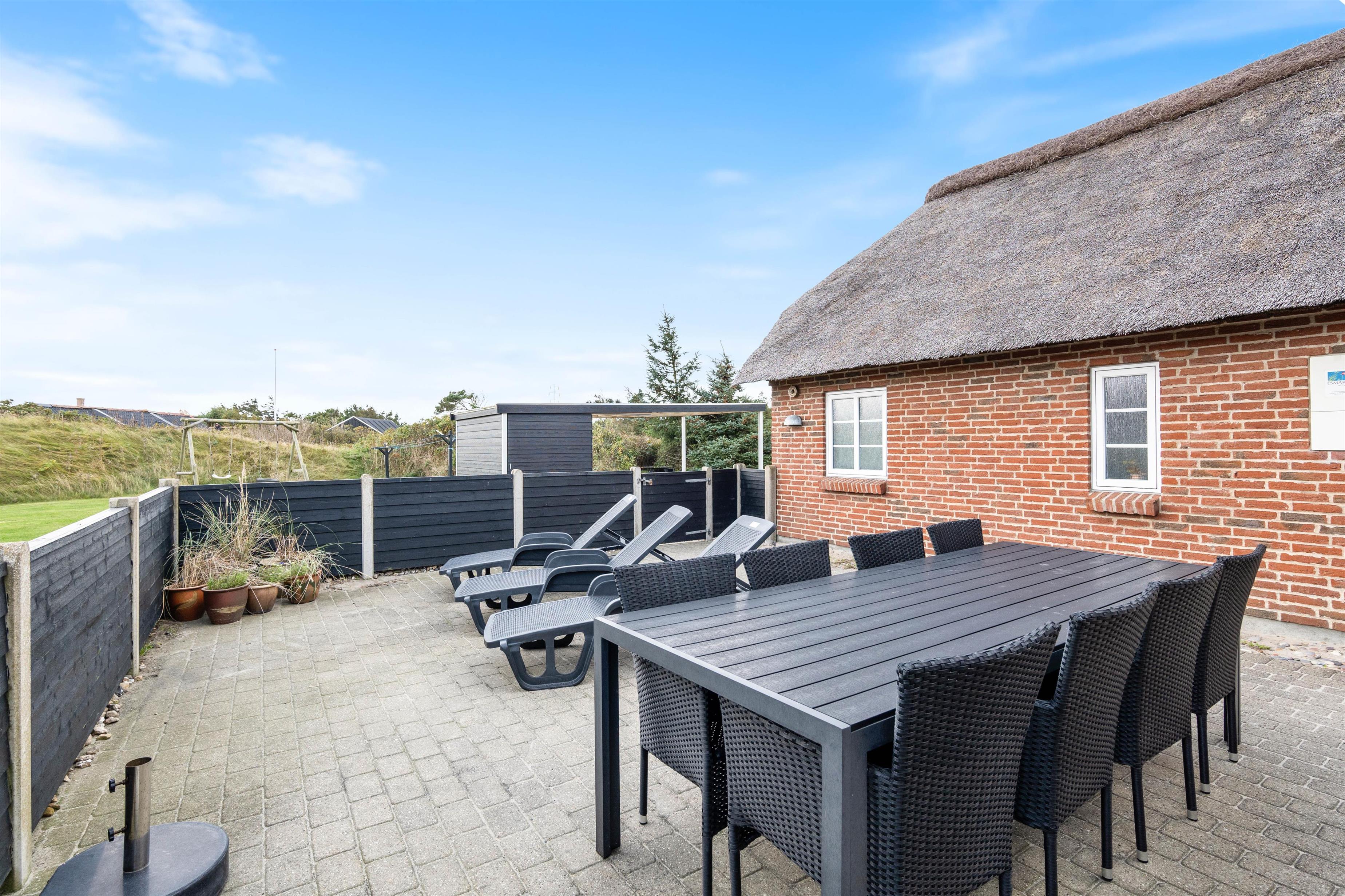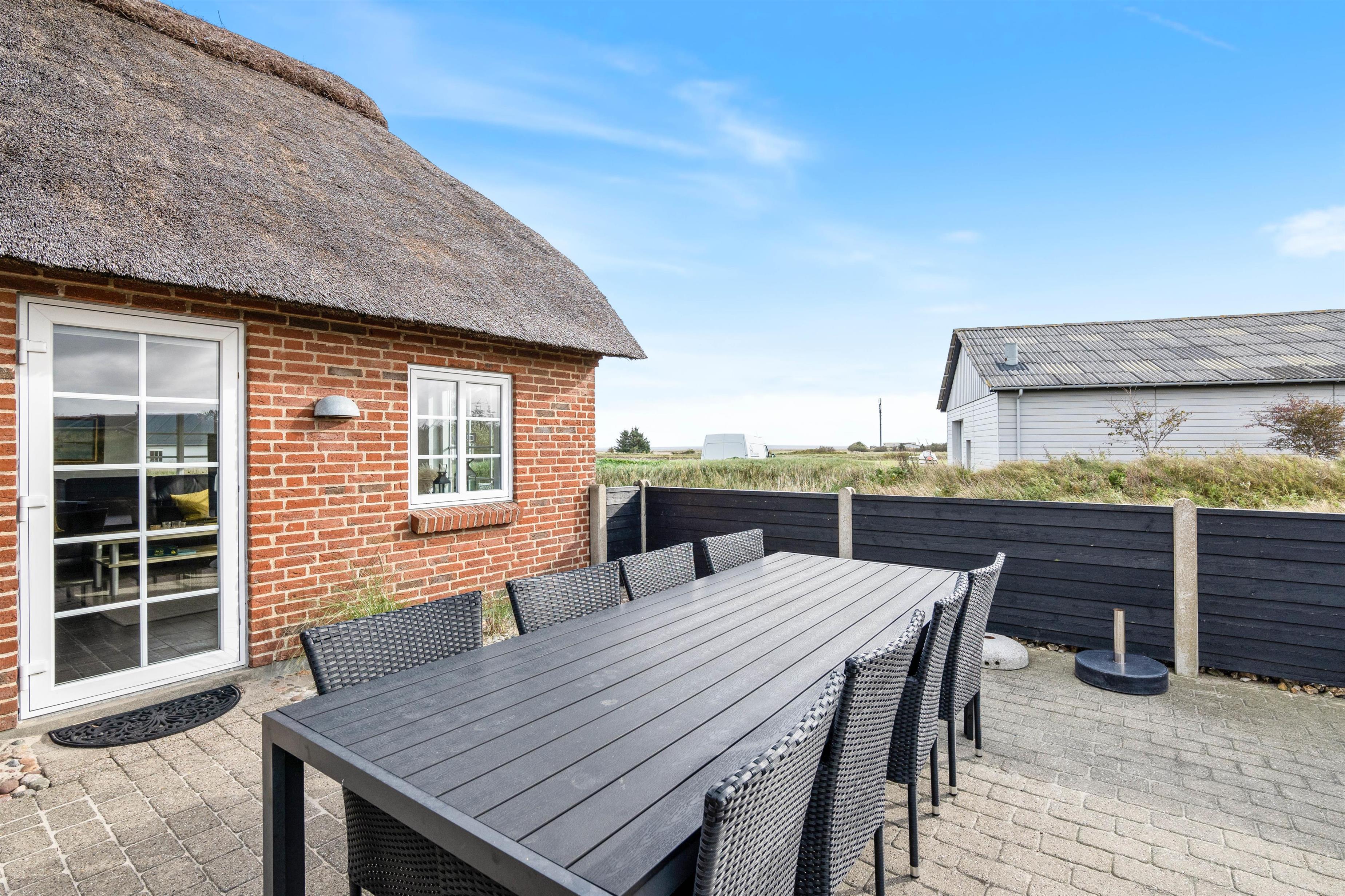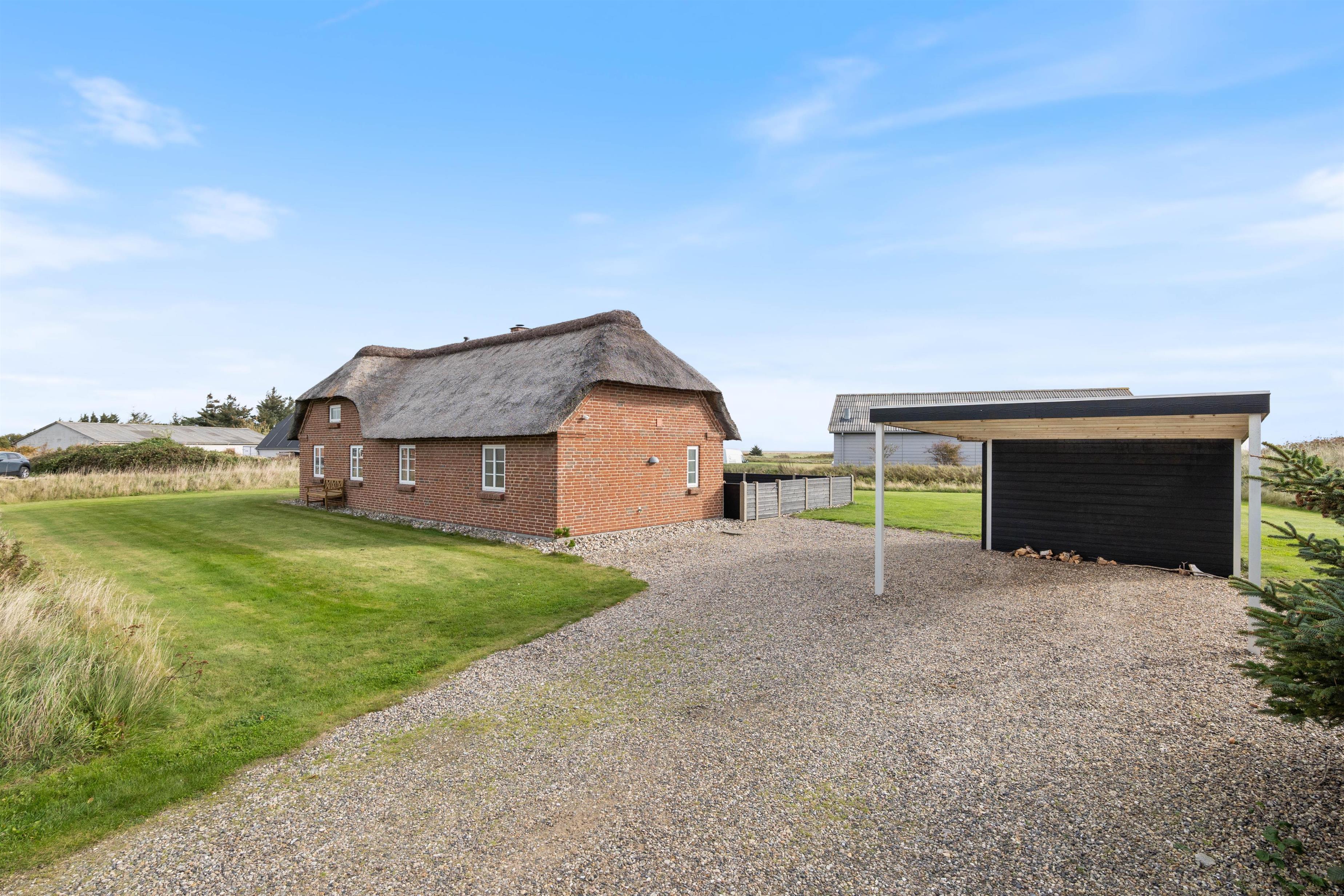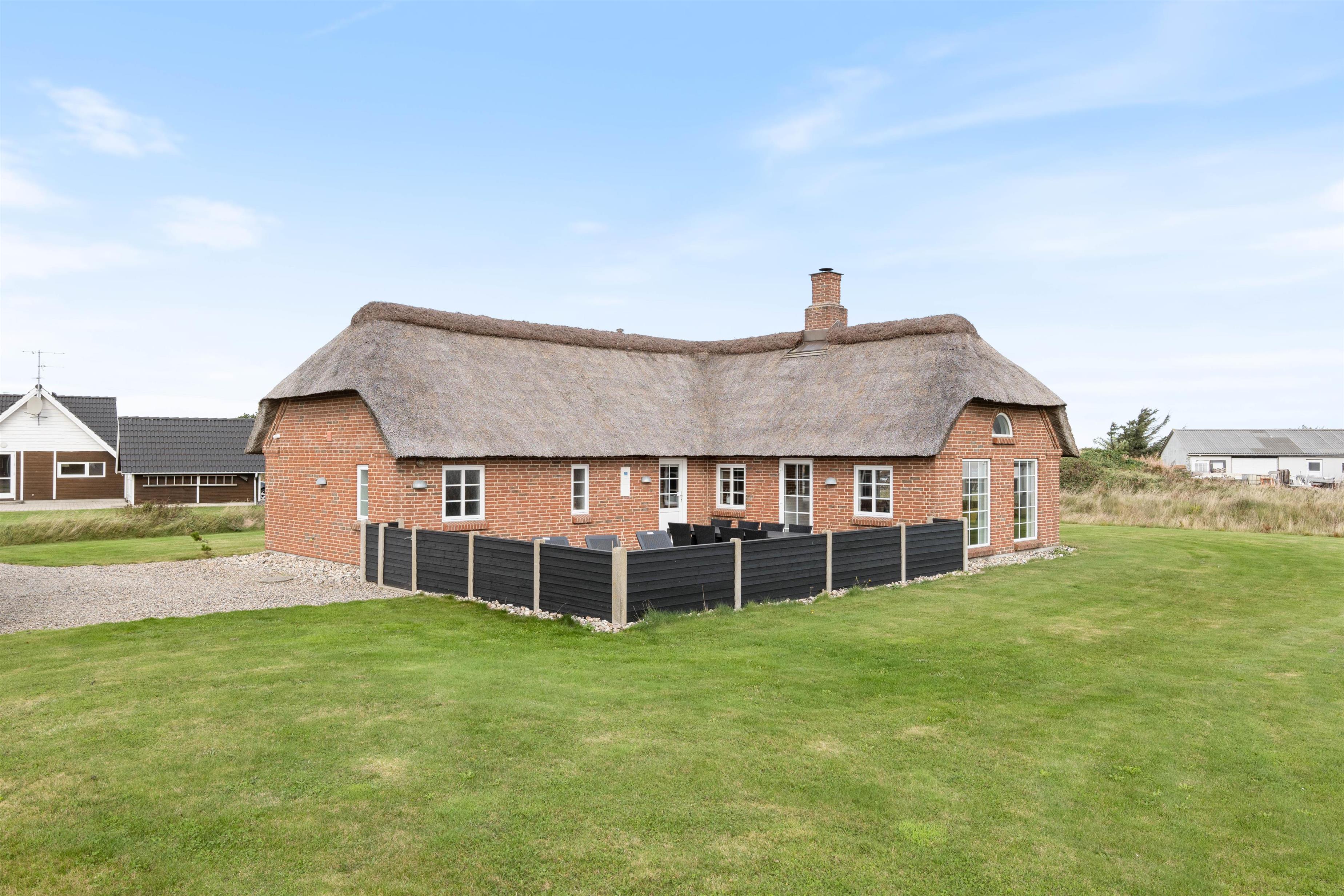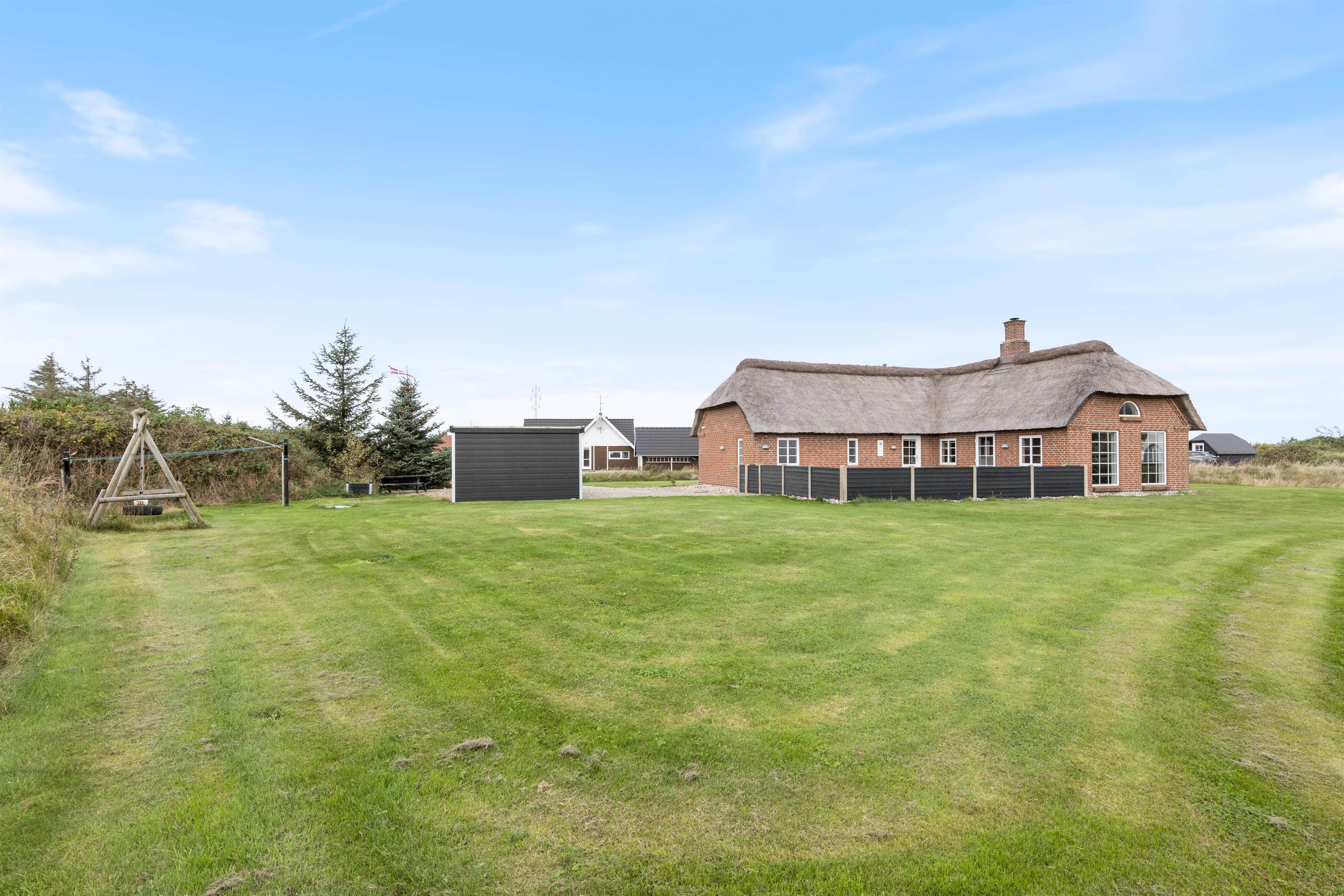 På Opstrupsvej 2B finder I dette dejlige, store feriehus med stråtag, som er hyggeligt og velindrettet. Det er opført i de bedste materialer og tilbyder masser af komfort og udstyr. Der er bl.a. en hems hvor de mindste i familien kan hygge sig, et stort flot badeværelse med både spabad og sauna, og en skøn lukket terrasse mod sydøst, som er perfekt at sidde og slappe af på og nyde den vestjyske natur.