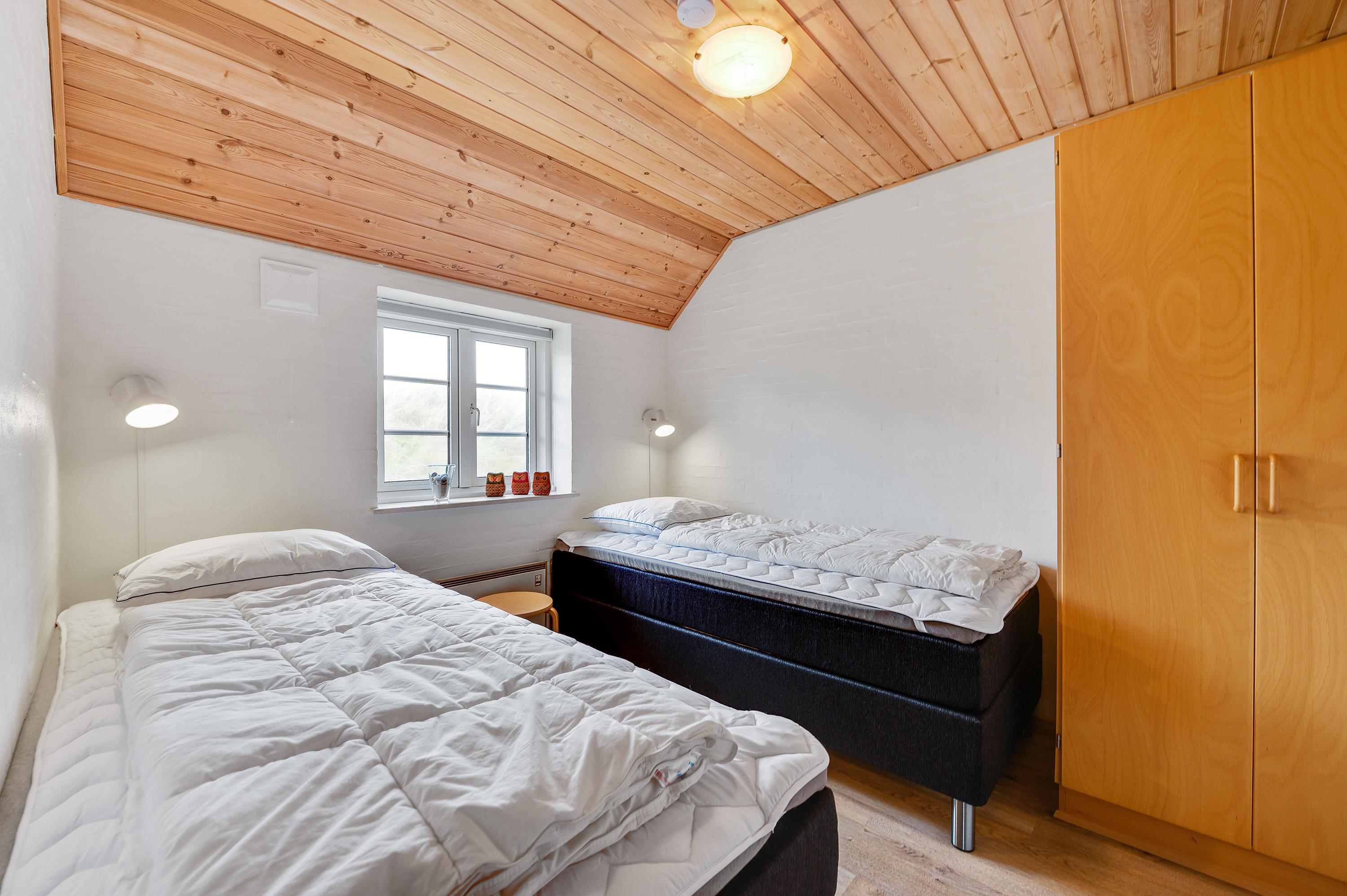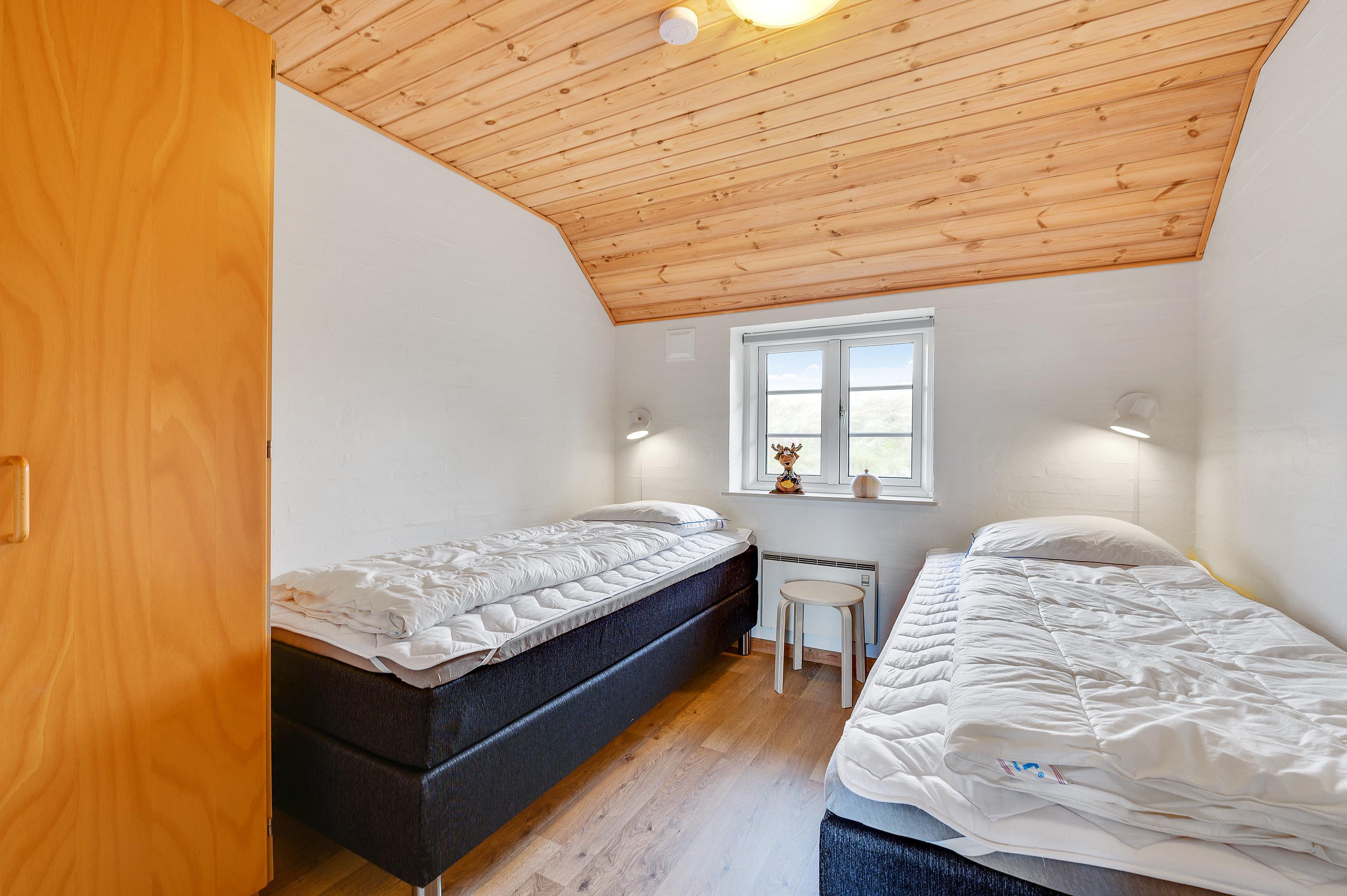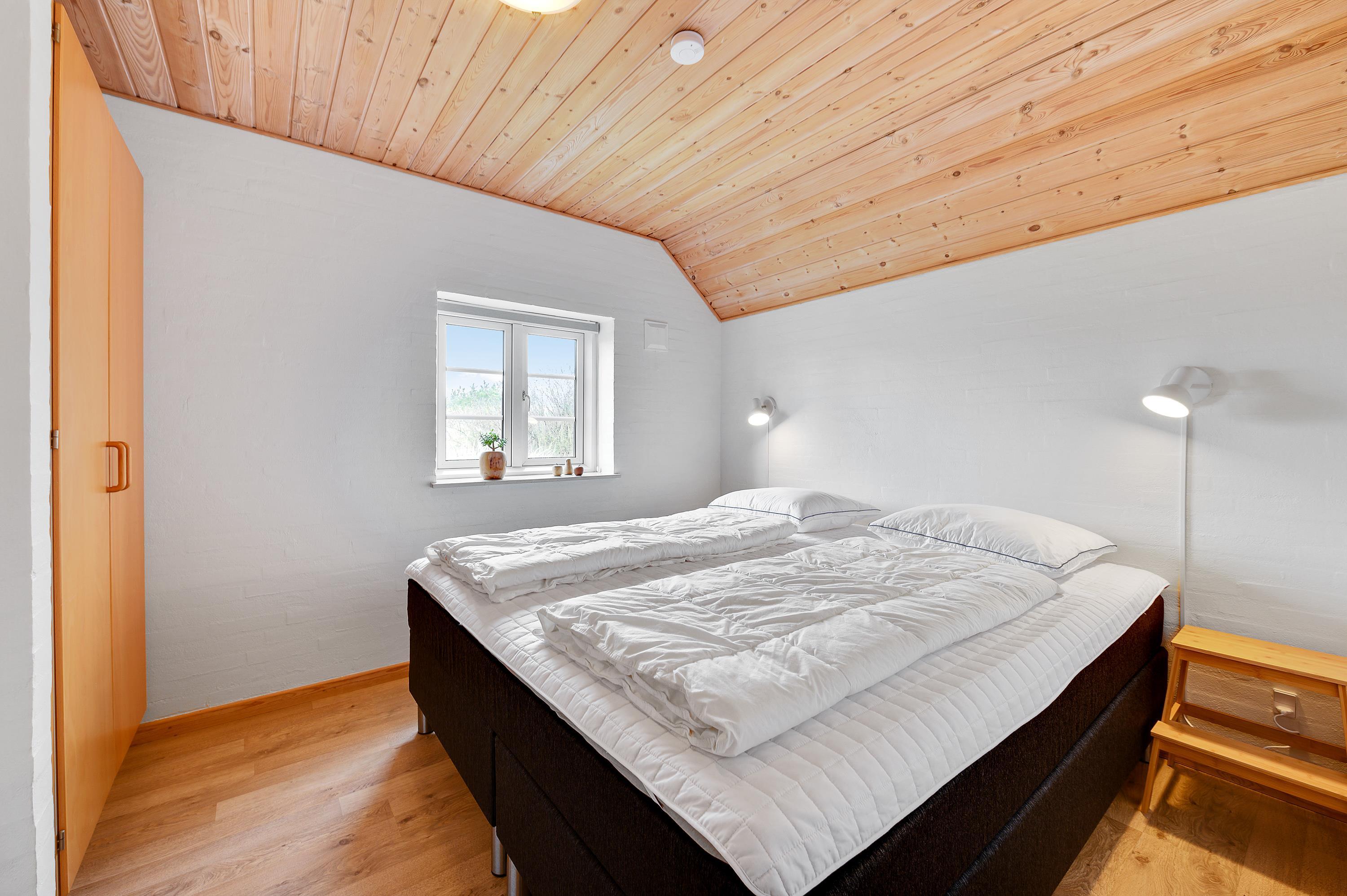 Selvom sommerhuset kun er til 6 personer, er der 4 soveværelser i kan sprede jer ud på. Så nyder du en nat med masser af ro og fred, kan i med glæde og ro fordele jer på de 4 soveværelser. 2 af soveværelserne har en dobbeltseng, mens de sidste to soveværelser har 2 enkeltsenge.