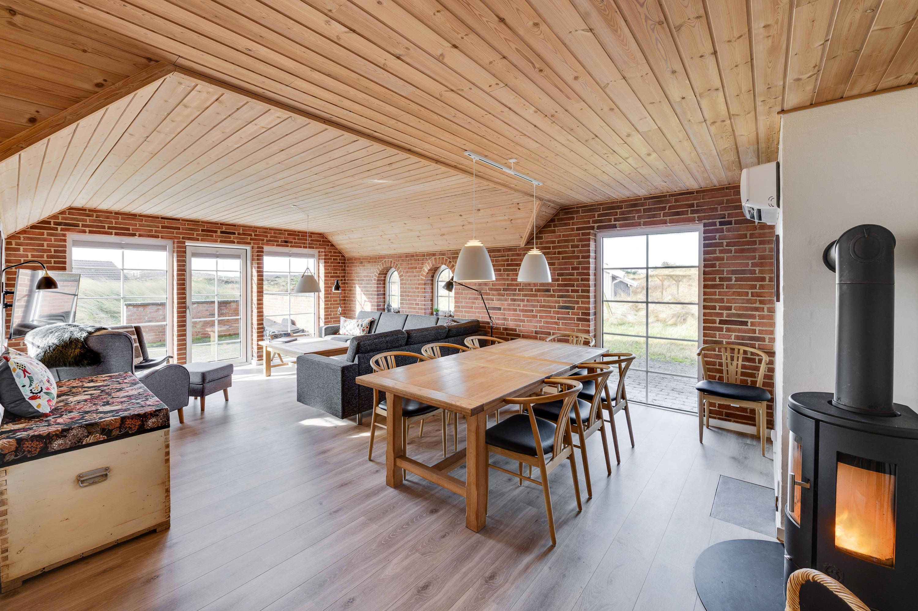 Køkkenalrummet er sommerhusets hjerte, her har i mulighed for at samles hele familien til et måltid fra husets funktionelle køkken, med både mikroovn og opvaskemaskine. Eller I kan samles foran fladsskærms-tv’et og brændeovnen med jeres ynglings medbragte dvd, i husets komfortable sofaområde.