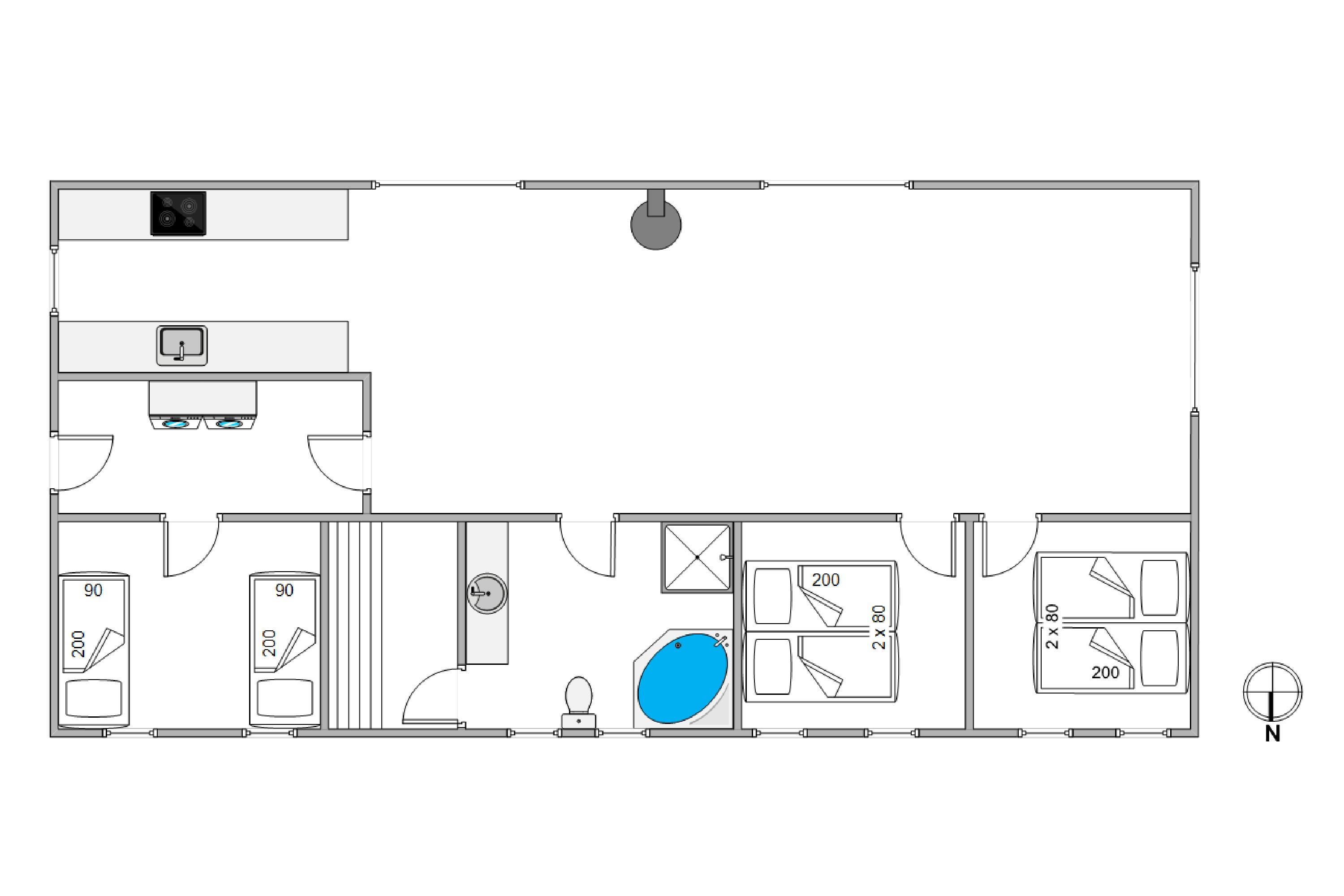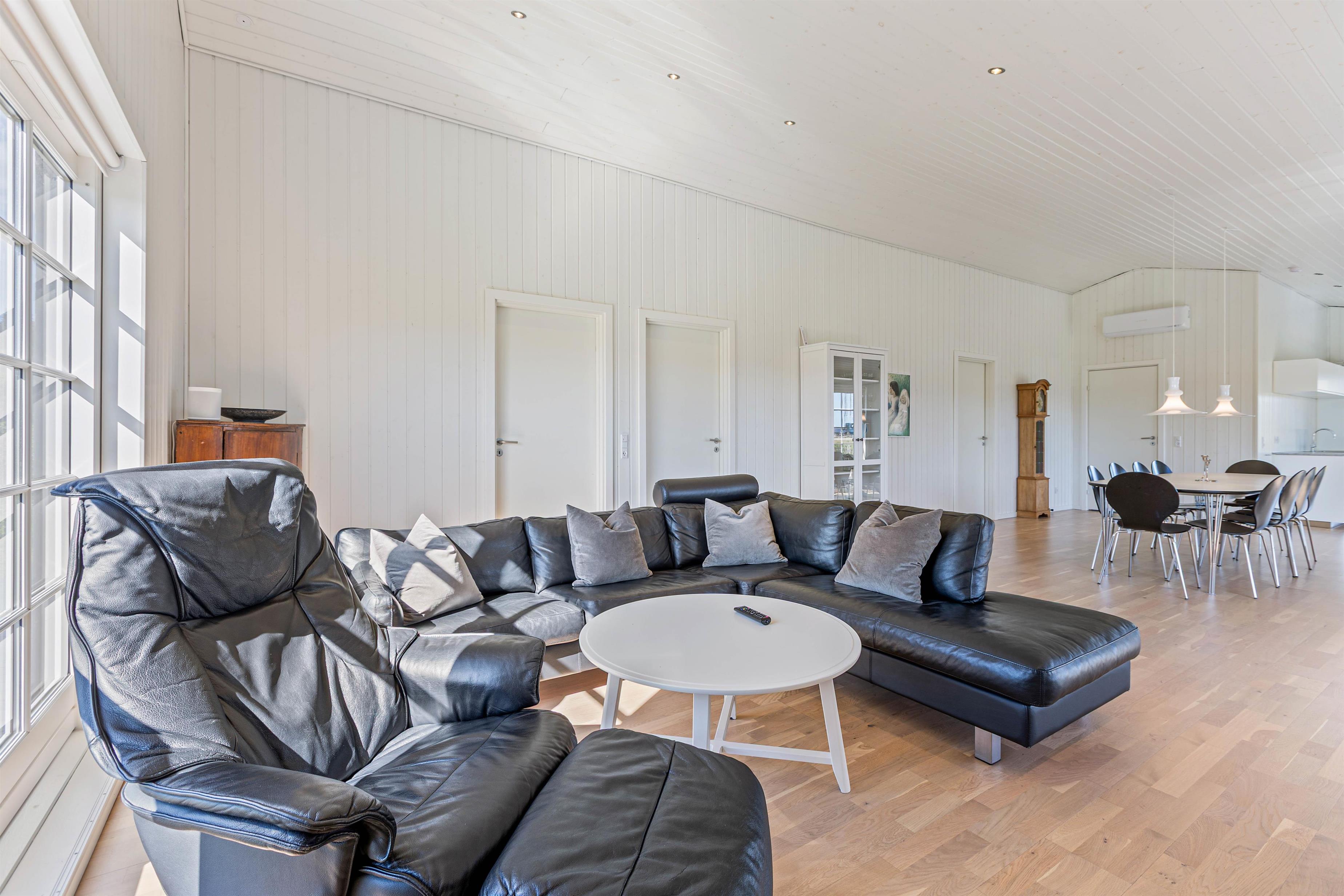 Hjertet af huset er det åbne køkken-alrum. Med højt til loftet og masser af lysindfald er her plads til, at hele familien kan være samlet. I kan spille brætspil ved det store spisebord eller hygge med en god film på den store hjørnesofa, mens varmen fra brændeovnen spreder sig efter en god dag i det vestjyske. Fjernsynet er tilkoblet en Chromecast, så I kan streame lige det I har lyst til.