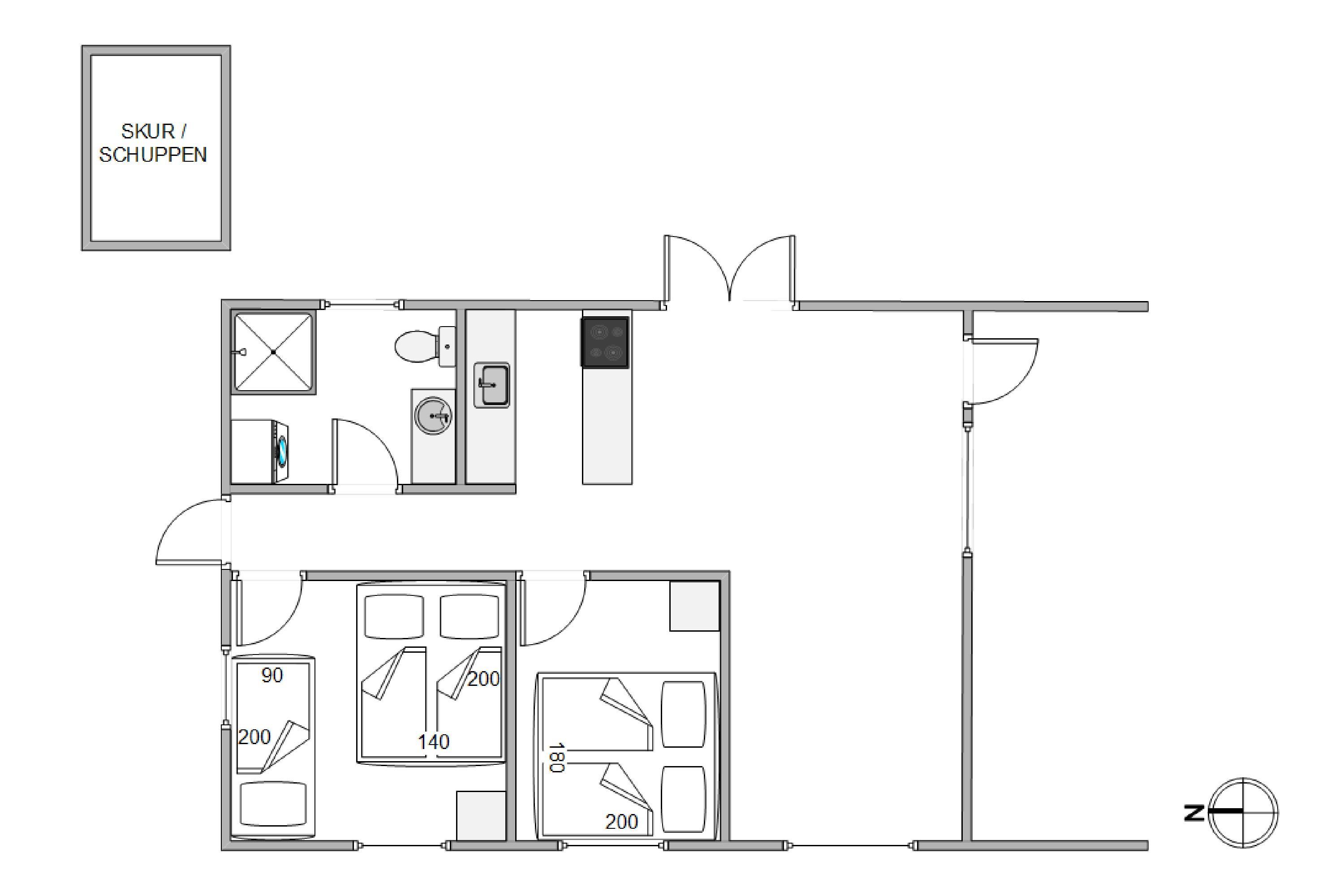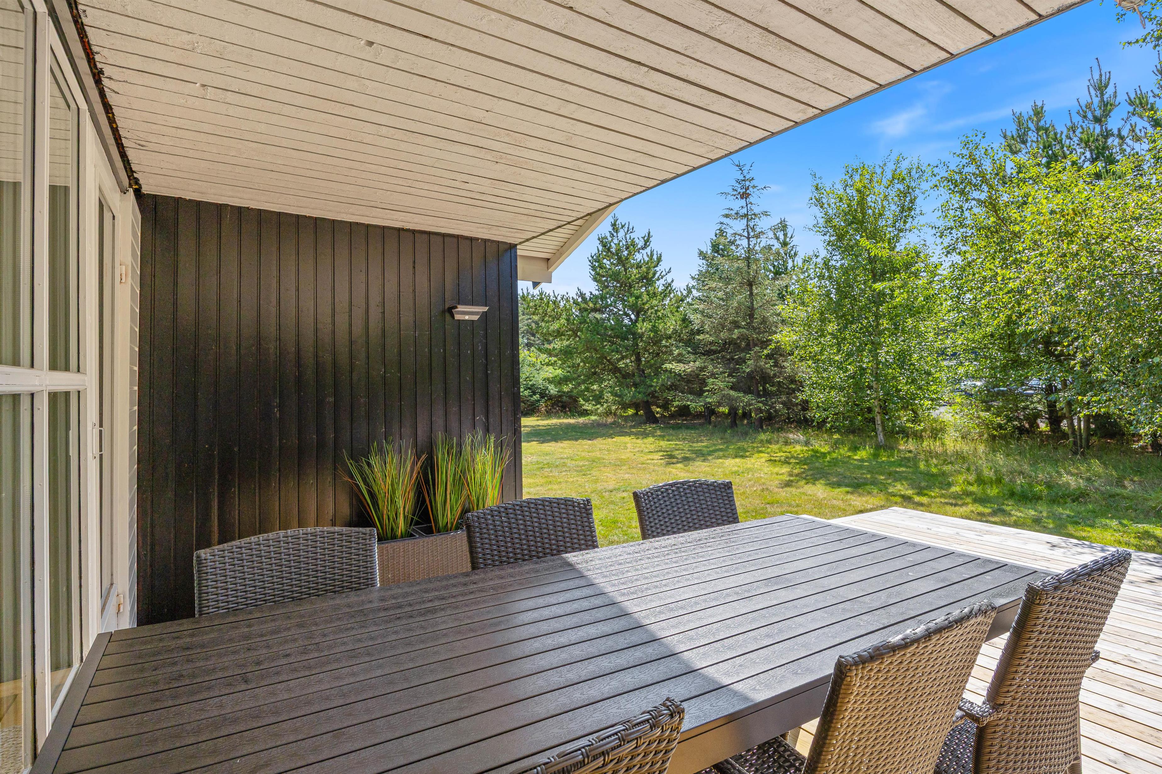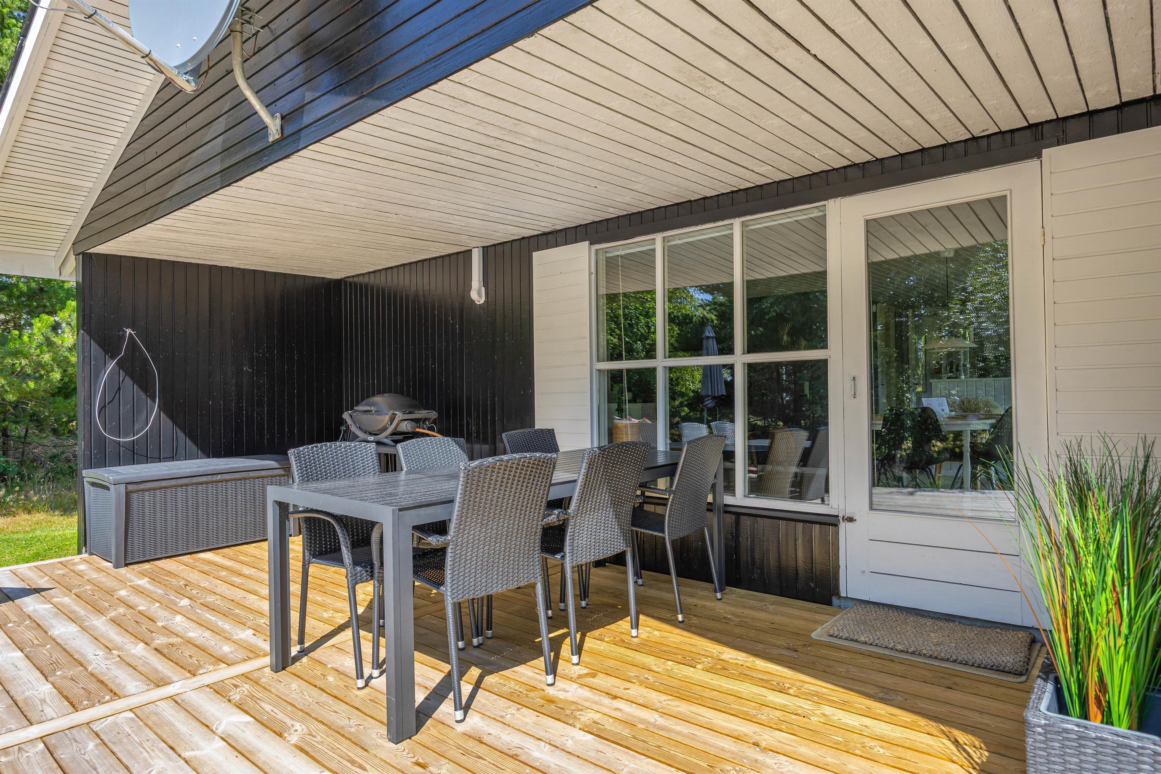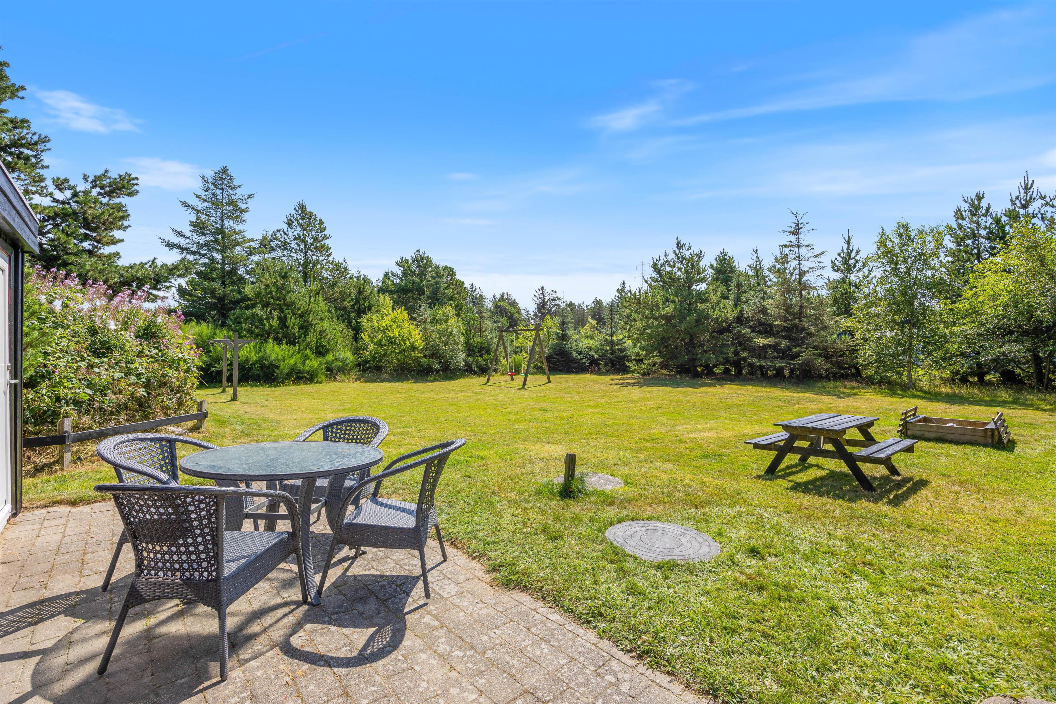 Er I på ferie om sommeren, kan I nyde de gode udearealer, hvor I finder gode havemøbler, gyngestativ og en gasgrill. Nyd din morgenkaffe udenfor på den åbne og overdækkede terrasse. Hvis solen skinner, og det er varmt, kan I lægge jer i solvognene og måske tage en lur under parasollen, mens børnene leger på gyngestativet og i sandkassen.