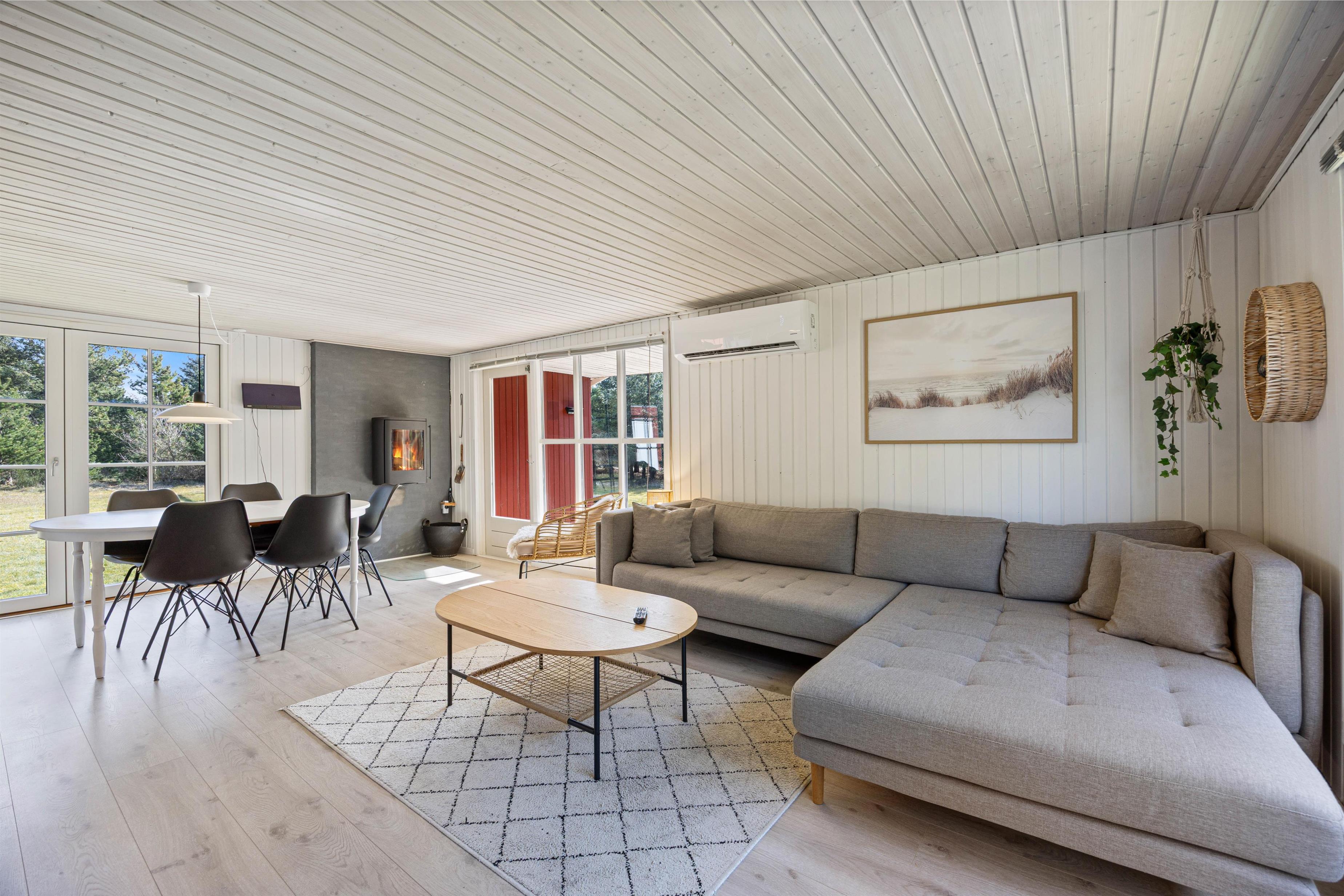Med det samme du går ind ad hoveddøren, vil du blive mødt af sommerhusets hyggelige atmosfære. Det er som et traditionelt, dansk sommerhus, der er blevet renoveret. Feriehuset er oprindeligt bygget i 1971, og herefter er det blevet renoveret i 2023. Trævæggene og -loftet sætter rammerne for jeres kommende, hyggelige ferie. Sommerhuset er 60 m2 og kan rumme 5 personer samt en hund.