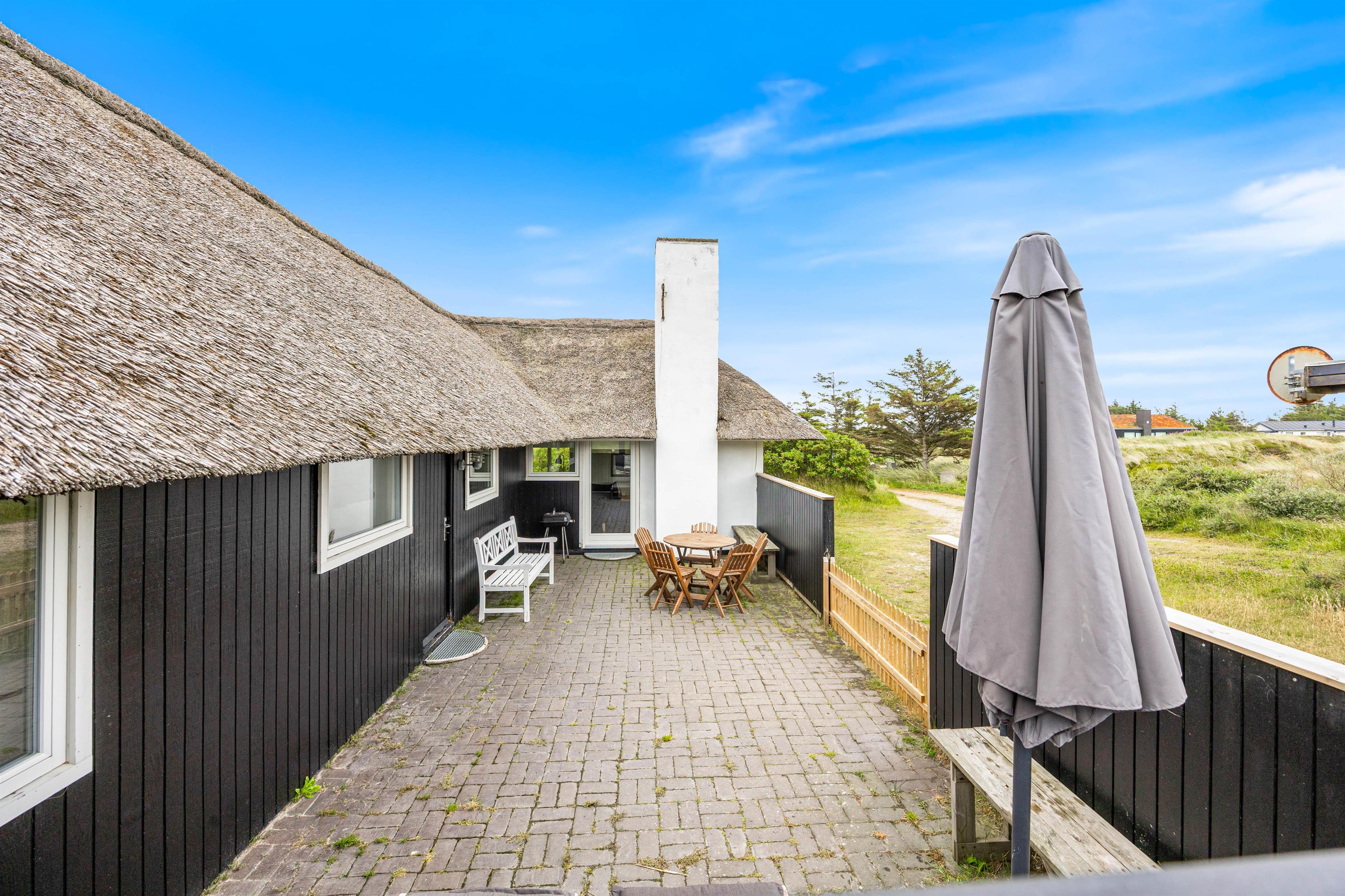Et godt feriehus i Klegod, der især egner sig til en familie med børn. Der er 3 soveværelser og et kombineret køkken og stue. Der er naturligvis gratis internet og et fladskærms-TV, hvis du trænger til lidt underholdning og afslapning. Har du hund med, er den delvist afskærmede terrasse rigtig dejligt, da du ofte kan sidde ude i læ, og her er der også sol meget af dagen. Der er ikke langt til hverken Søndervig eller Hvide Sande, hvor der udover gode indkøbsmuligheder også er mange restauranter.