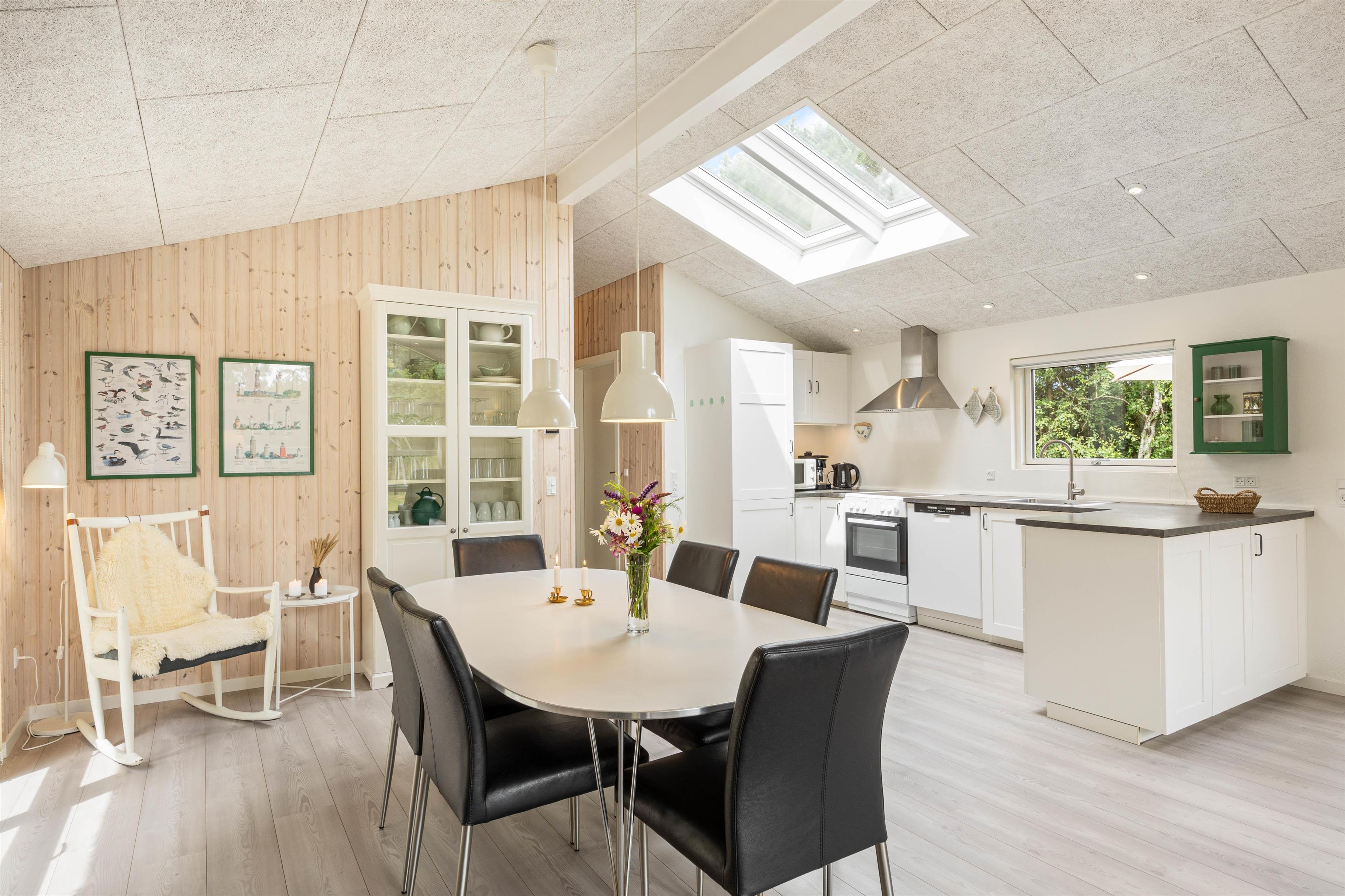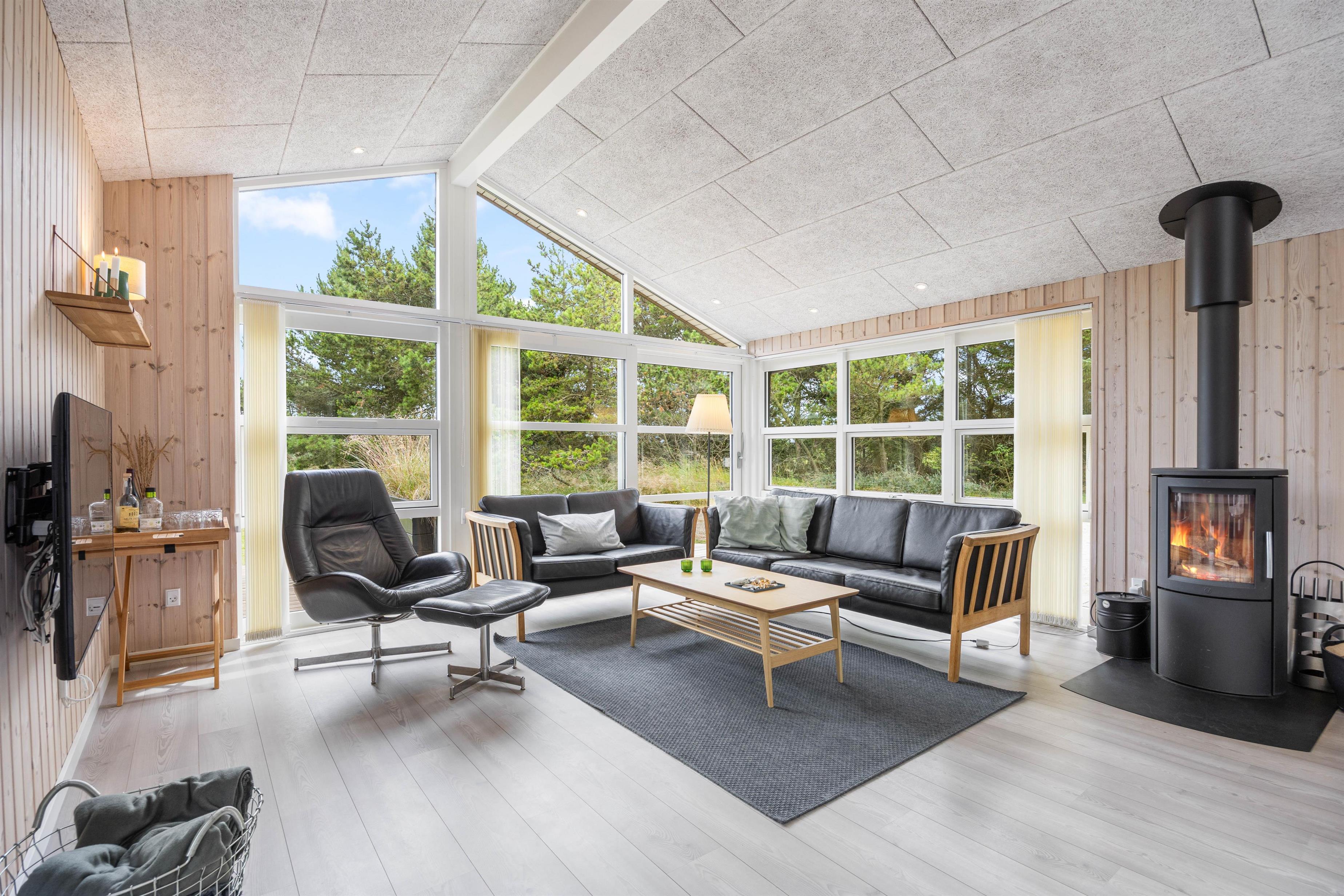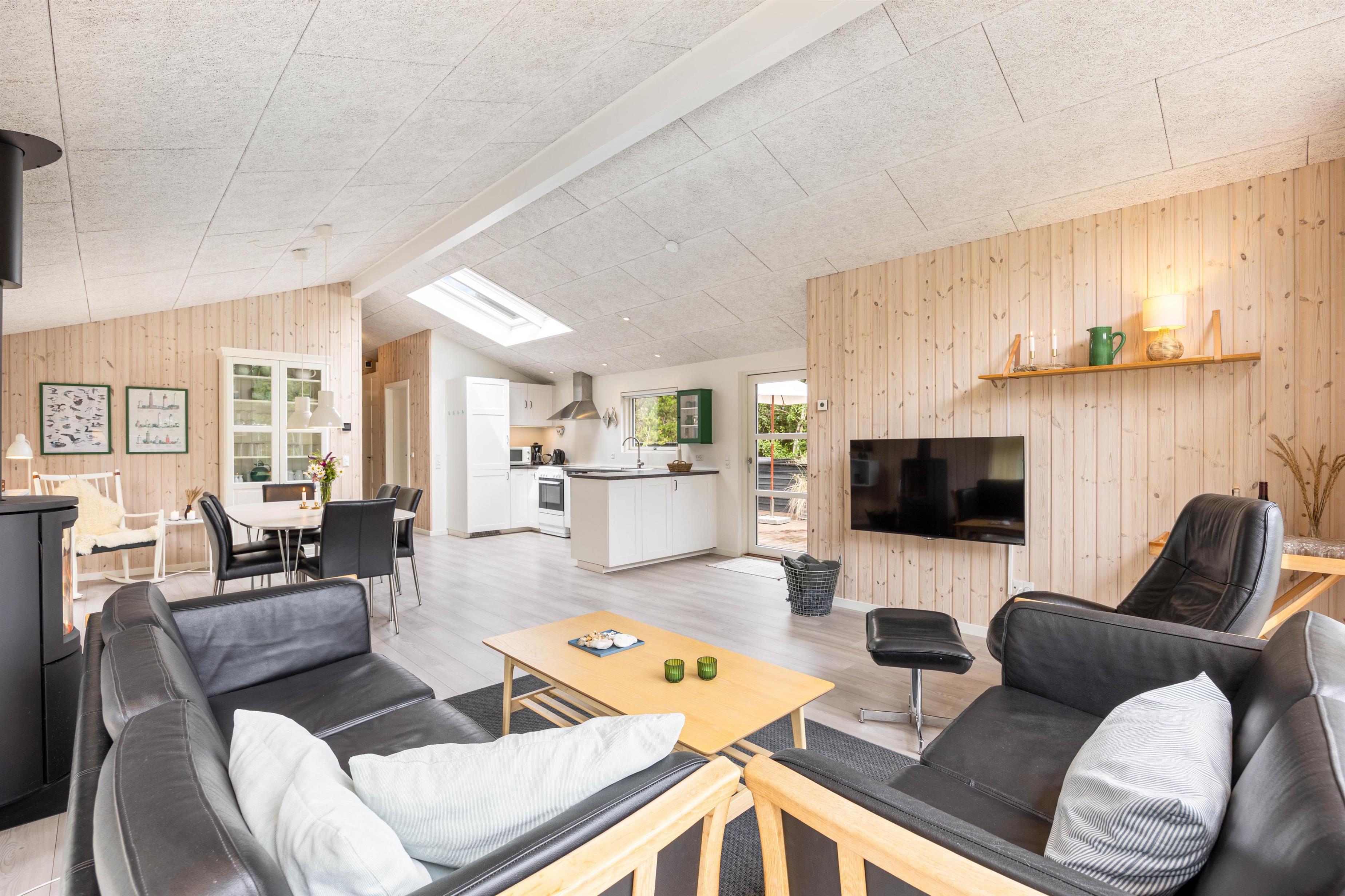 Eftersom huset også er udstyret med en opvaskemaskine, behøver I ikke tænke på oprydningen efter aftensmaden. I stedet kan I koble af og blive varmet igennem i husets sauna, som også er skøn efter en lang gåtur i landskabet. Efter en tur i saunaen kan I læne jer tilbage i sofaen og lytte til den knitrende lyd fra brændeovnen.