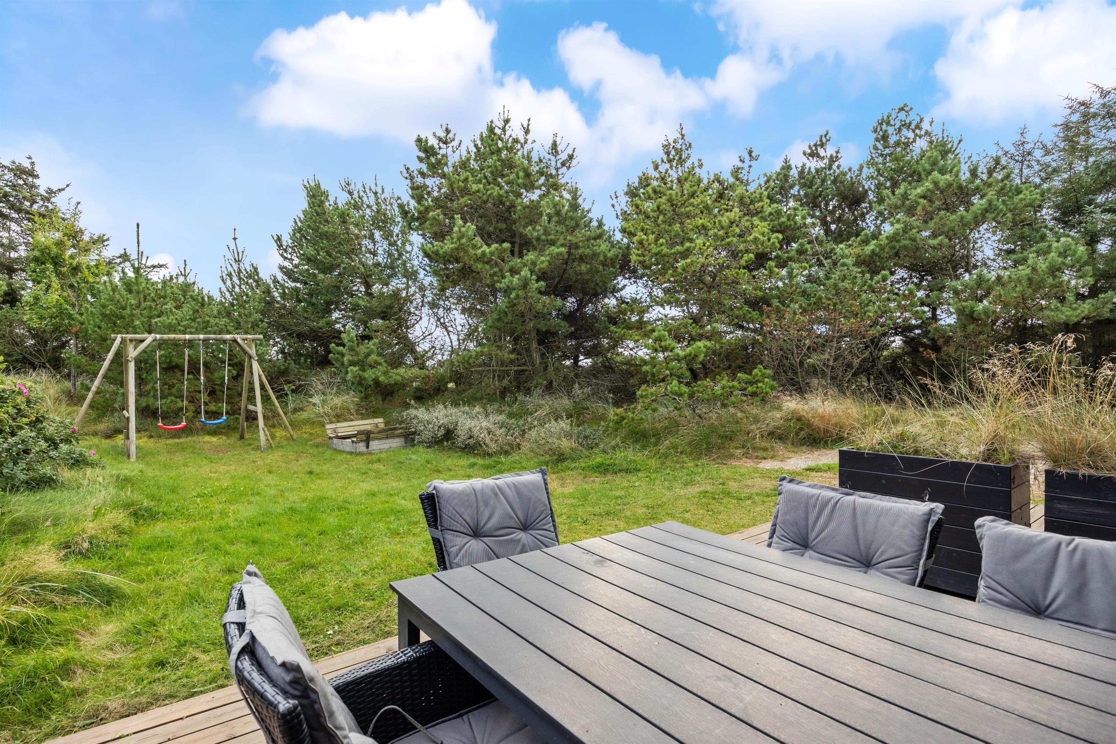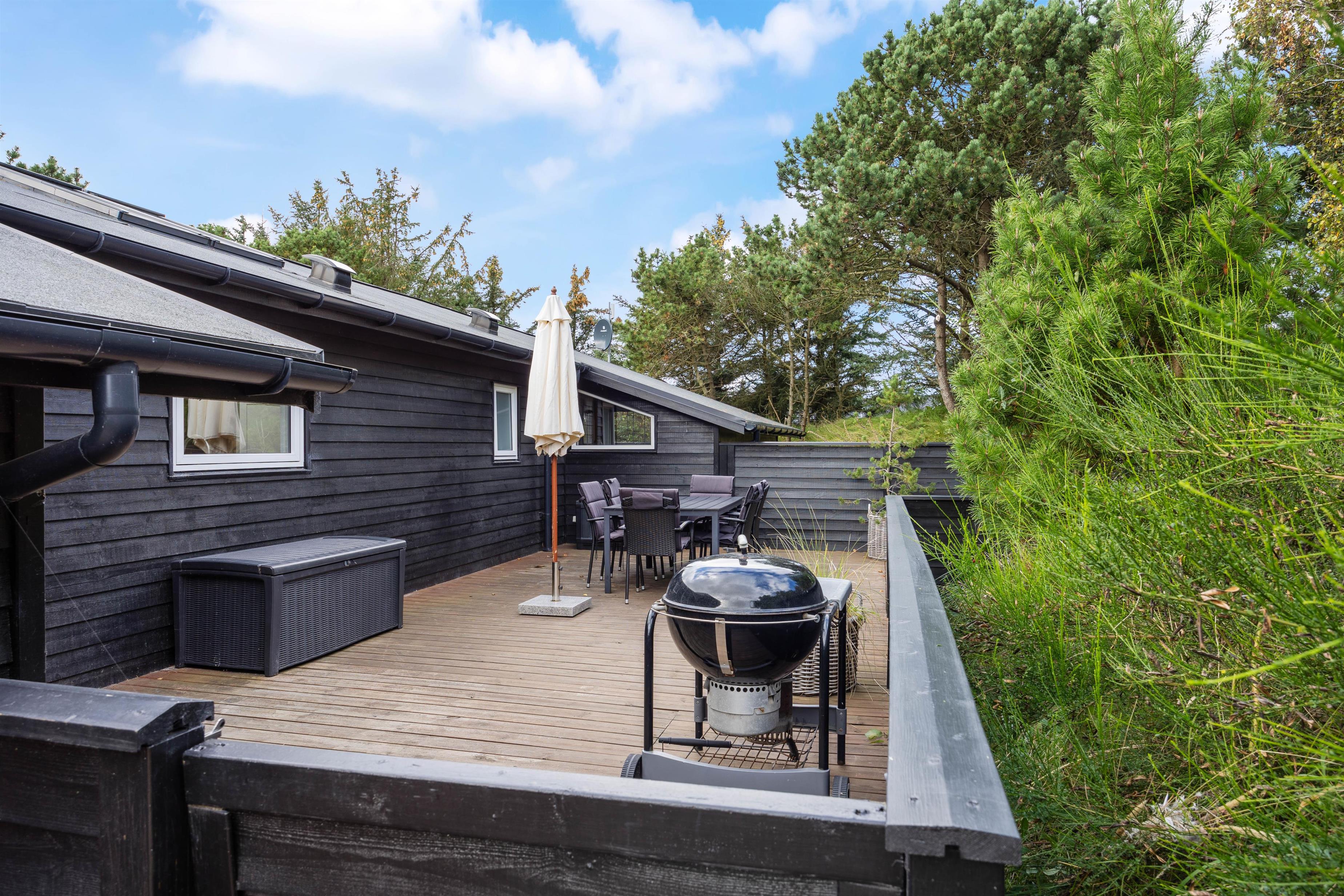 På den lukkede terrasse står der havemøbler klar til jer, så I kan nyde det solrige vejr i fulde drag. Her finder I også en grill, så I kan holde en hyggelig grillaften med familien. Eftersom terrassen er lukket, kan I trygt lade børnene eller hunden lege alene, mens I soler jer.