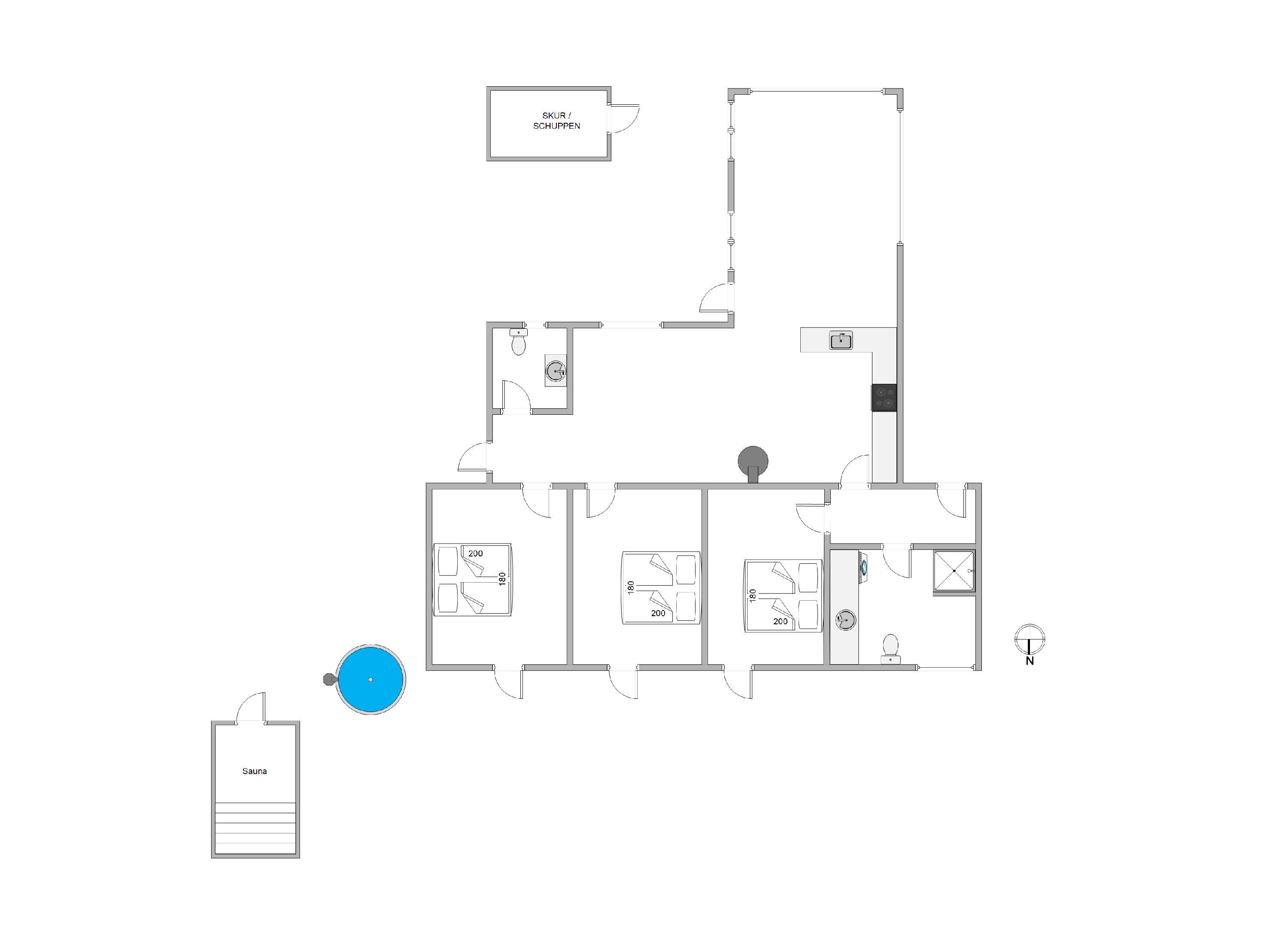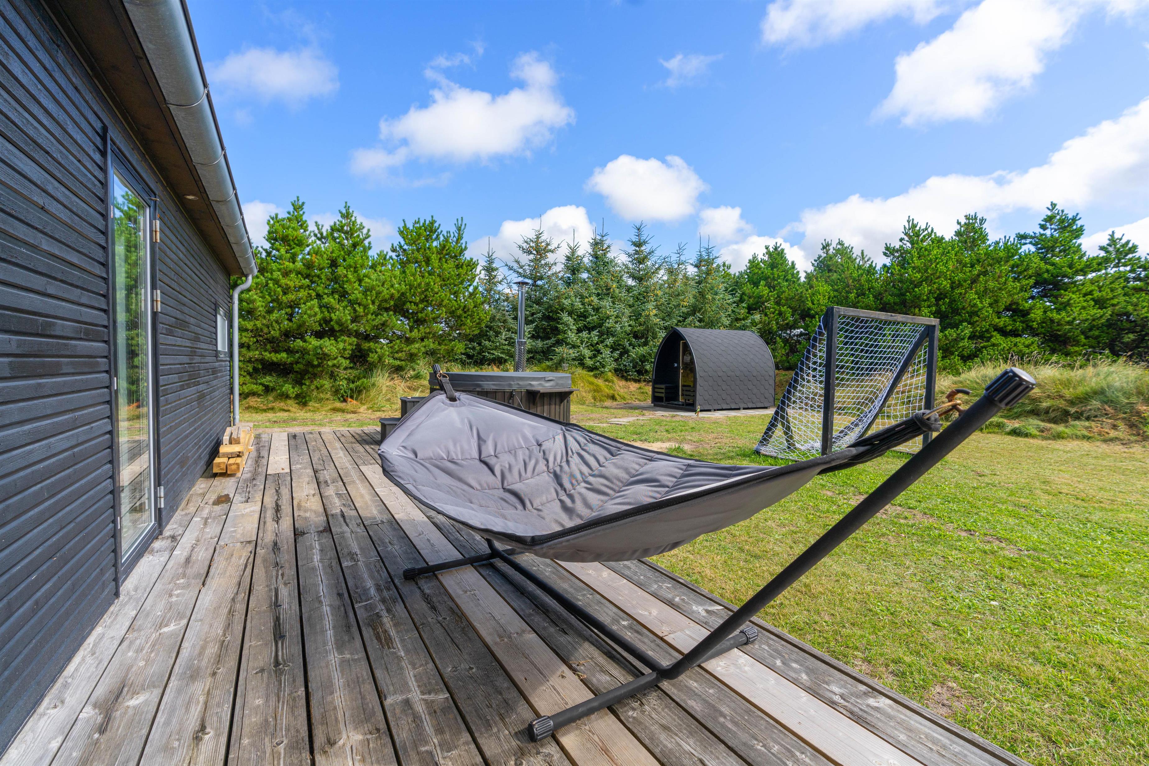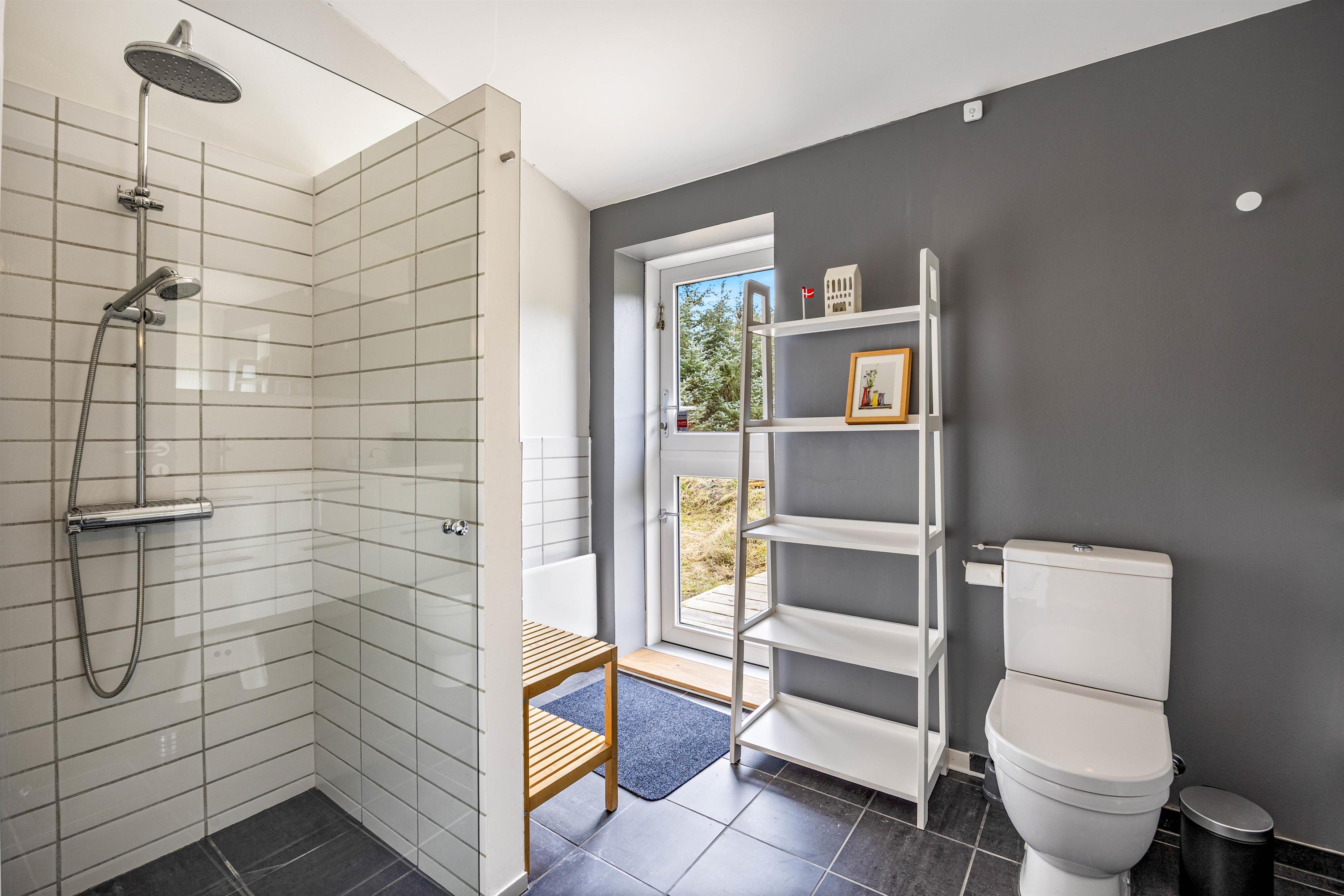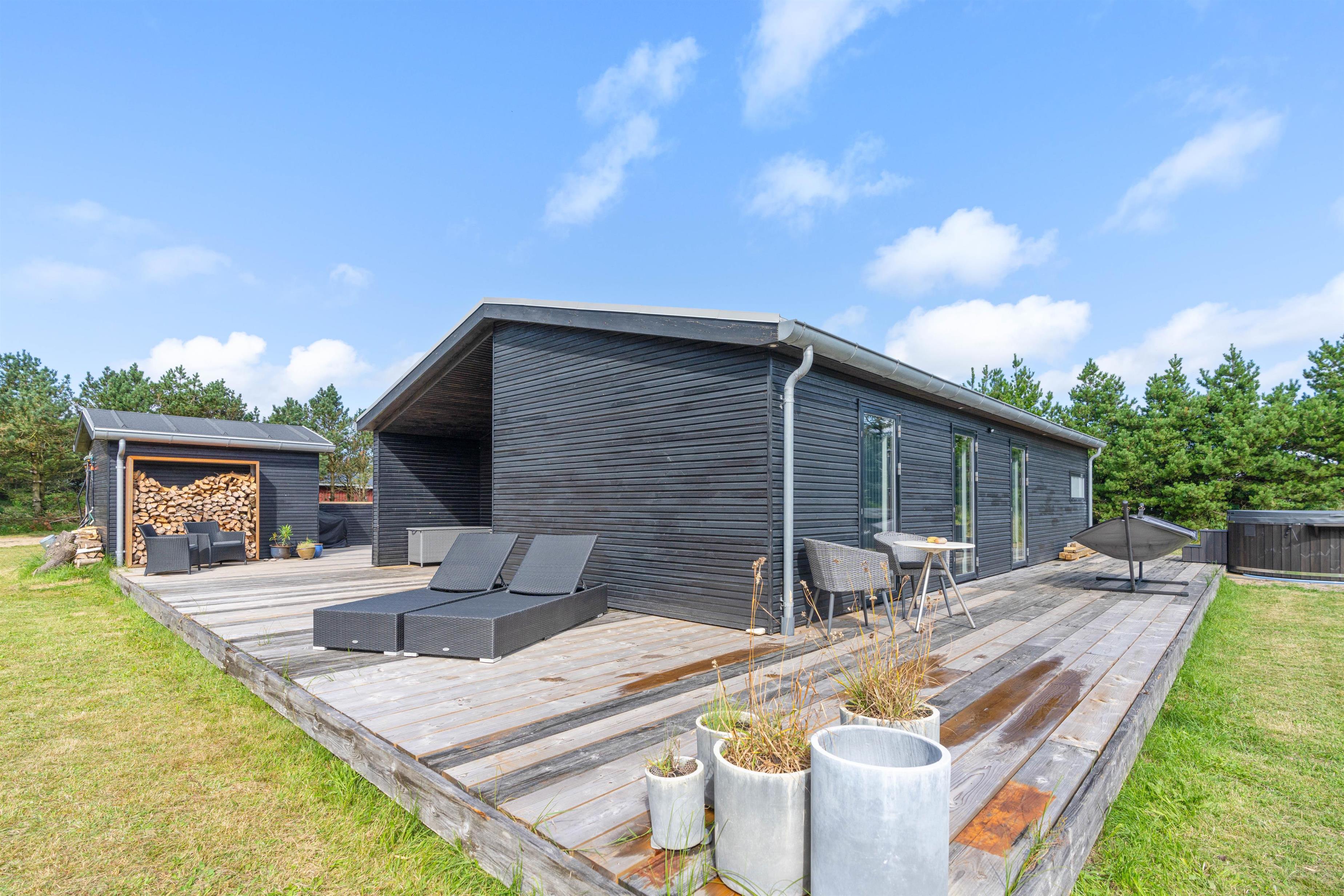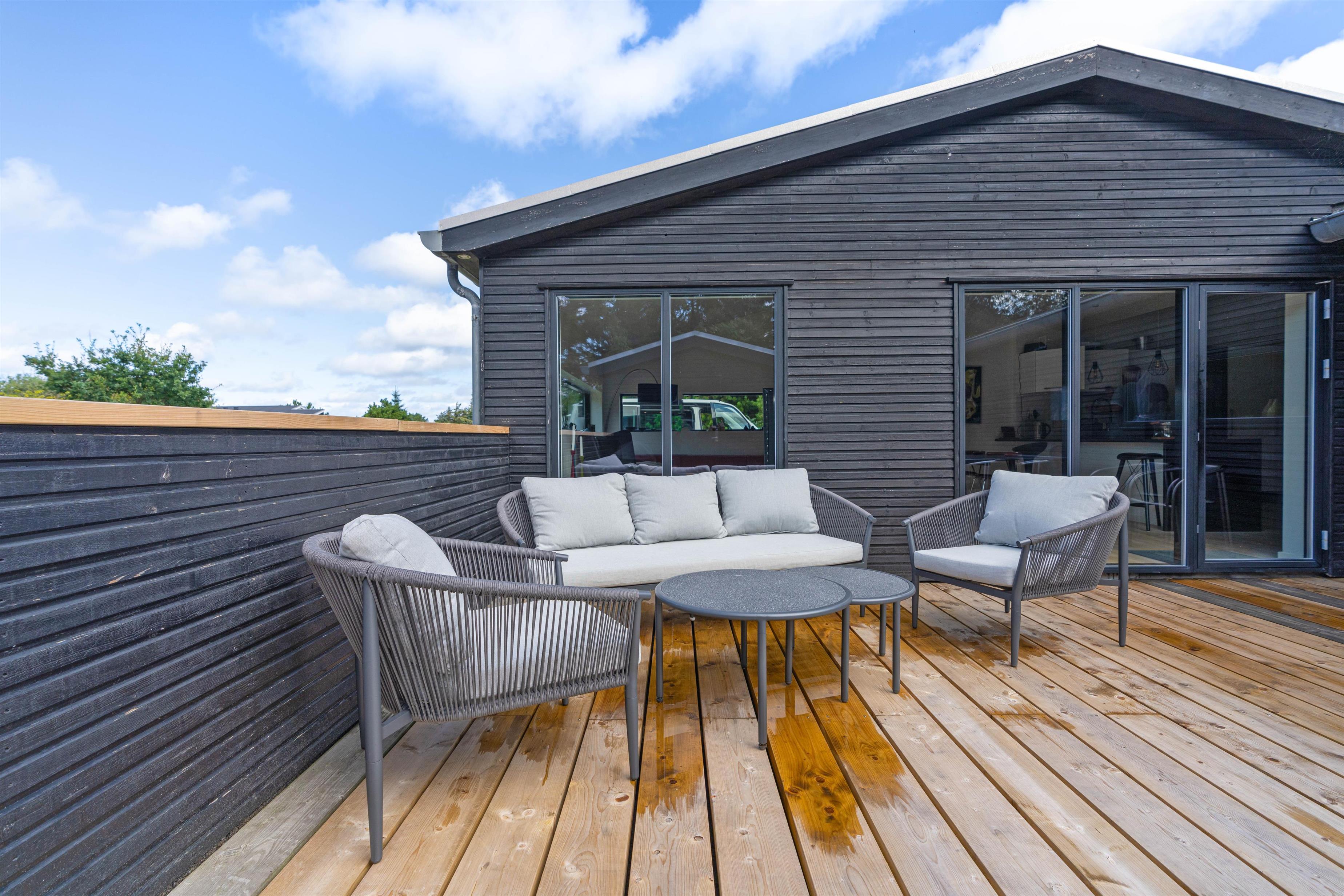 Den afskærmede terrasse omkranser huset, og fra hver af de 3 soveværelser har I jeres helt egen udgang. Sol eller vind - her finder I altid en plads i læ, så I kan nyde det flotte ferielandskab.