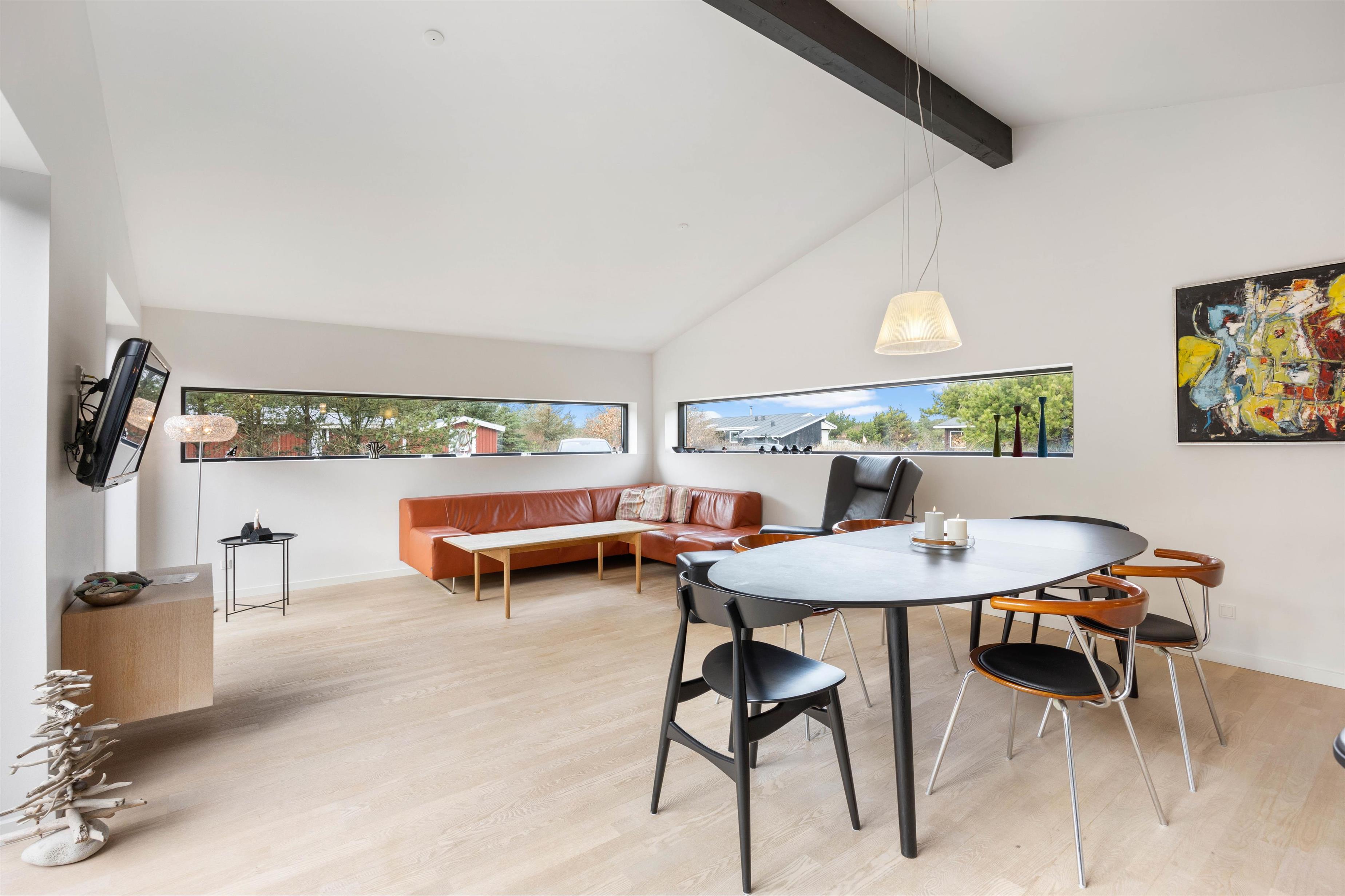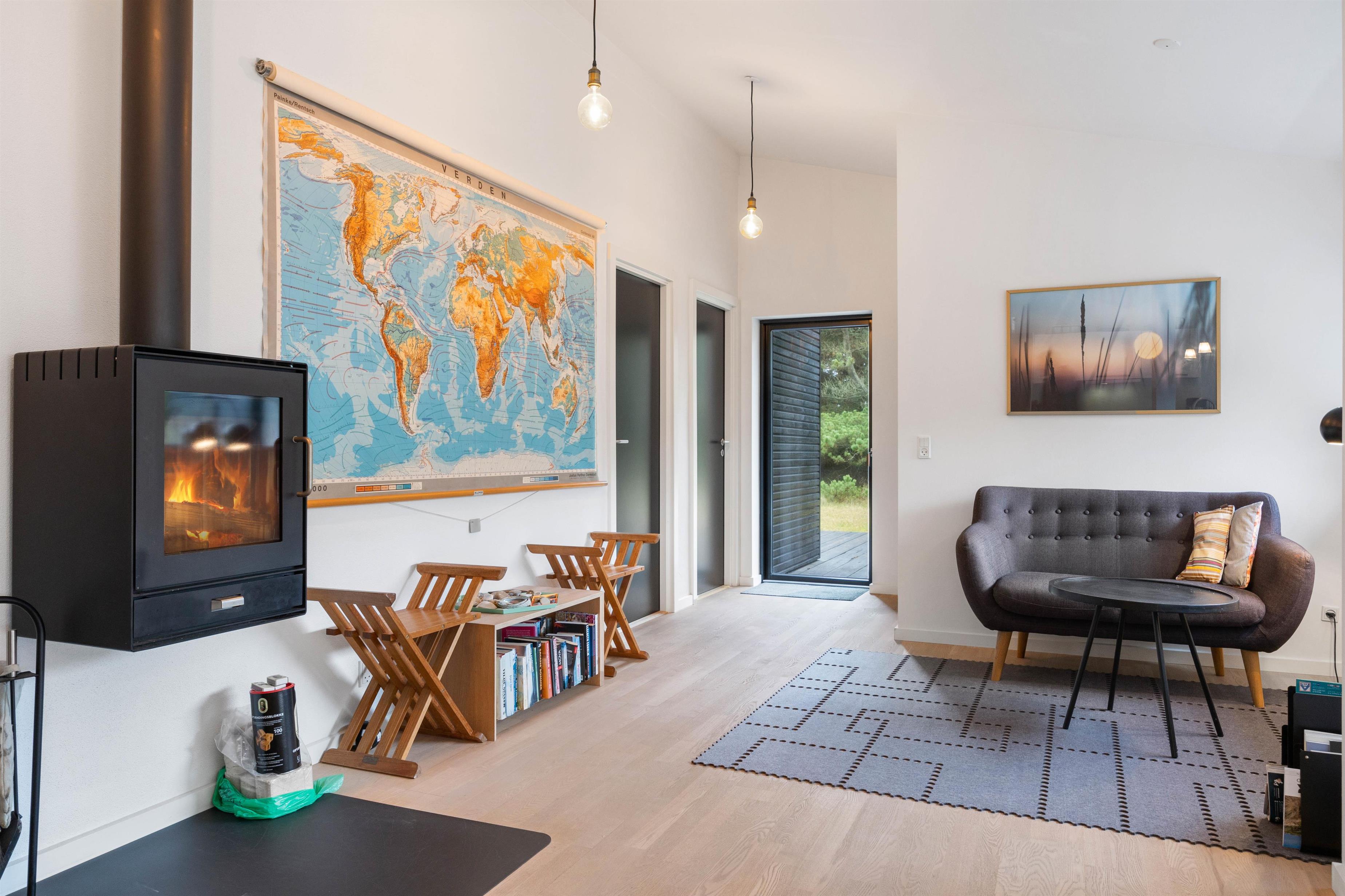 I dette moderne sommerhus vil I med det samme føle jer godt tilpas. Stuen ligger i forbindelse med det åbne køkken og giver masser af mulighed for samvær med familien og vennerne.