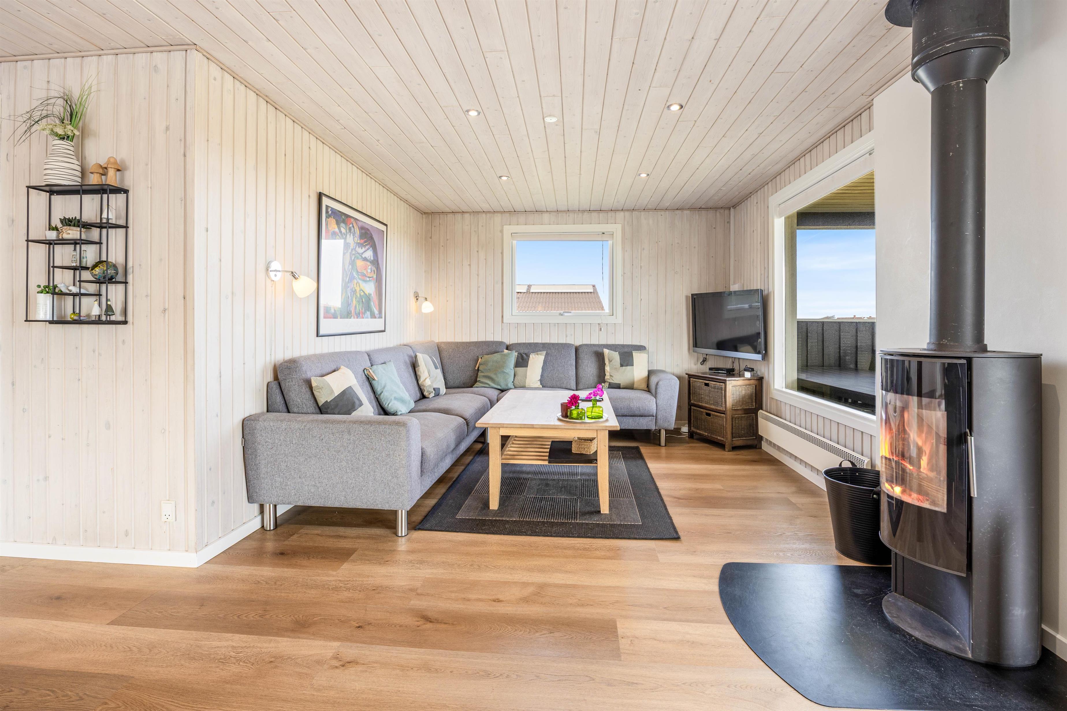 Hold da helt ferie - med hele familien! 4 soverum, hvoraf 2 har dobbeltsenge og 2 er udstyret med enkeltsenge, garanterer god plads til, at 8 personer kan holde en skøn afslapningsferie i dette dejlige lyse hus skøn udsigt og masser af hyggepotentiale. Huset blev renoveret i 2017, det er indrettet med lyse træpaneler, pæne bekvemme møbler, brændeovn og et åbnet samtalekøkken, som er moderne og veludstyret.