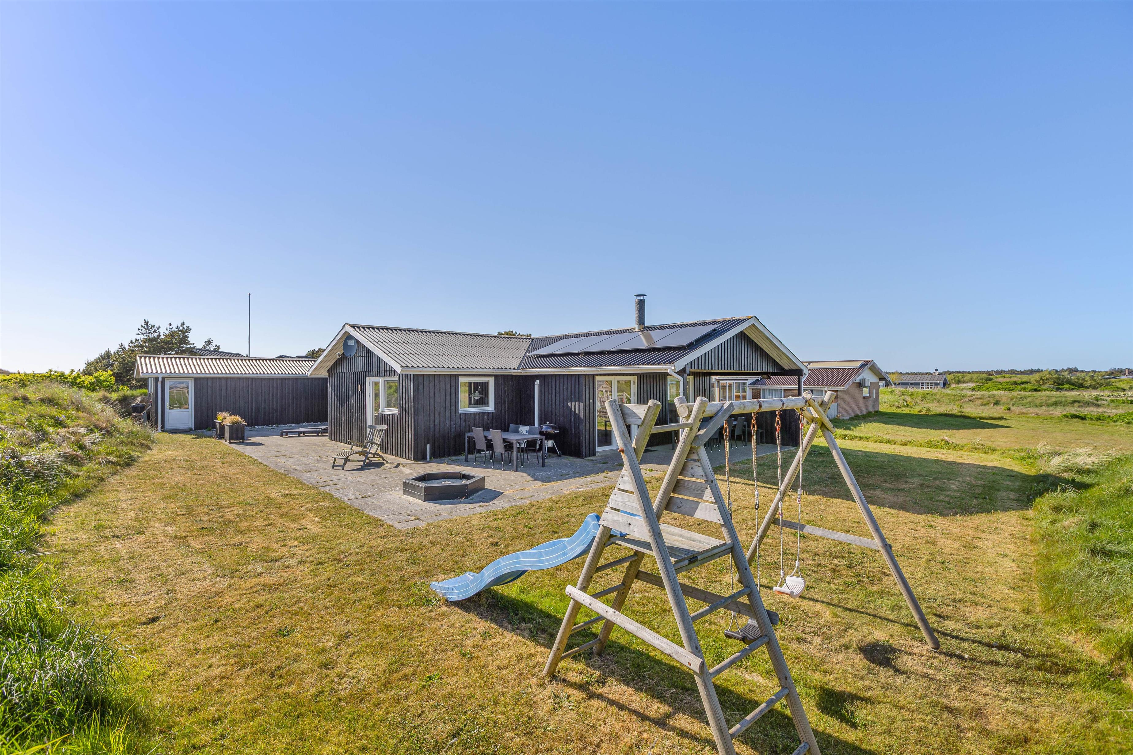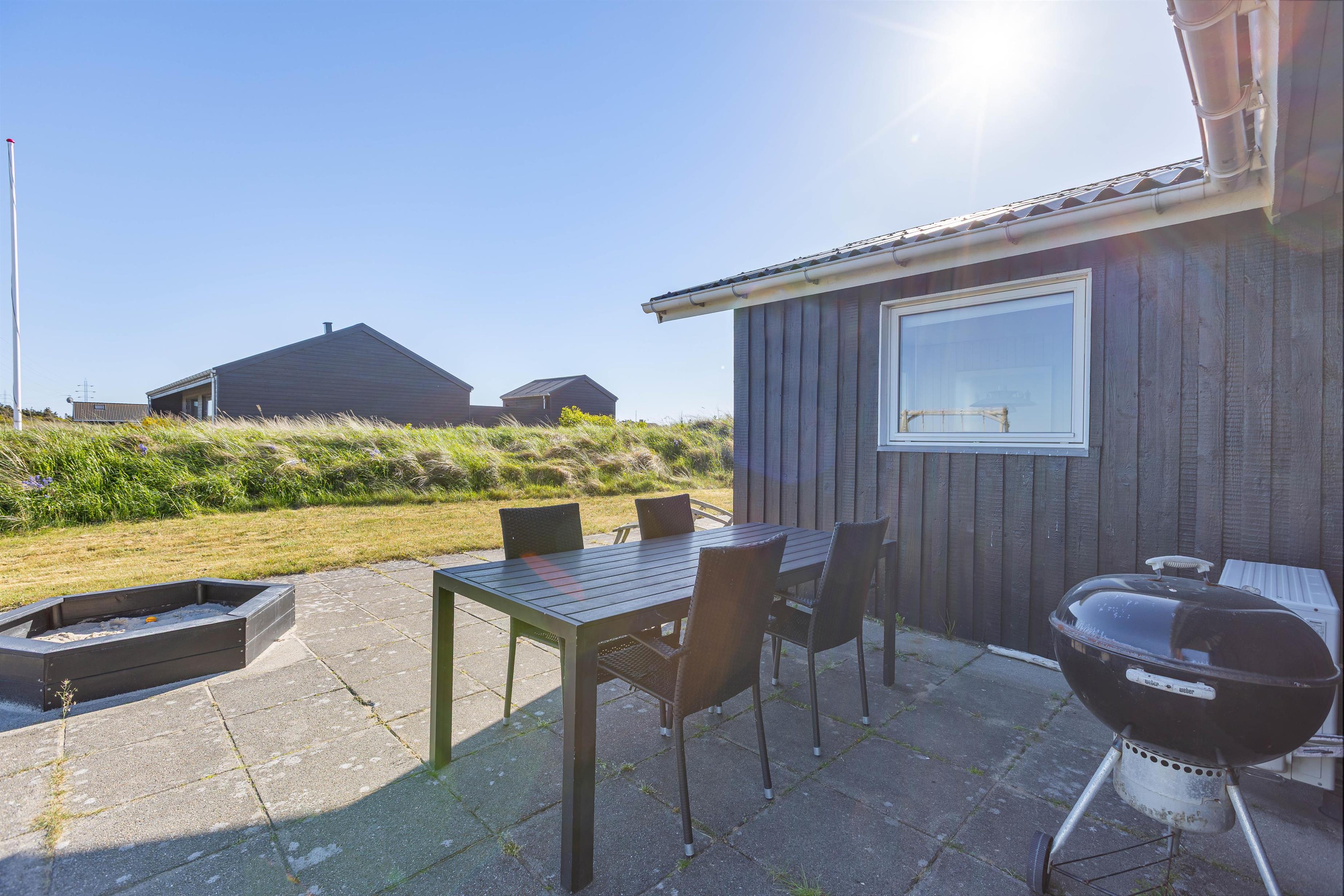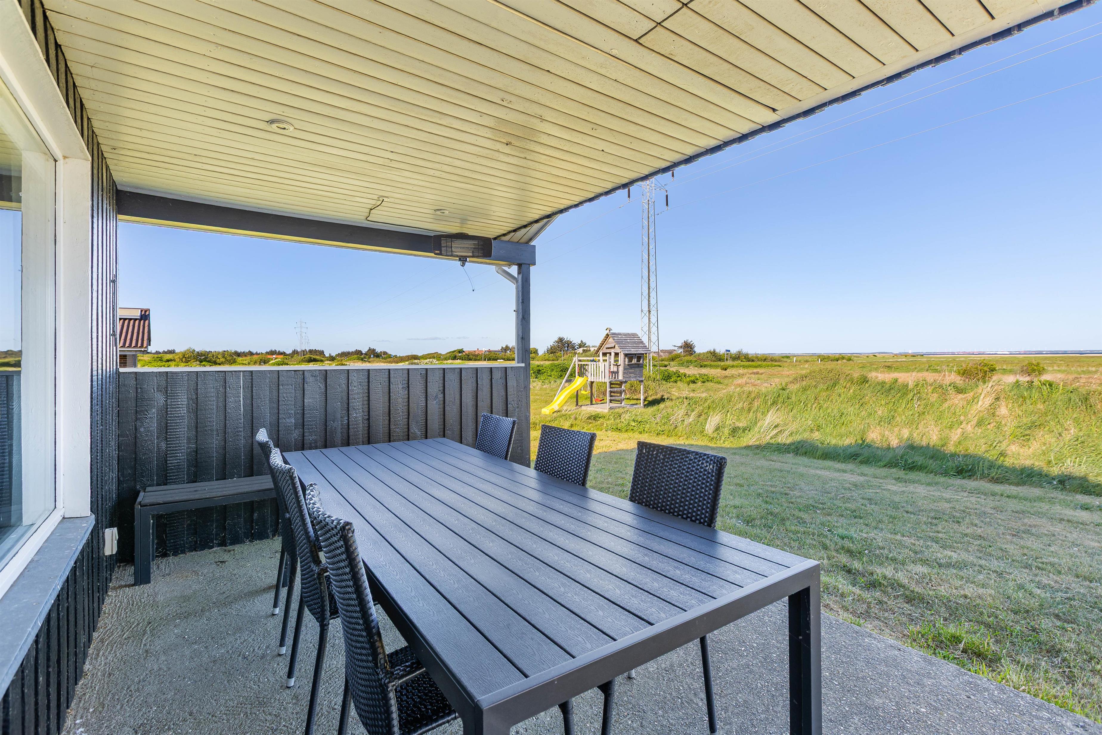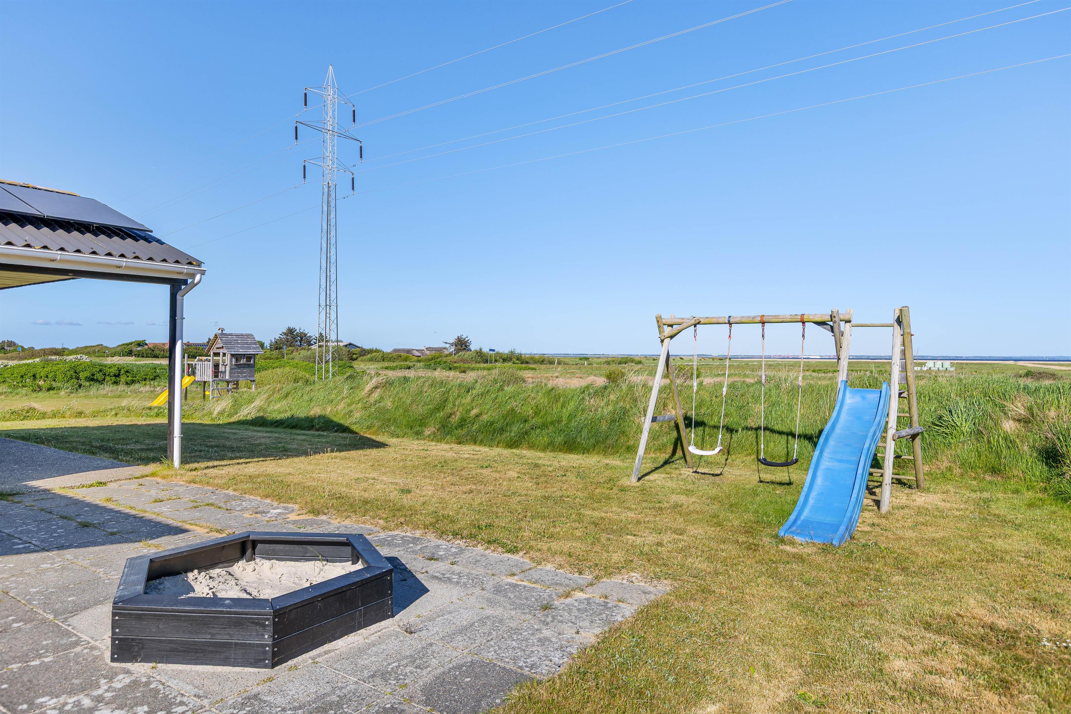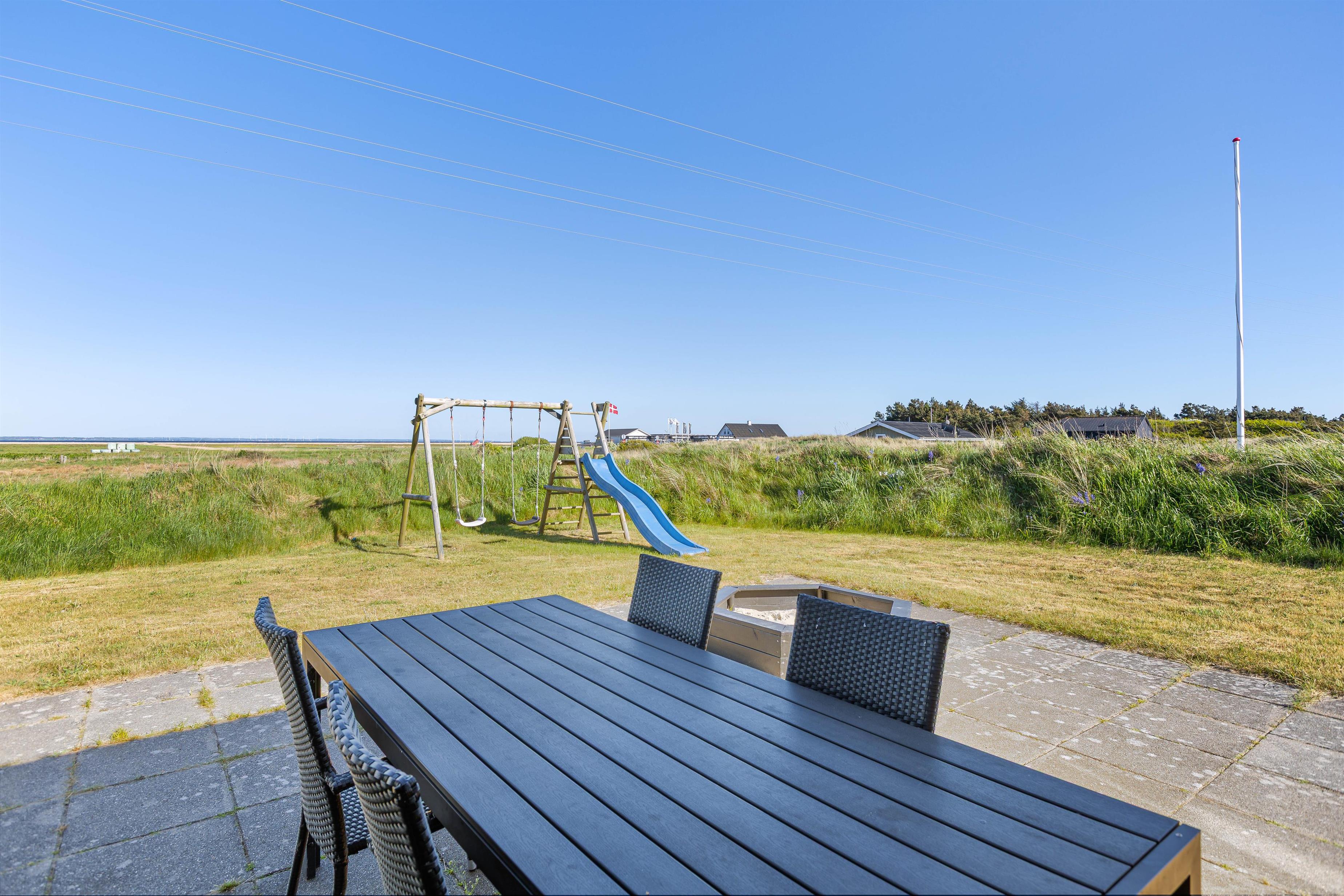 Nyd den skønne fjordudsigt fra terrassen imens børnene gynger, bygger sandslotte eller tumler på den store grund. Terrassen har et godt overdækket område, hvor der også er sørget for læ, så I kan tilbringe så megen tid som muligt i den friske luft. Måske har I haft mulighed for at medbringe cykler til hele banden? Så kan bilen sættes i den store lukkede garage og forblive der hele ferien, for hele Holmsland Klit er præget af skønne cykelstier og alt det vigtige kan nås med pedalkraft.