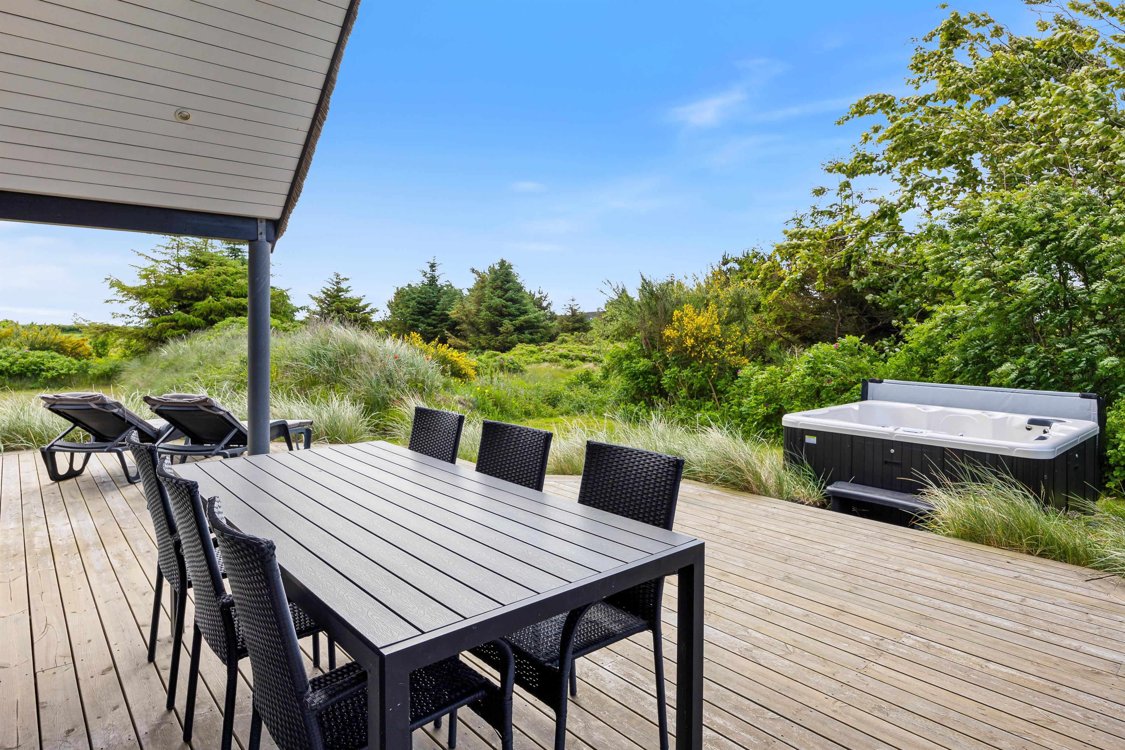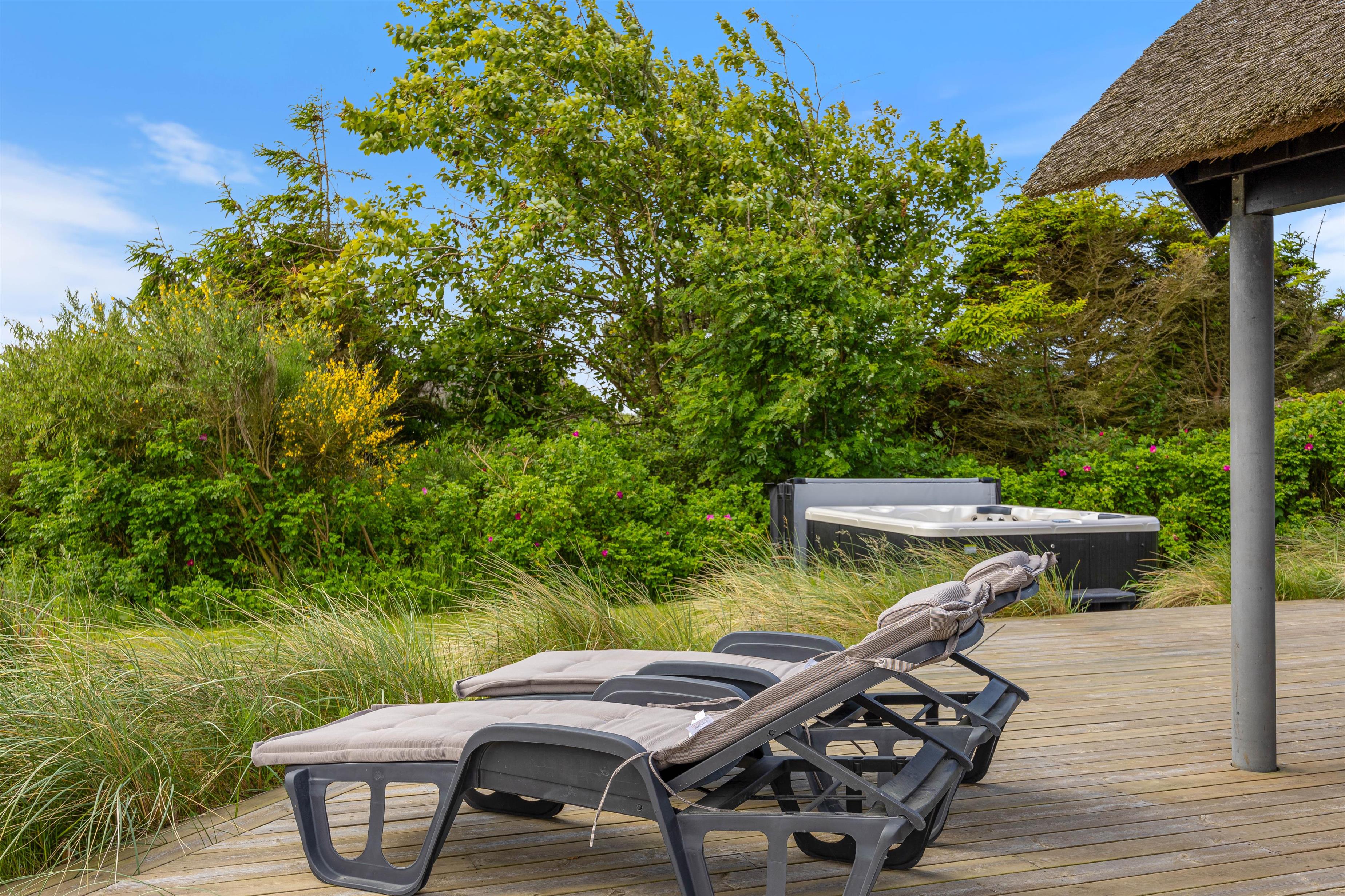 Efter en dejlig dag kan I sætte jer ned i udespaen, som står på terrassen, og slappe af. Udover udespaen finder I også en udebruser, hvor I kan skylle sandet af tæerne efter en tur ved stranden. Udebruseren er dog kun tilgængelig fra april til november.
