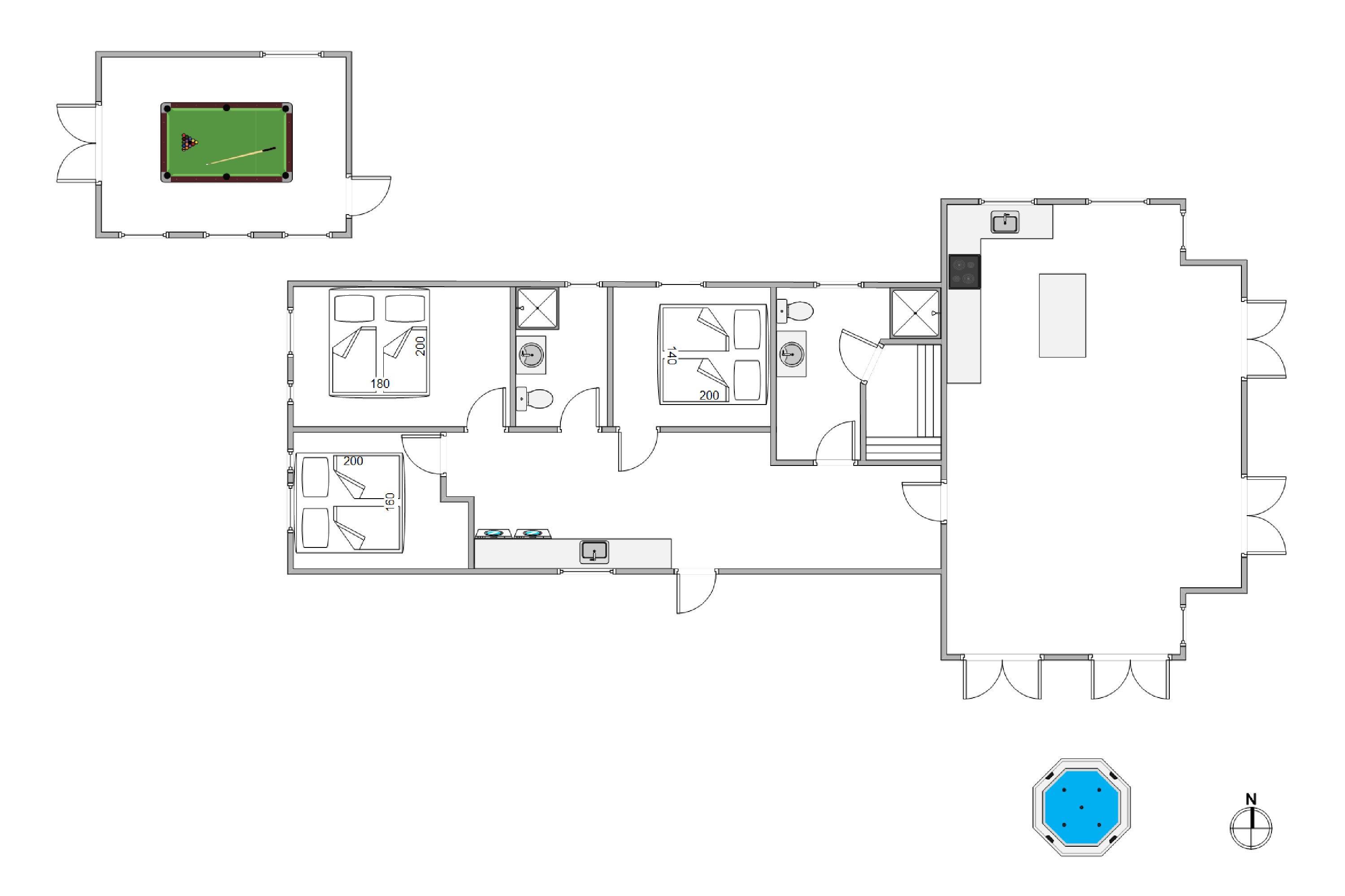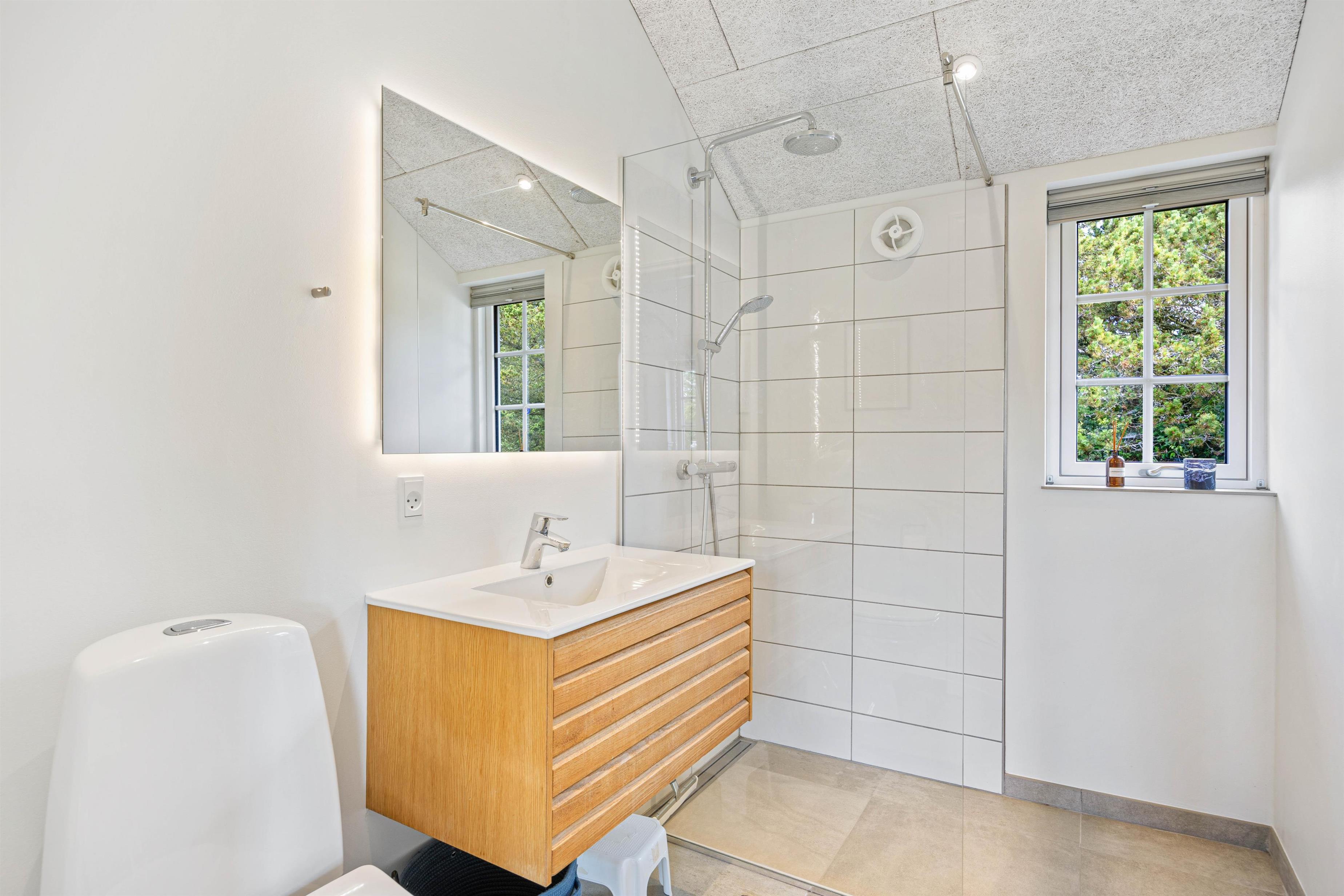 Sommerhuset har tre soveværelser, hvor I kan trække jer tilbage og få en god nats søvn. Der er 2 badeværelser i sommerhuset, som begge har gulvvarme. På det ene badeværelse finder I en sauna, hvor I kan sætte jer ind og nyde roen og få varmen igen efter en dejlig gåtur ved havet.