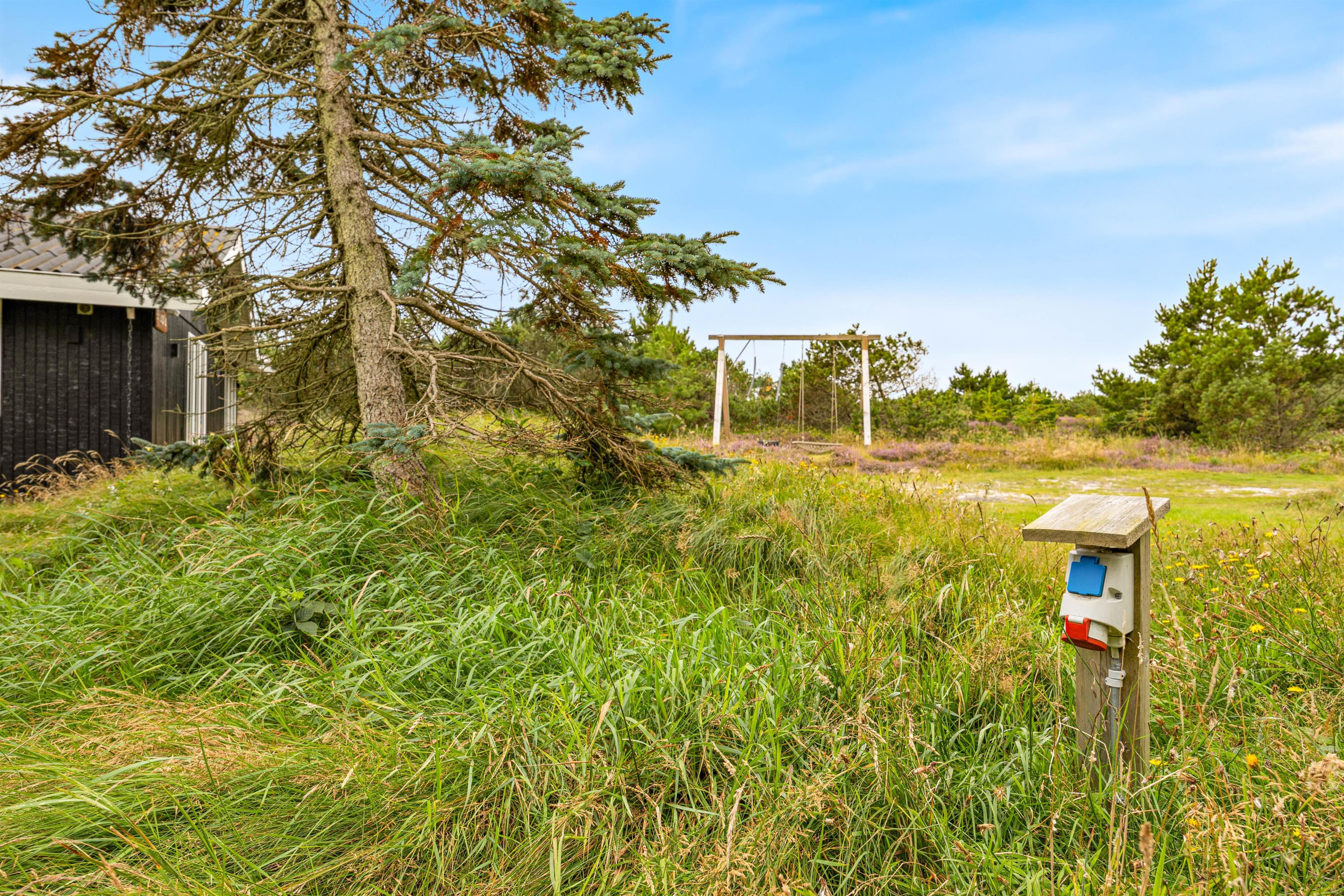 Sommerhuset ligger afskærmet og I kan opholde jer uforstyrret udenfor på den 2000m2 store grund eller på den skønne, overdækkede terrasse. Til de mindste er der desuden en gynge, som de helt sikkert vil elske. Imens kan de vokse nyde havemøblerne og lave aftens grillmåltid – enten på gasgrillen eller kuglegrillen.