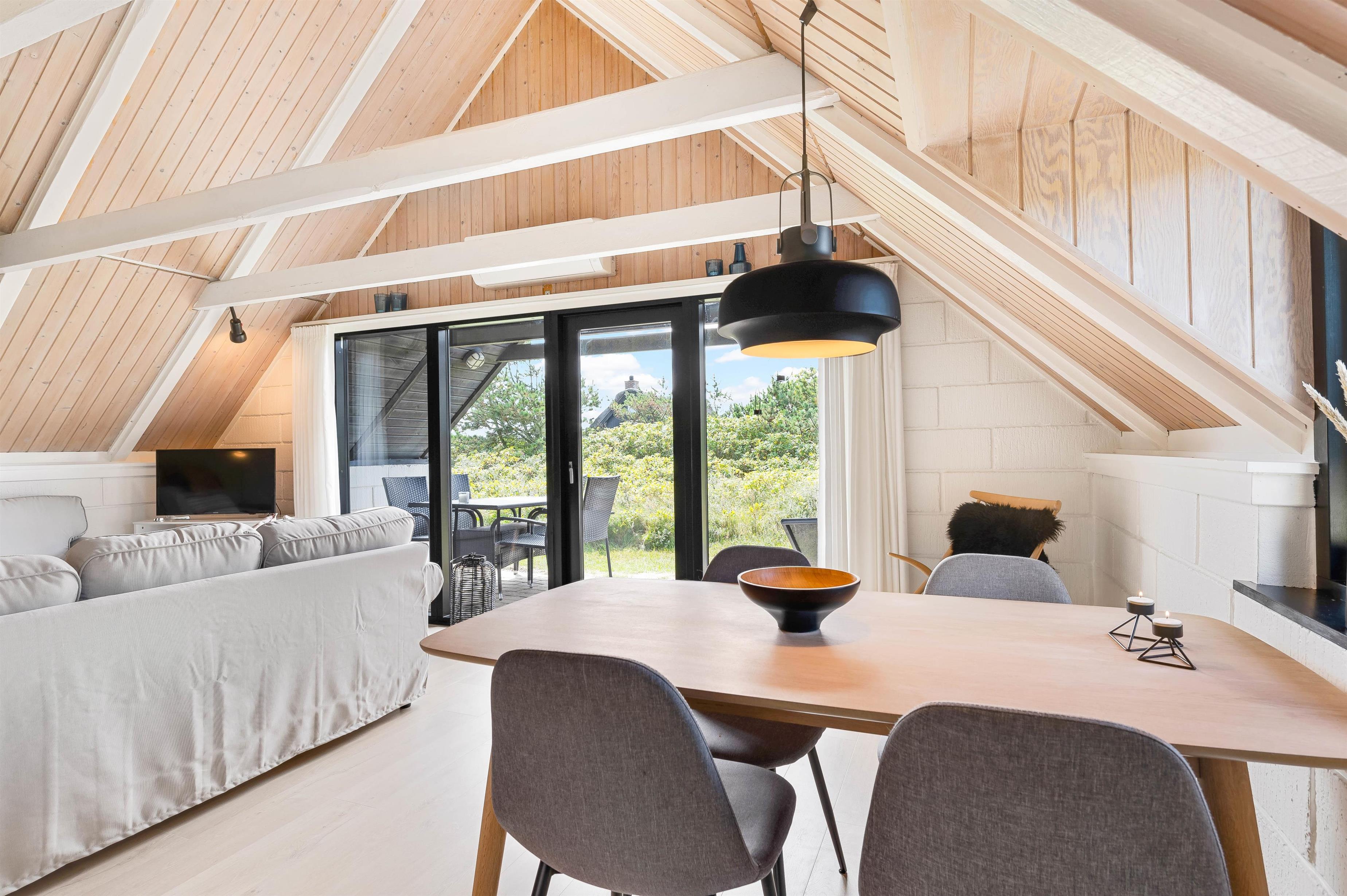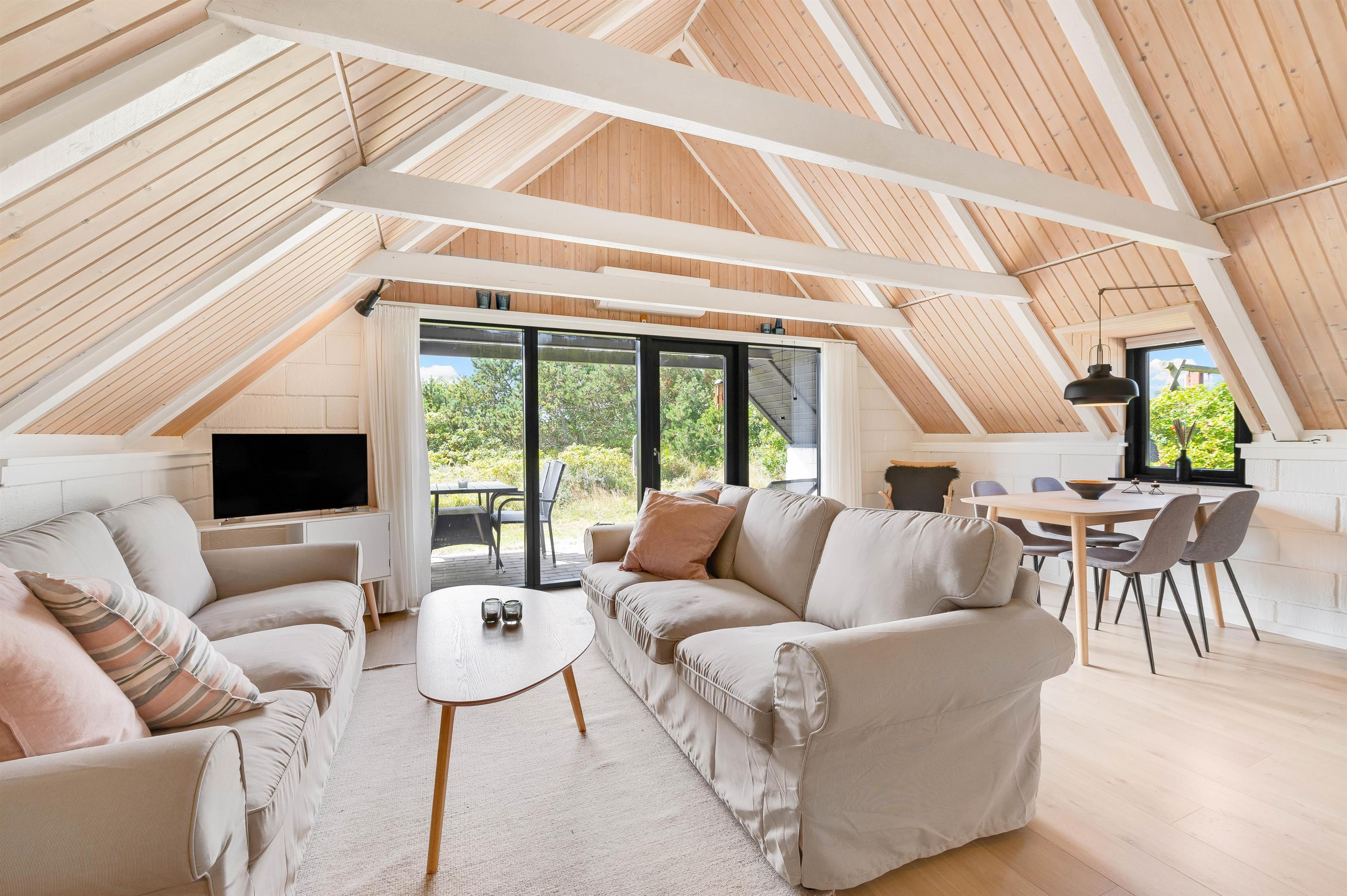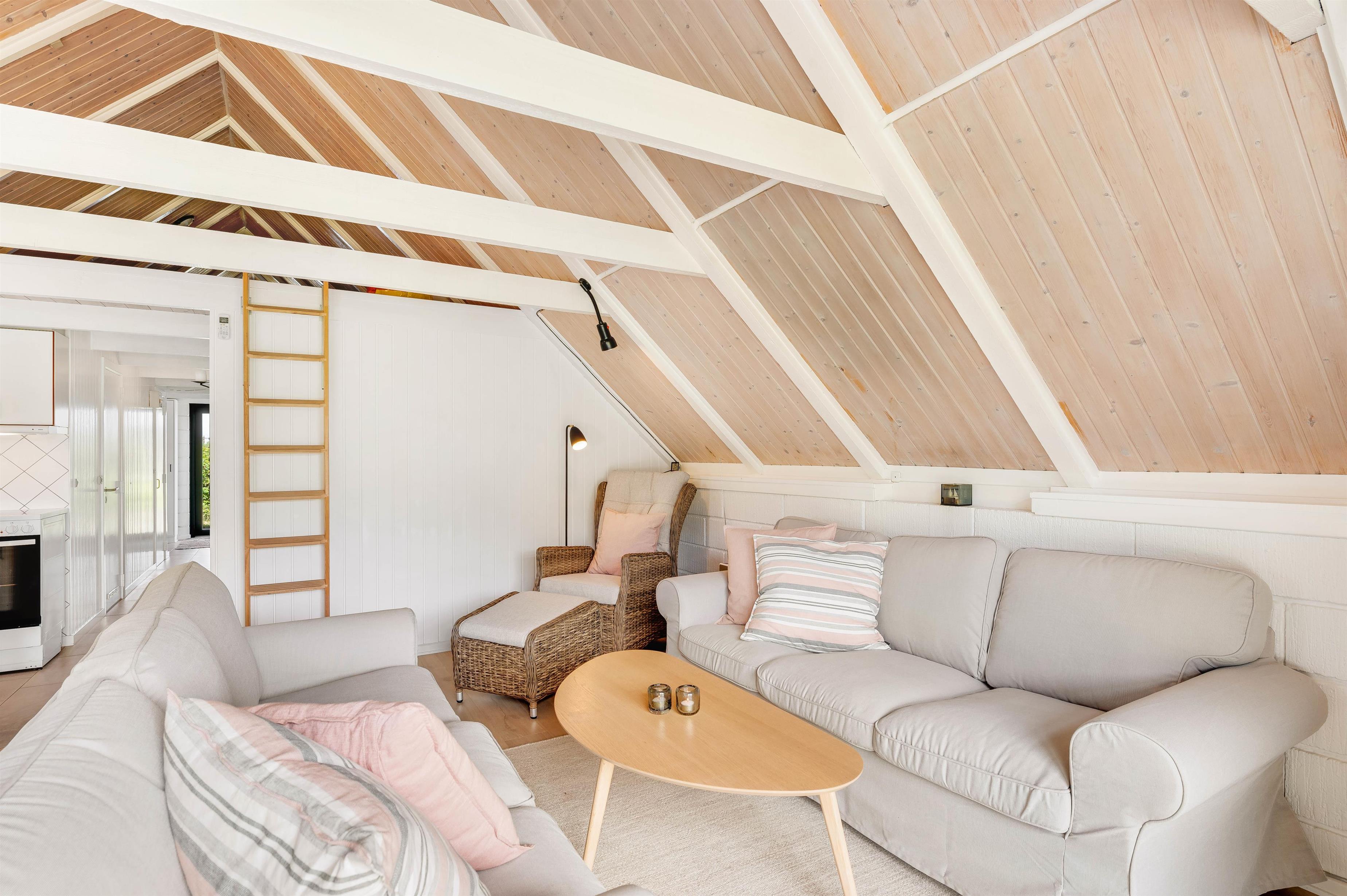 Det stråtækte sommerhus på Nordsø Ferievej 70 har en lys og venlig indretning, som I uden tvivl vil føle jer hjemme i, allerede når I træder ind i feriehuset. Det store samlingssted i sommerhuset er den store opholdsstue med loft til kip, hvor I kan være sammen om madlavningen eller samles i sofaerne til gode film i tv'et.