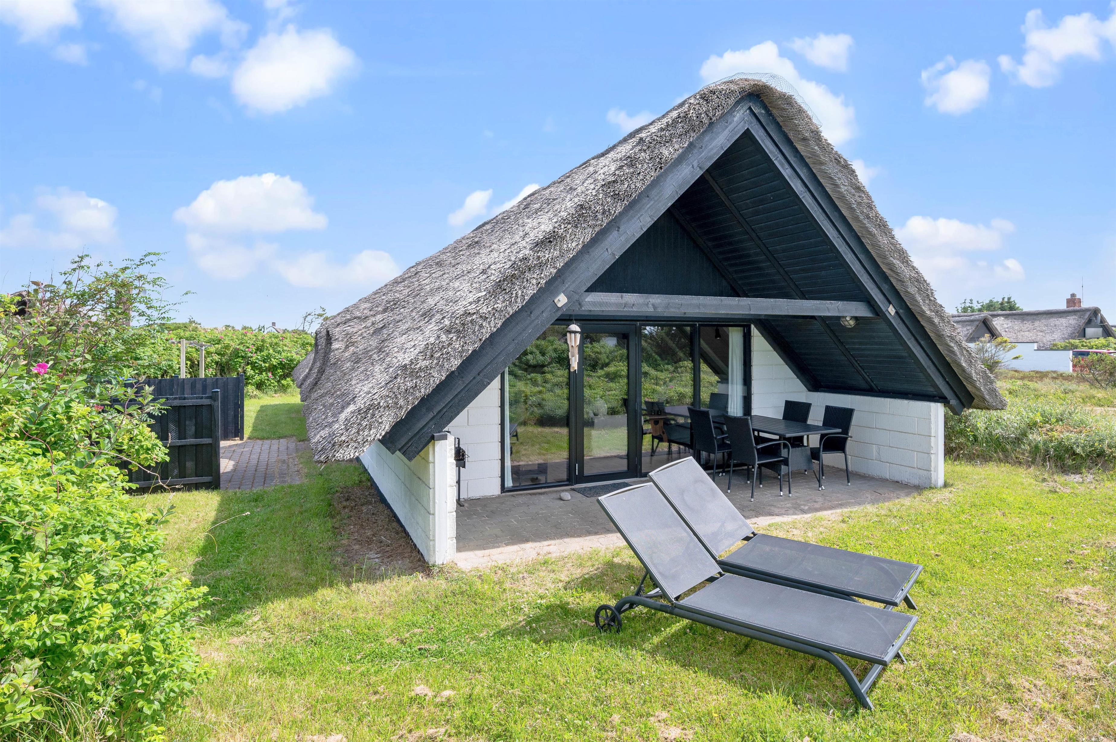 Udendørs er der også gode muligheder for afslapning. Sommerhuset har nemlig hele 2 terrasser, som I kan nyde de solrige feriedage fra. Den ene terrasse er læfyldt og vender mod vest, mens den anden terrasse er overdækket og vender mod syd. Dermed har I gode muligheder for at finde en plads i enten sol eller skygge, alt efter hvad I foretrækker.