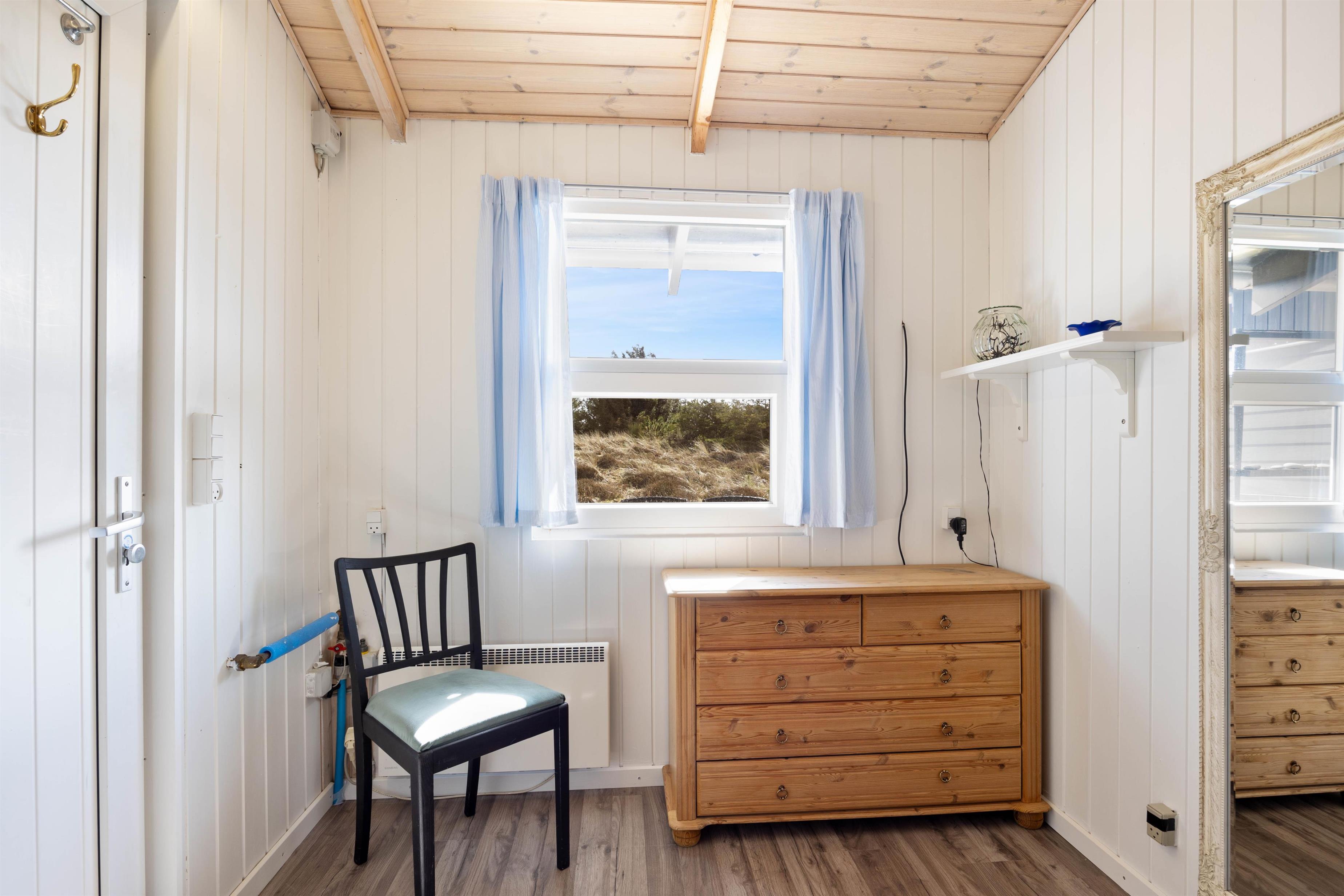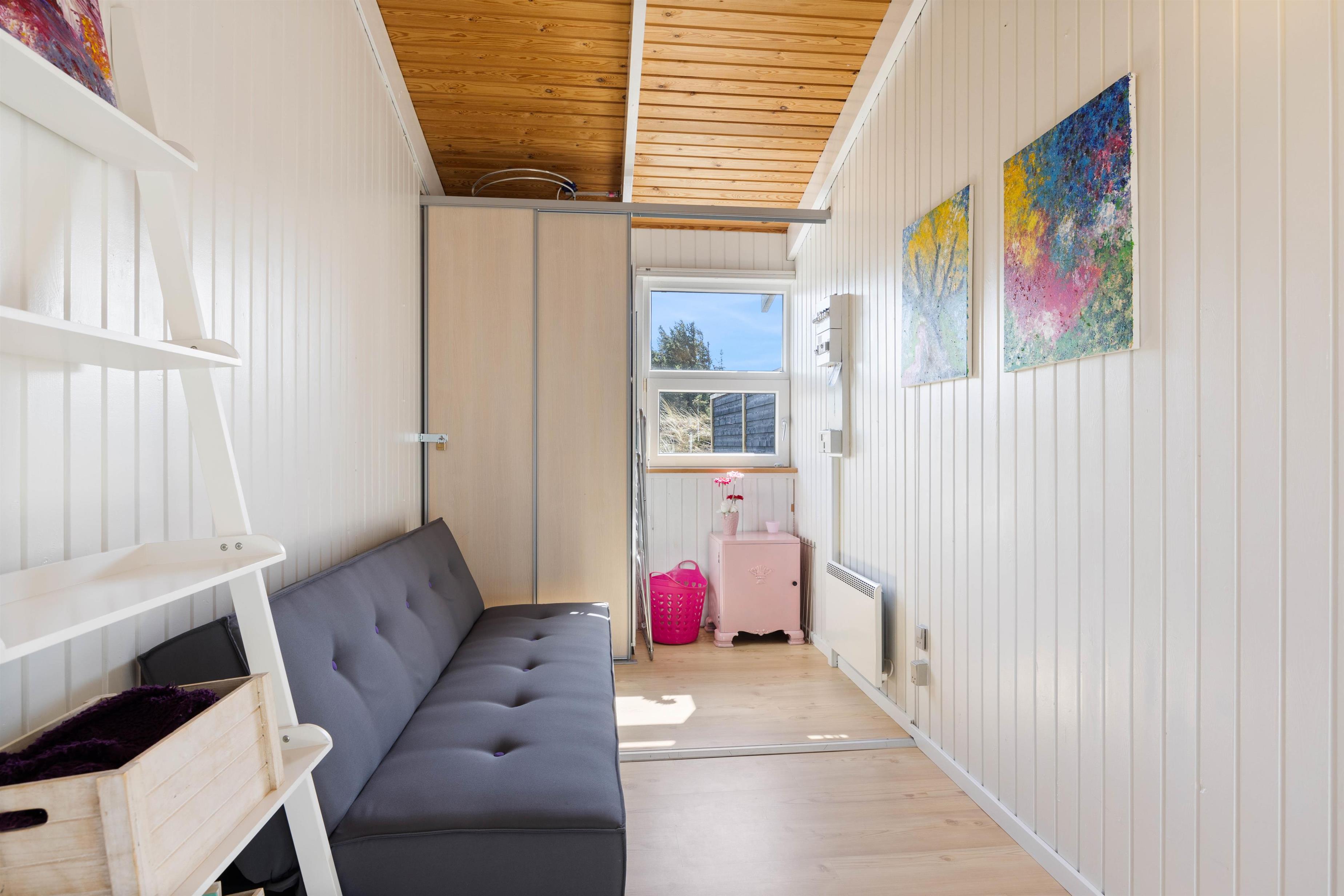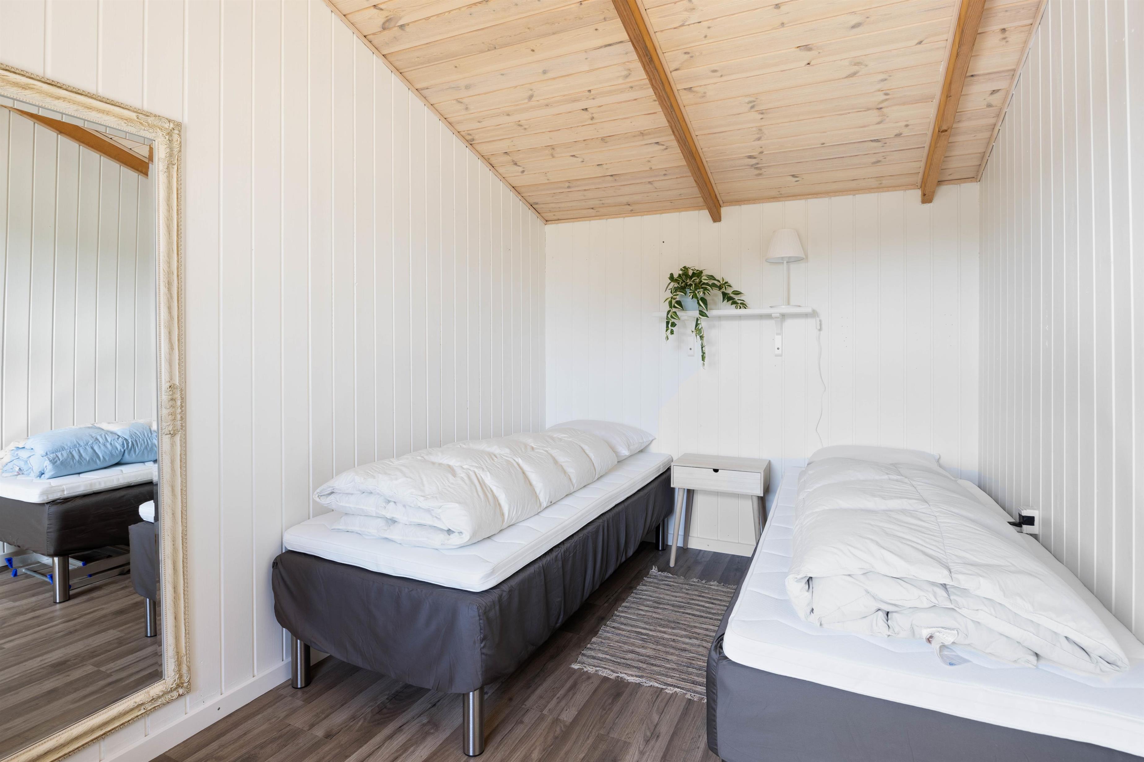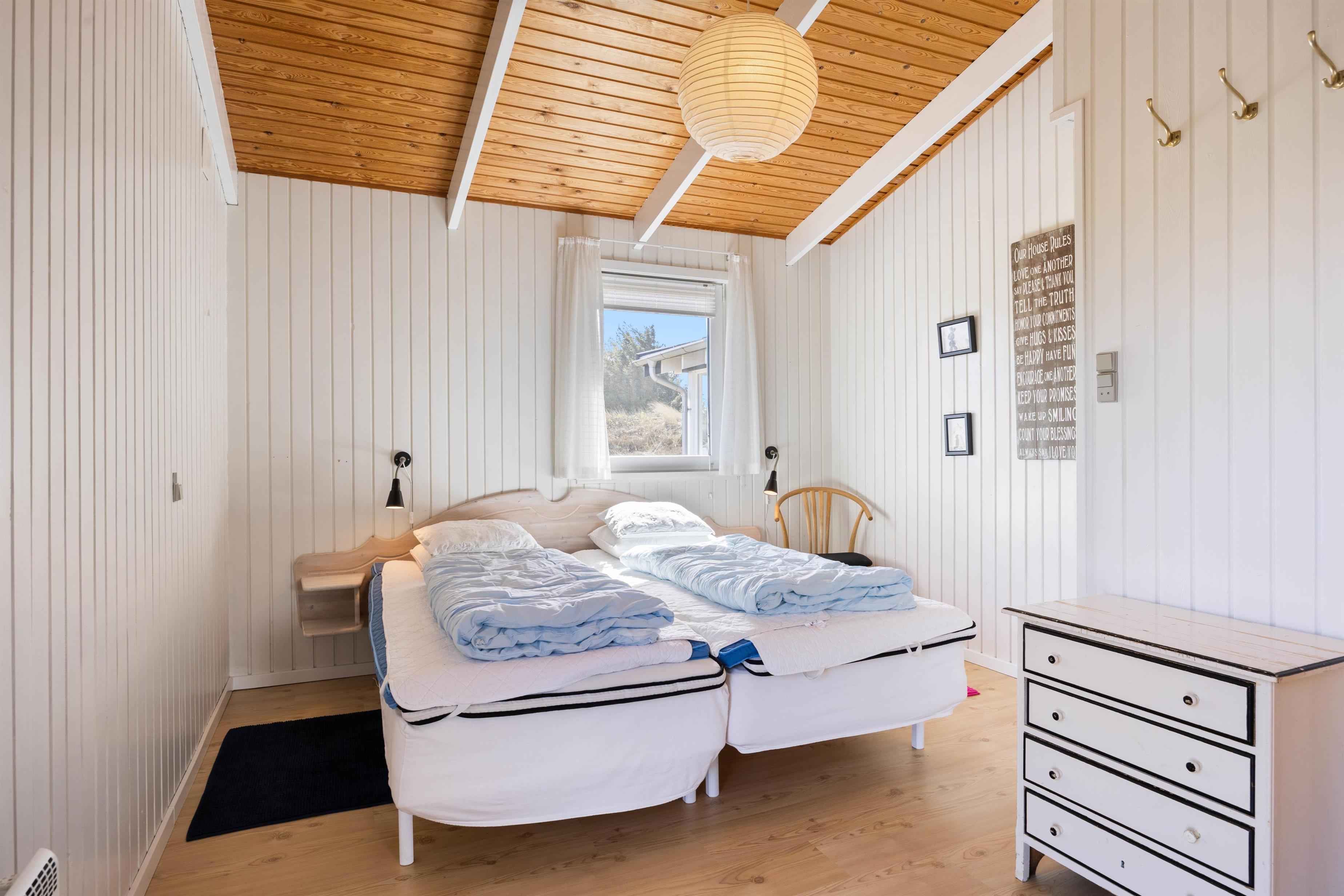 Huset er til 4 personer, som fordeles på 2 soverum – Et soveværelse med en dobbeltseng og et anneks med to enkeltsenge. På denne måde er der mulighed for, at de lidt ældre børn kan have det lidt for sig selv.