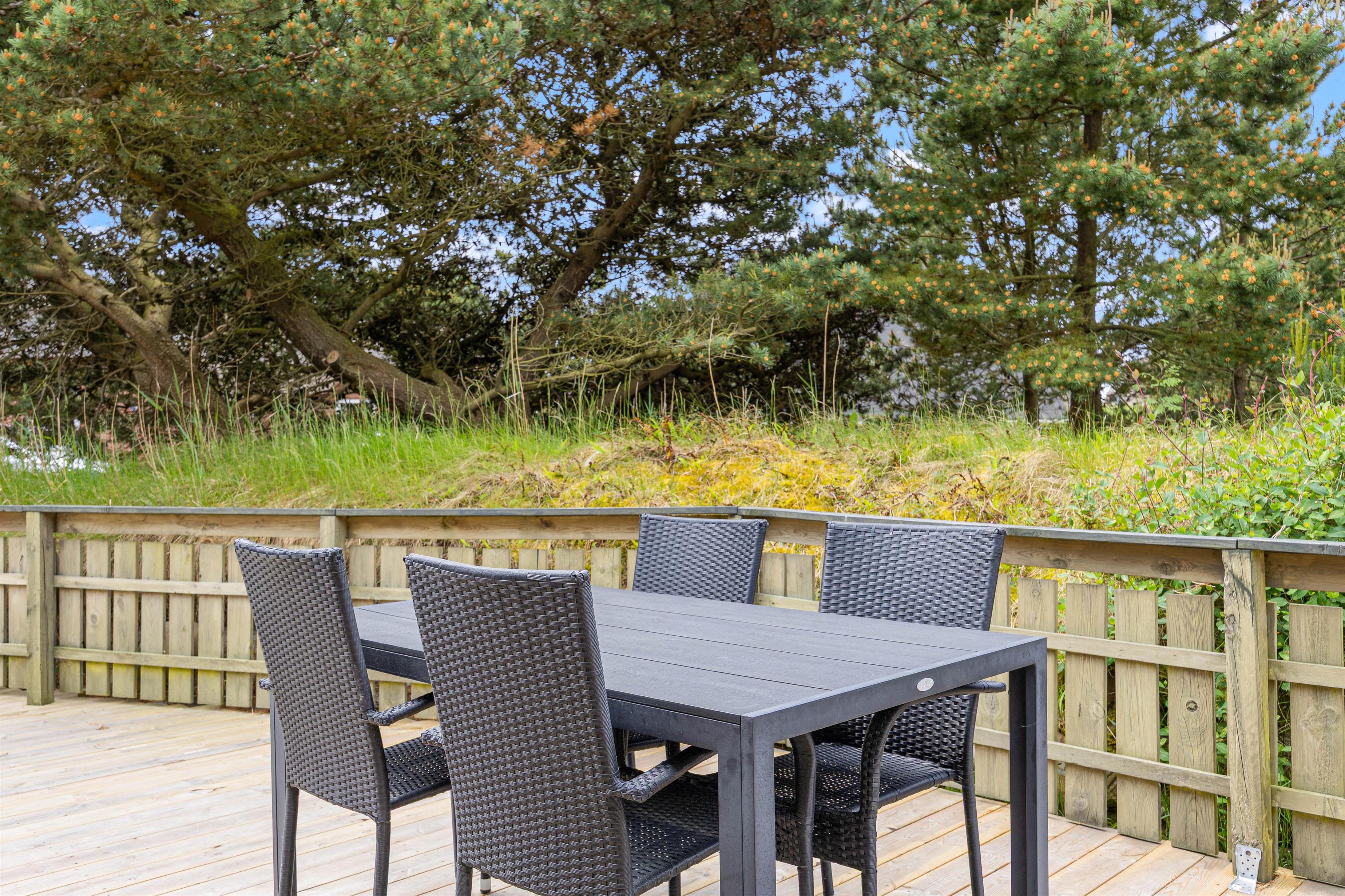 Feriehusets grund er naturligt afskærmet, hvilket giver en dejlig atmosfære på terrassen, men det sørger også for læ og privatliv, så du kan være helt dig selv.