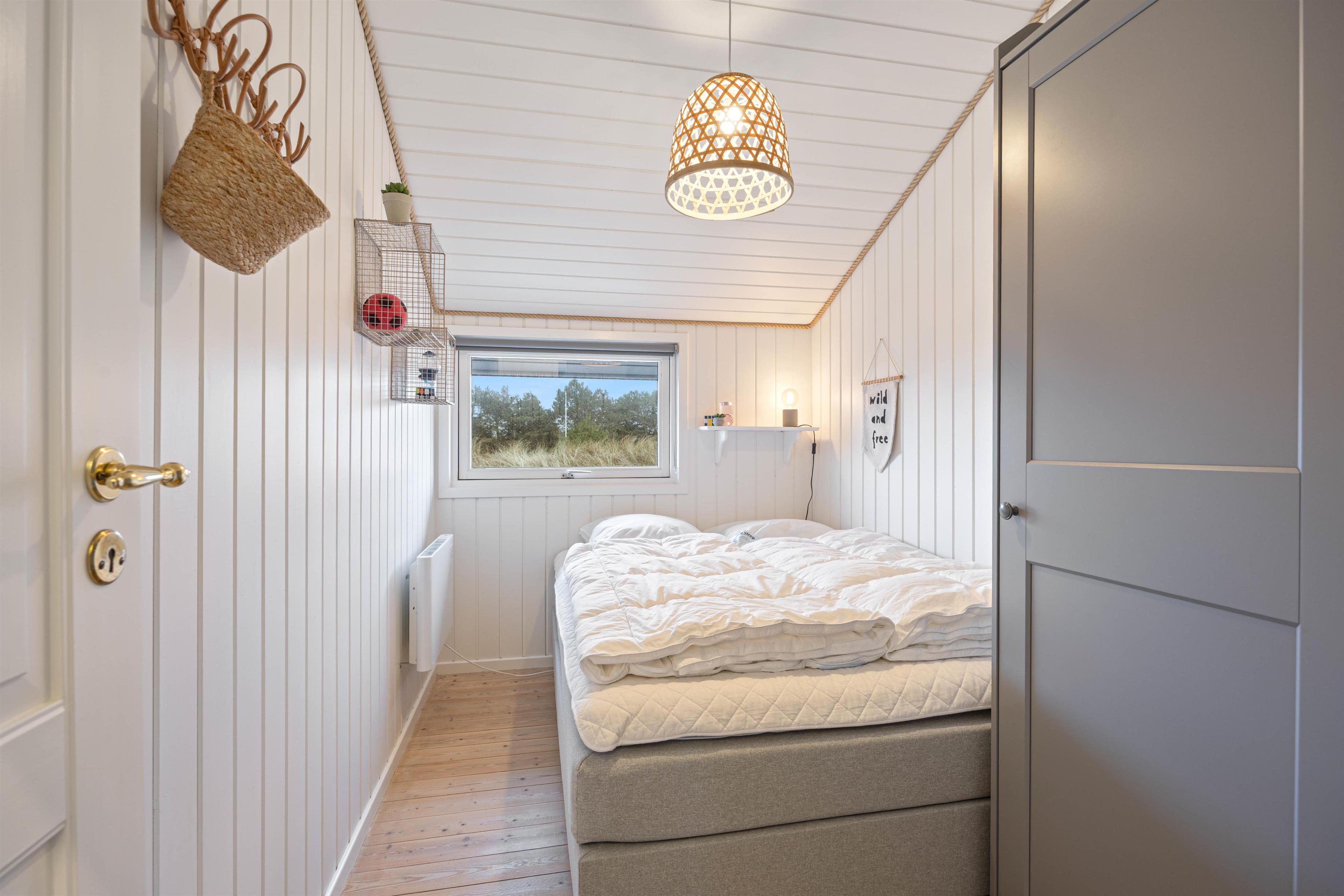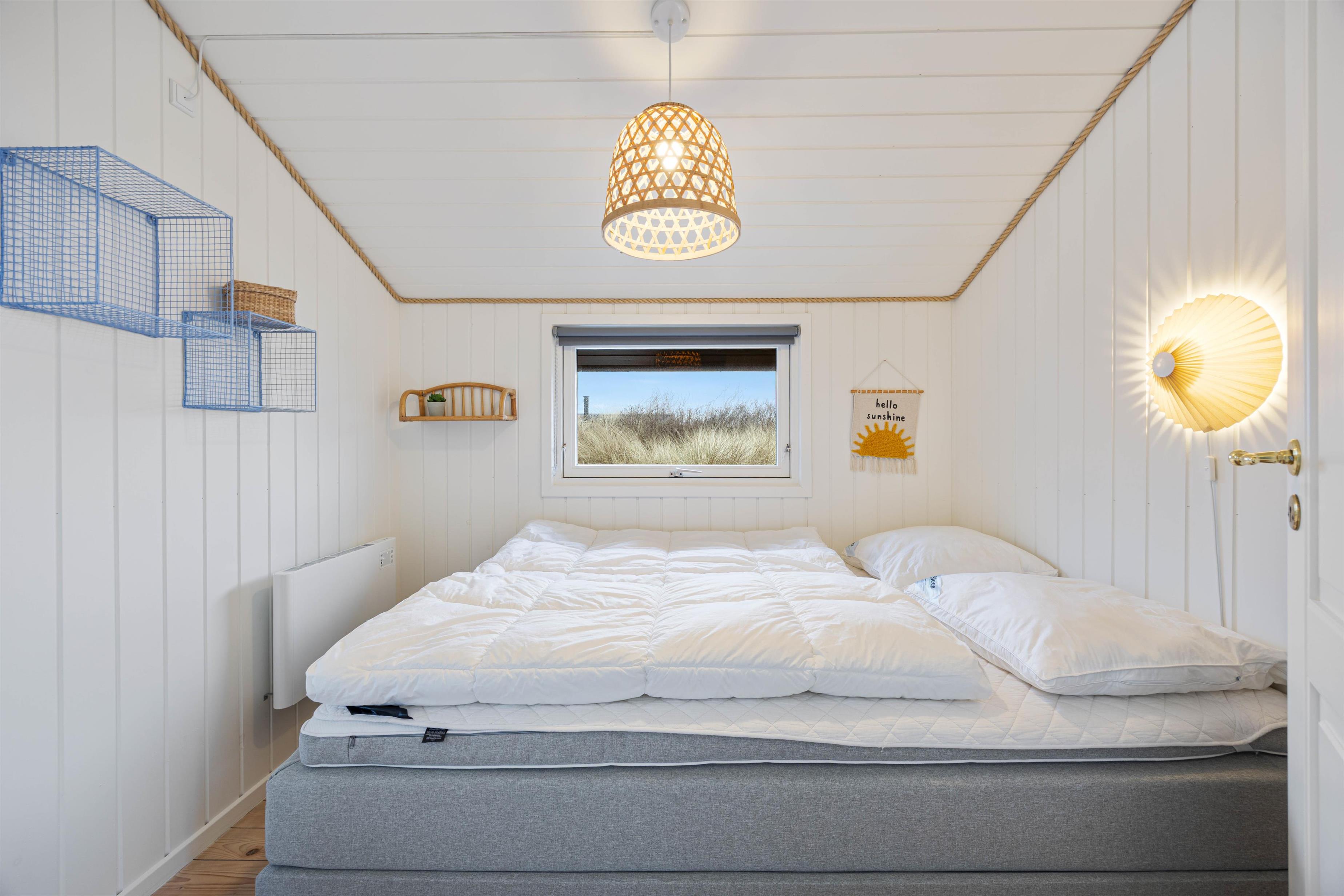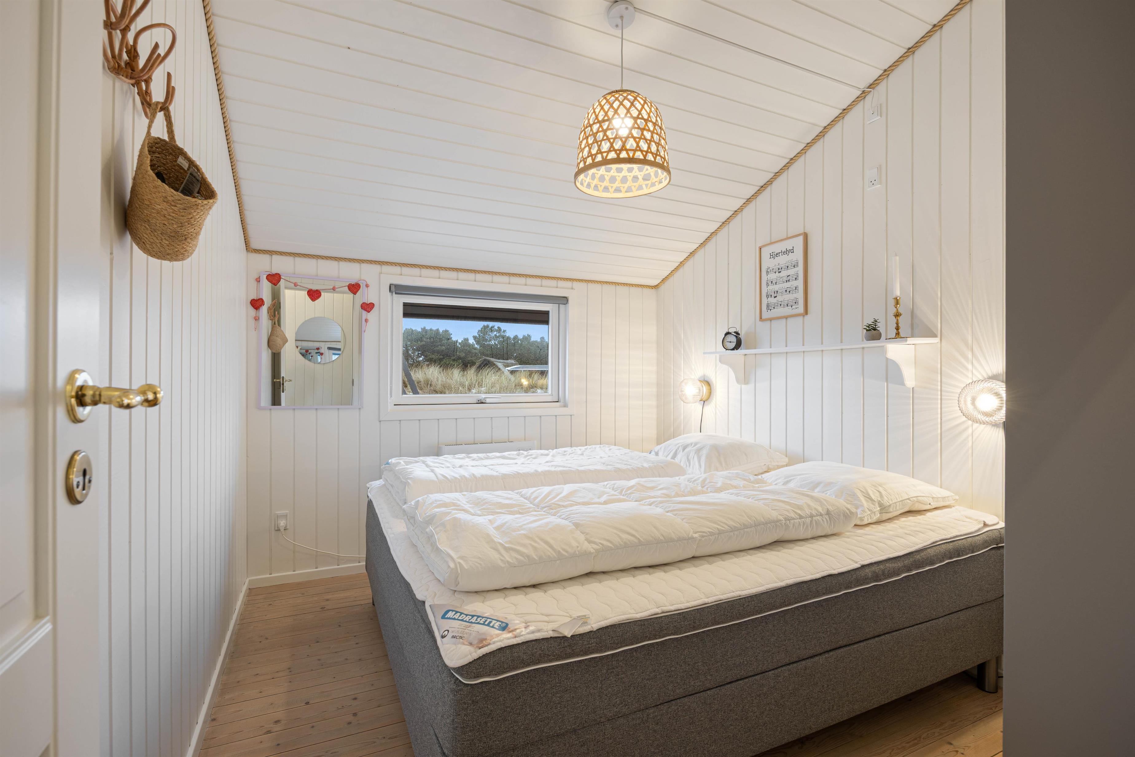 De 8 sovepladser fordeler sig på 4 soverum, så der er god plads til hele familien eller vennegruppen. Sommerhuset råder over 2 badeværelser, begge med gulvvarme, så I får ekstra komfort – især på de kølige morgener. Det ene badeværelse byder desuden på en sauna og tømmespa, hvor I virkelig kan forkæle jer selv efter en dag i den friske havluft.