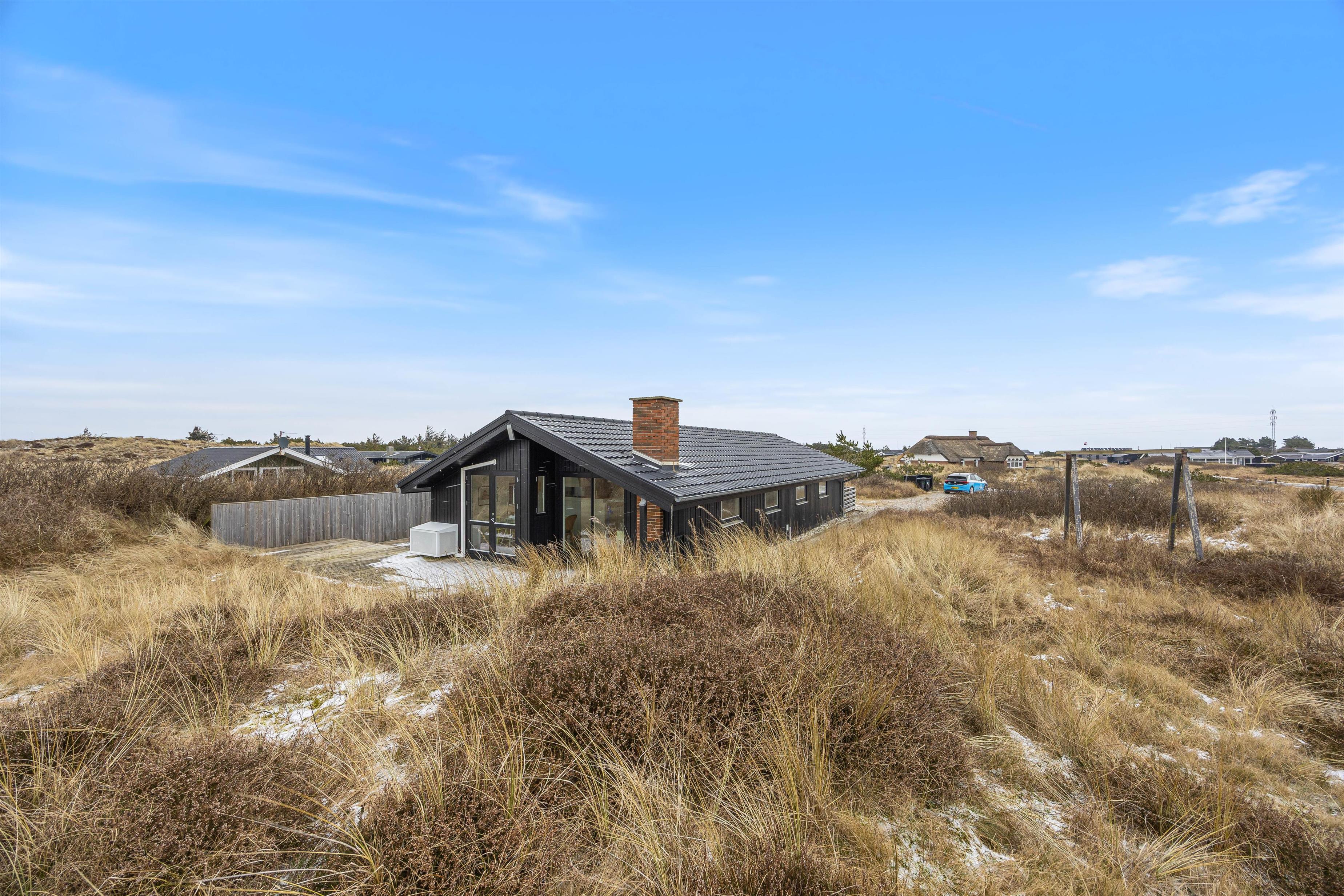 Sommerhuset ligger på en flot natur- og klitgrund, hvor I virkelig kan mærke Vestkystens særlige stemning. Rundt om huset finder I flere dejlige terrasseområder, så I altid kan finde en plads i læ eller sol.