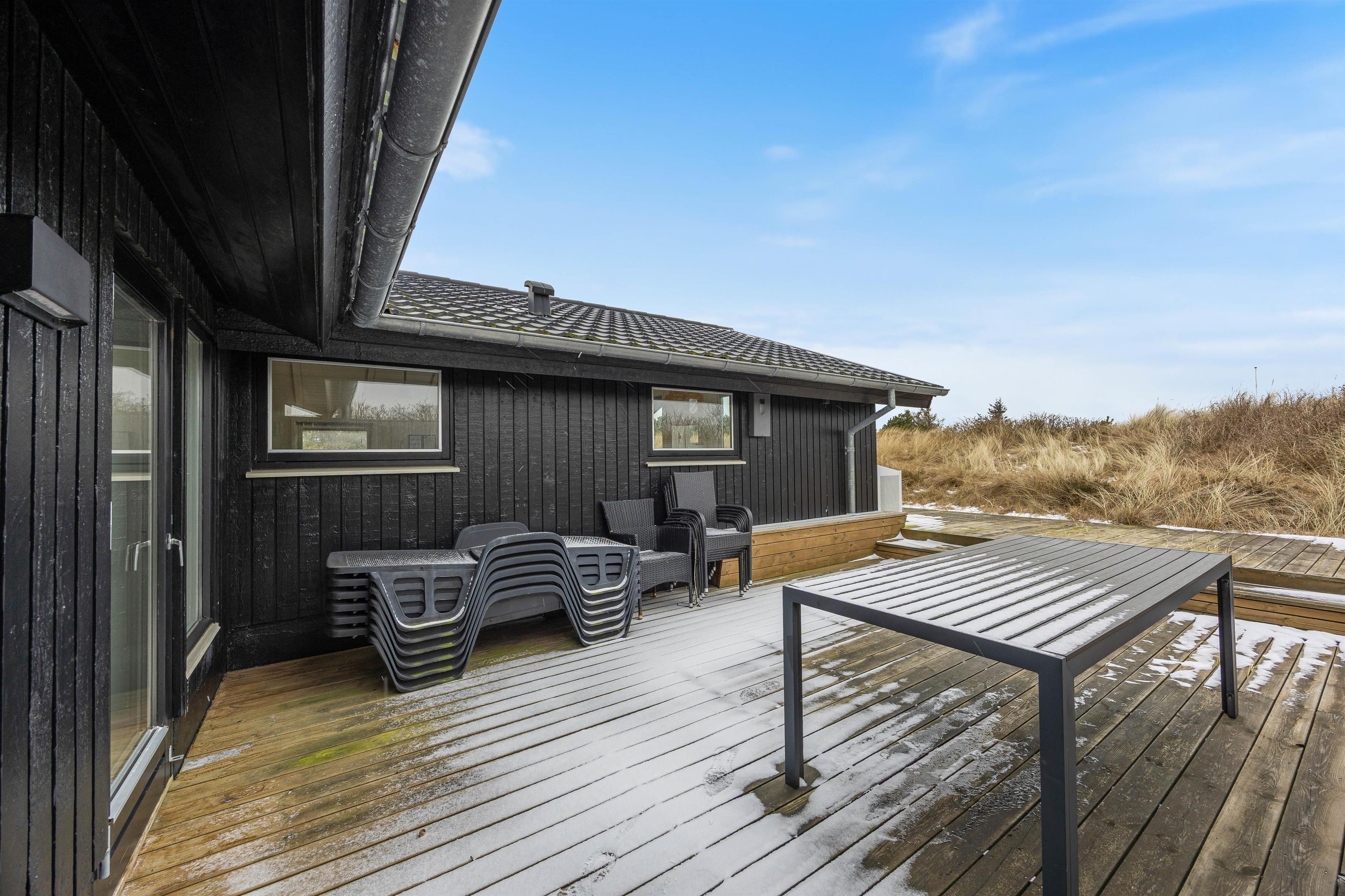 Terrassen er både afskærmet og delvist overdækket, hvilket giver jer mulighed for at sidde udenfor i al slags vejr. Havemøbler står klar, så I kan nyde morgenkaffen i solen eller samle familien til hyggelige grillaftener, mens vinden suser let i klitterne omkring jer.