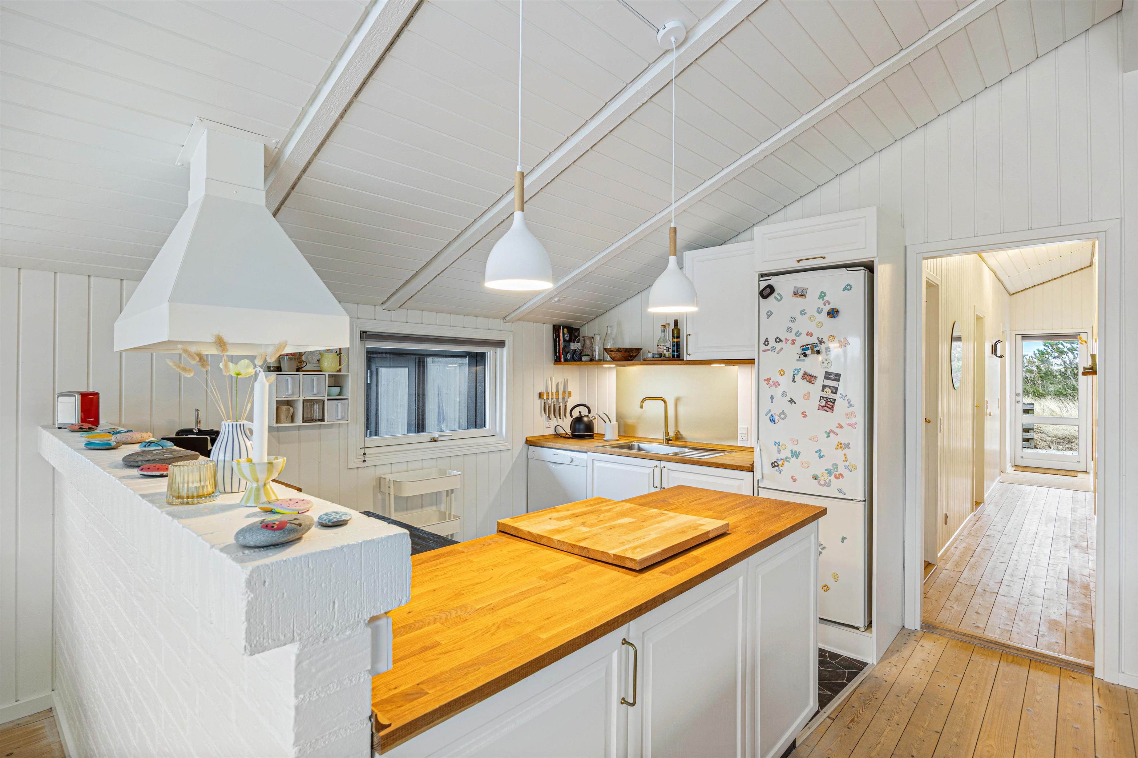 Køkkenet er praktisk indrettet med blandt andet opvaskemaskine, så ferien bliver så nem som mulig. Derudover er sommerhuset udstyret med både vaskemaskine og tørretumbler, hvilket er ideelt til længere ophold.