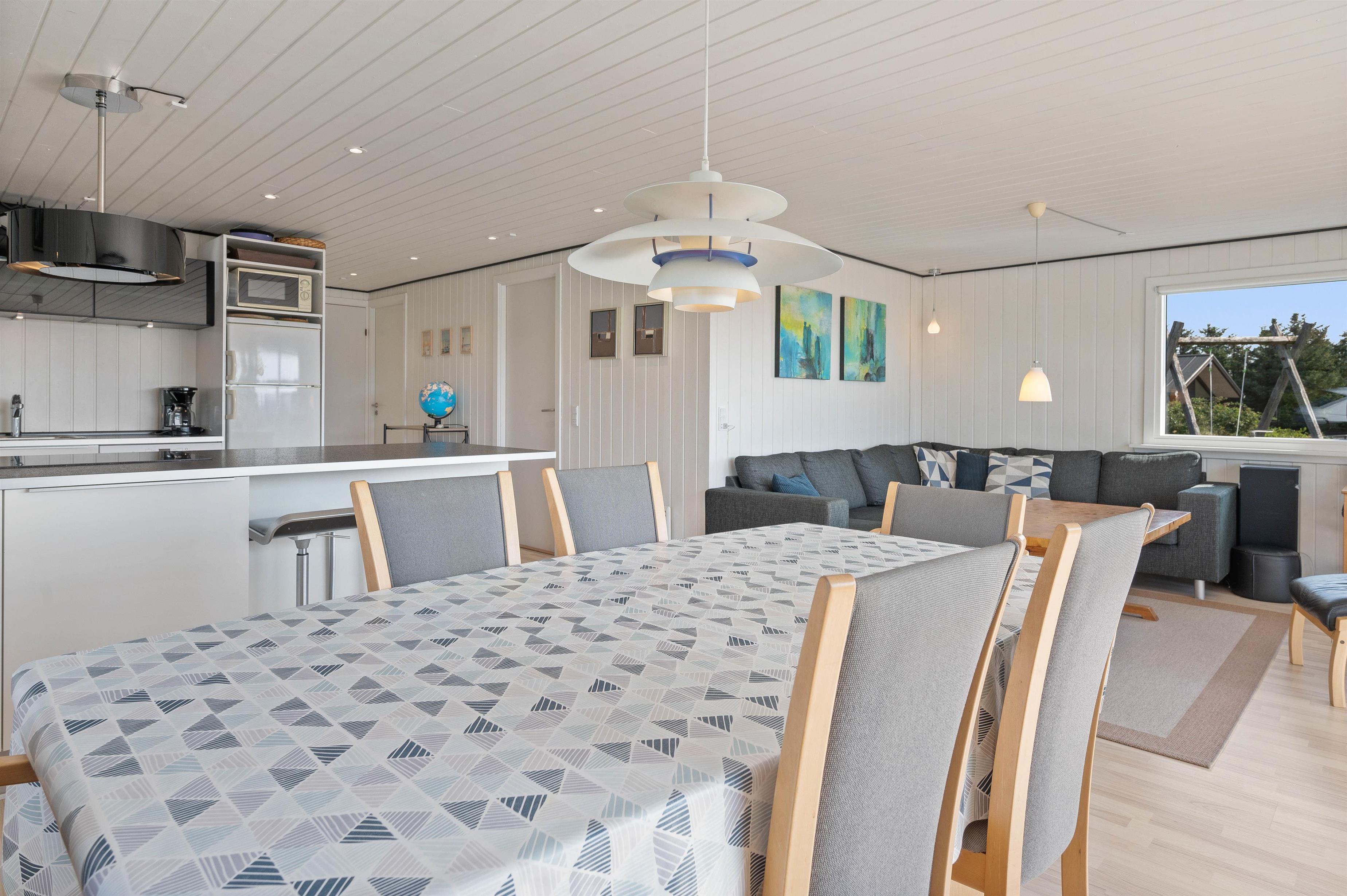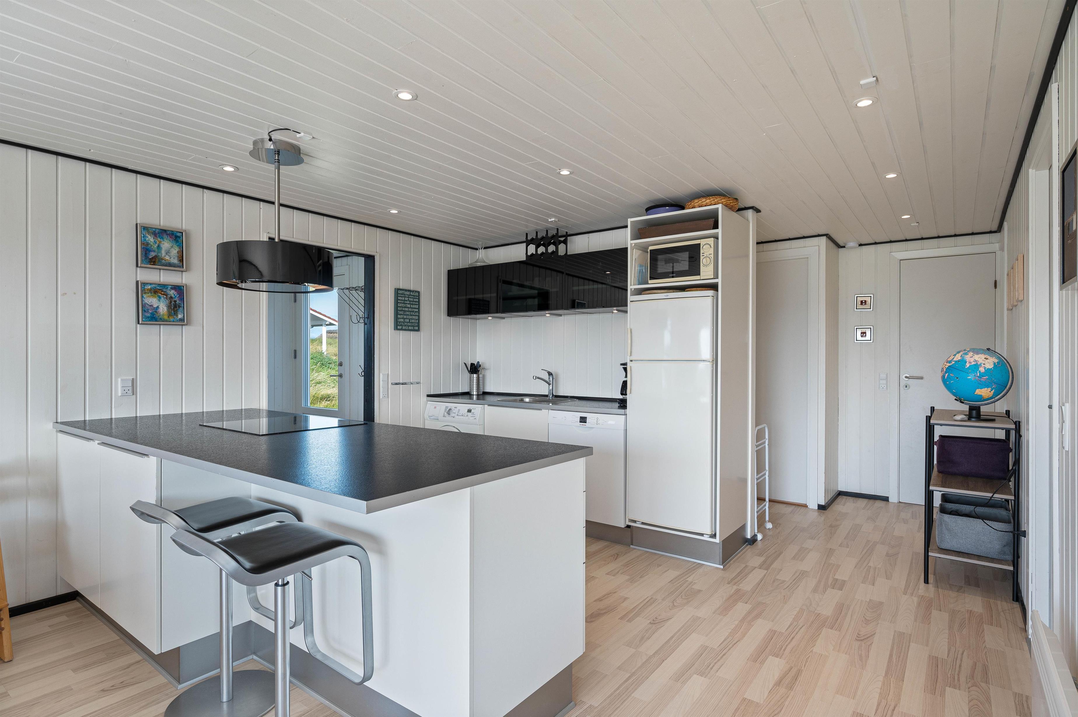 Lige så snart I træder ind i sommerhuset, bliver i mødt af en lys og indbydende indretning, hvor der er god plads til hele familien. Køkkenet er fuldt udstyret, inklusive opvaskemaskine, så I kan bruge mere tid på at slappe af.