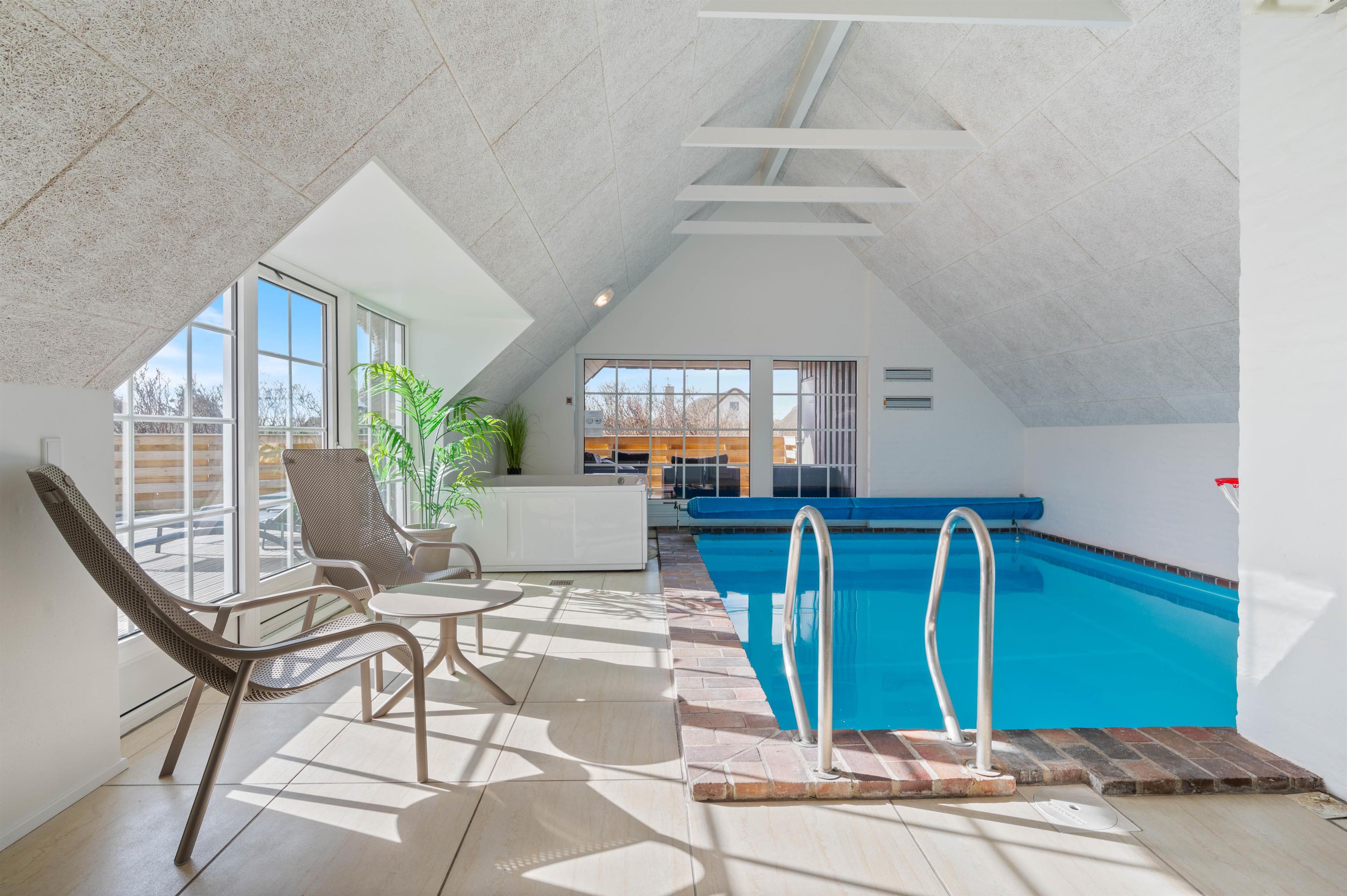Flere af højdepunkterne i sommerhuset på Kræ Degns Vej 50 finder I i poolrummet. Her står den 20 kvadratmeter store swimmingpool klar til vandhundene, som helt sikkert kommer til at bruge mange underholdende timer på sjov og leg i vandet.