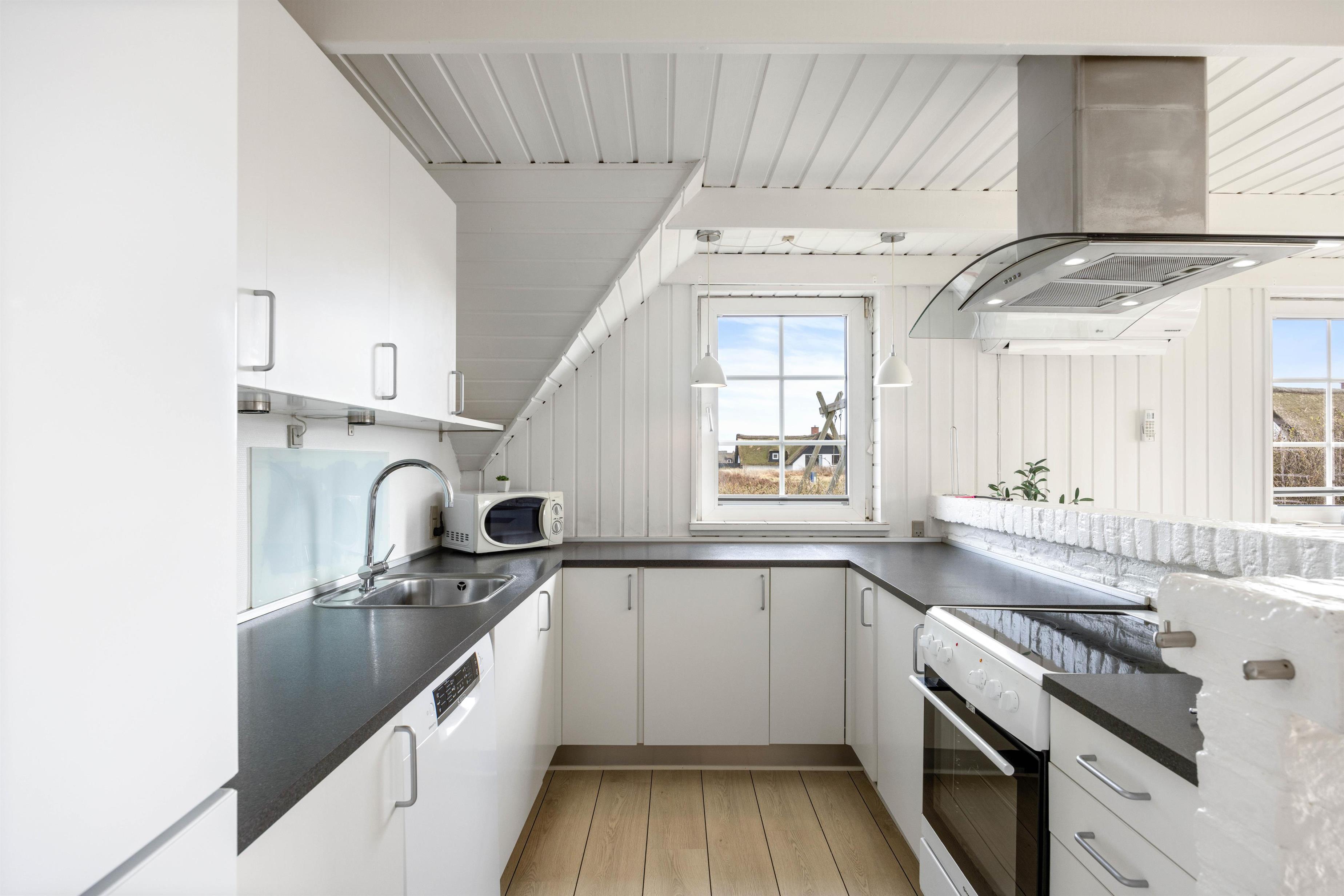 Når I har lavet mad i køkkenet, sørger opvaskemaskinen for at klare opvasken efterfølgende. Derudover har I også vaskemaskine og tørretumbler i feriehuset, som hjælper jer med tøjvasken i løbet af ferien. Sommerhuset er desuden udstyret med en energivenlig varmepumpe, der sørger for gode indendørs temperaturer.