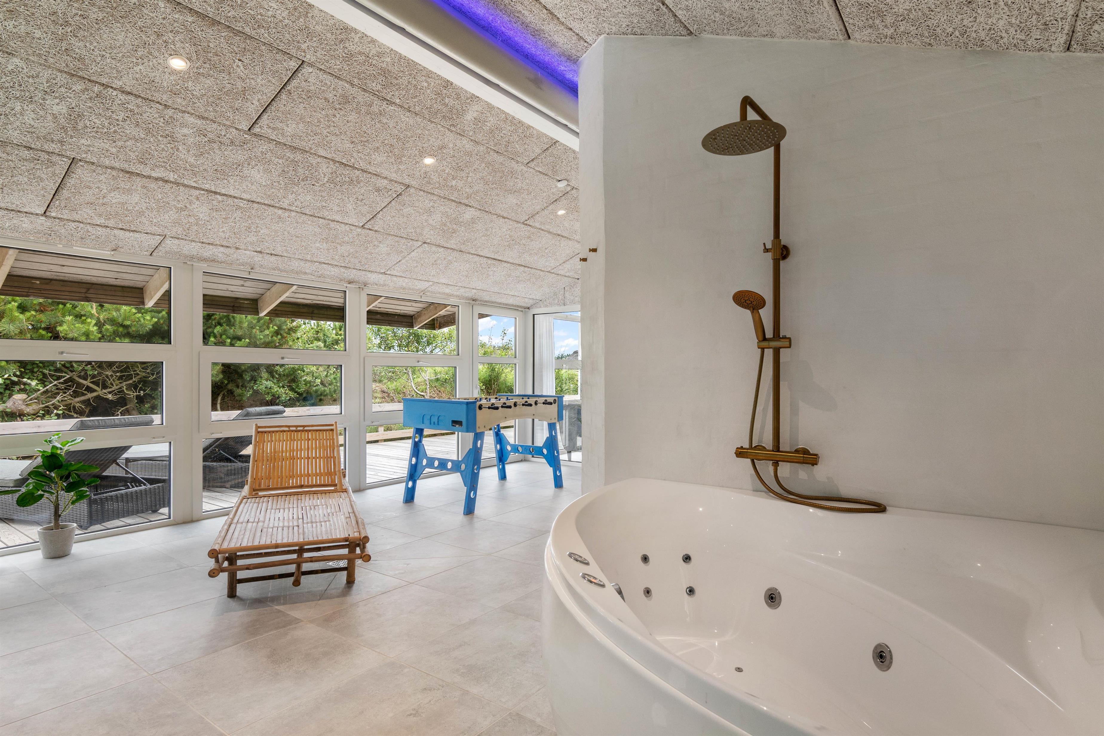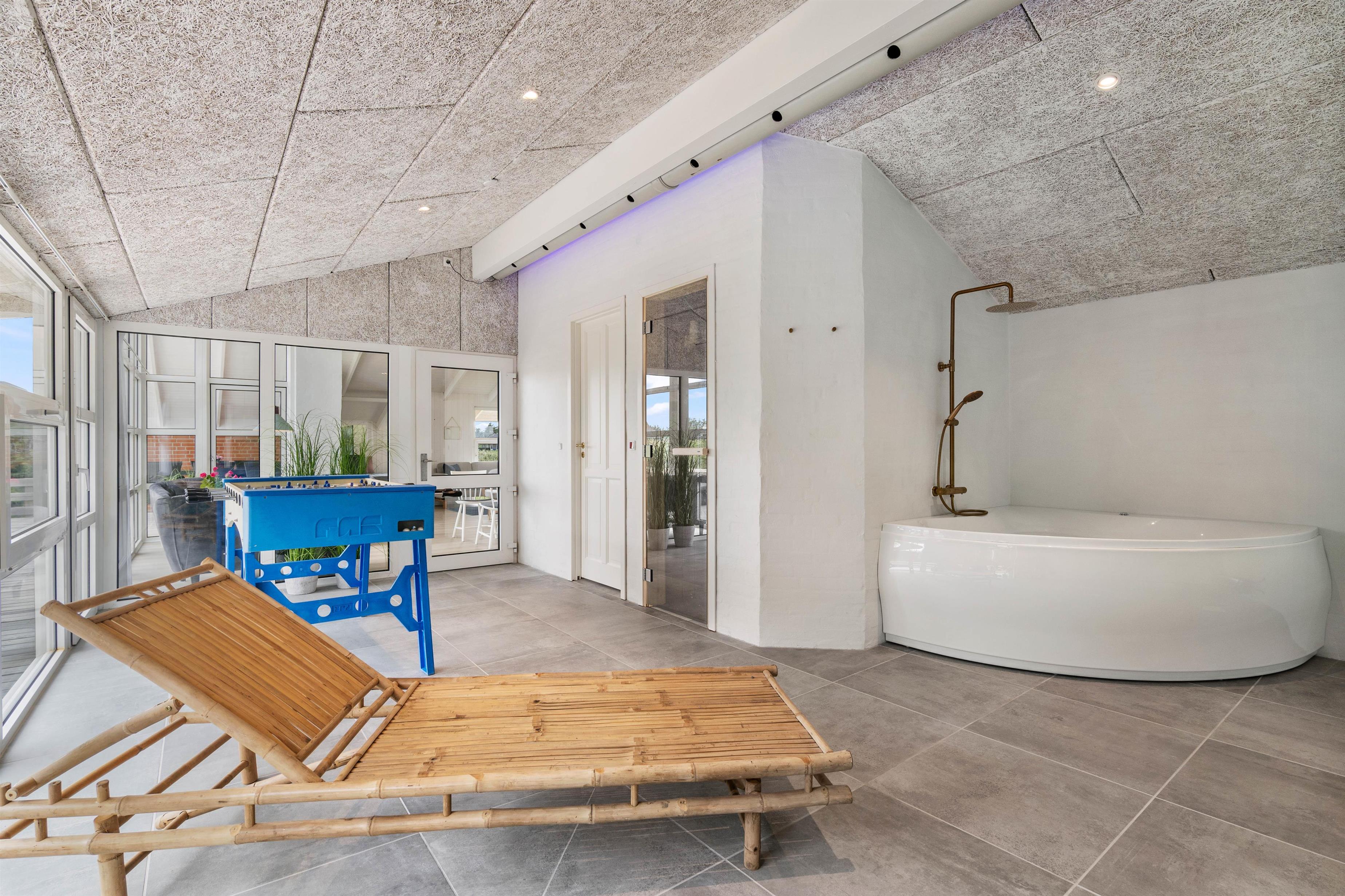 For de feriegæster som nødvendigvis ikke er så meget til swimmingpool, er der stadig mulighed for at tilbringe tid i poolrummet. Her er der nemlig et spabad og en sauna, som inviterer til afslappende stunder. Her kan I komme helt ned i gear, samtidig med at I kan holde øje med børnene.