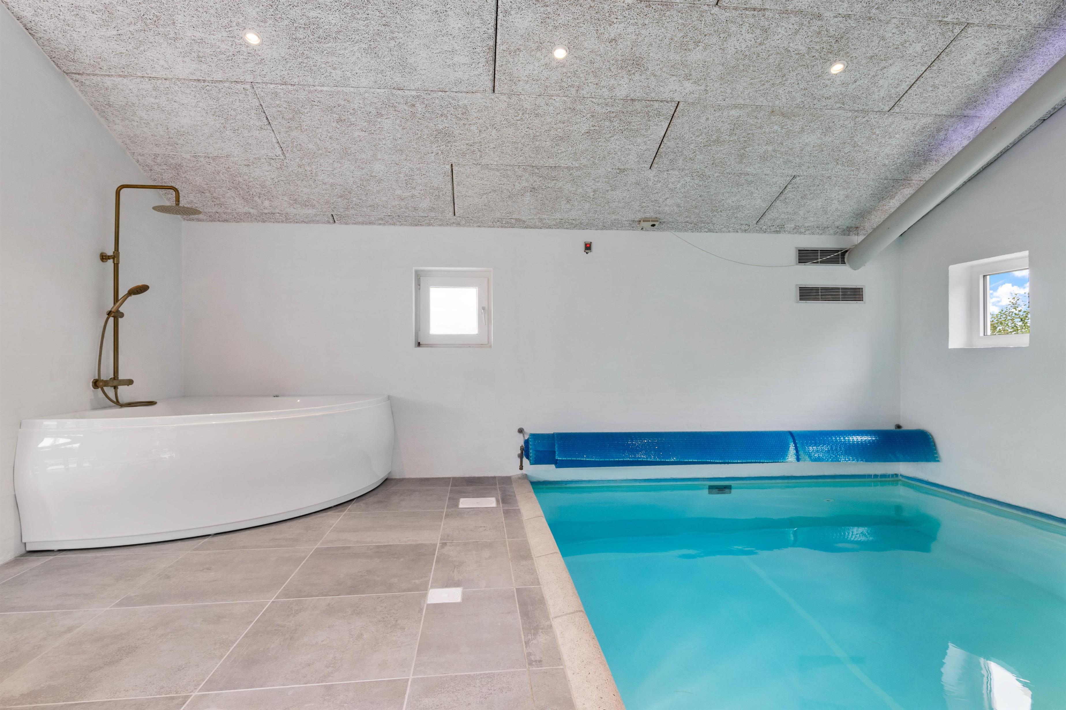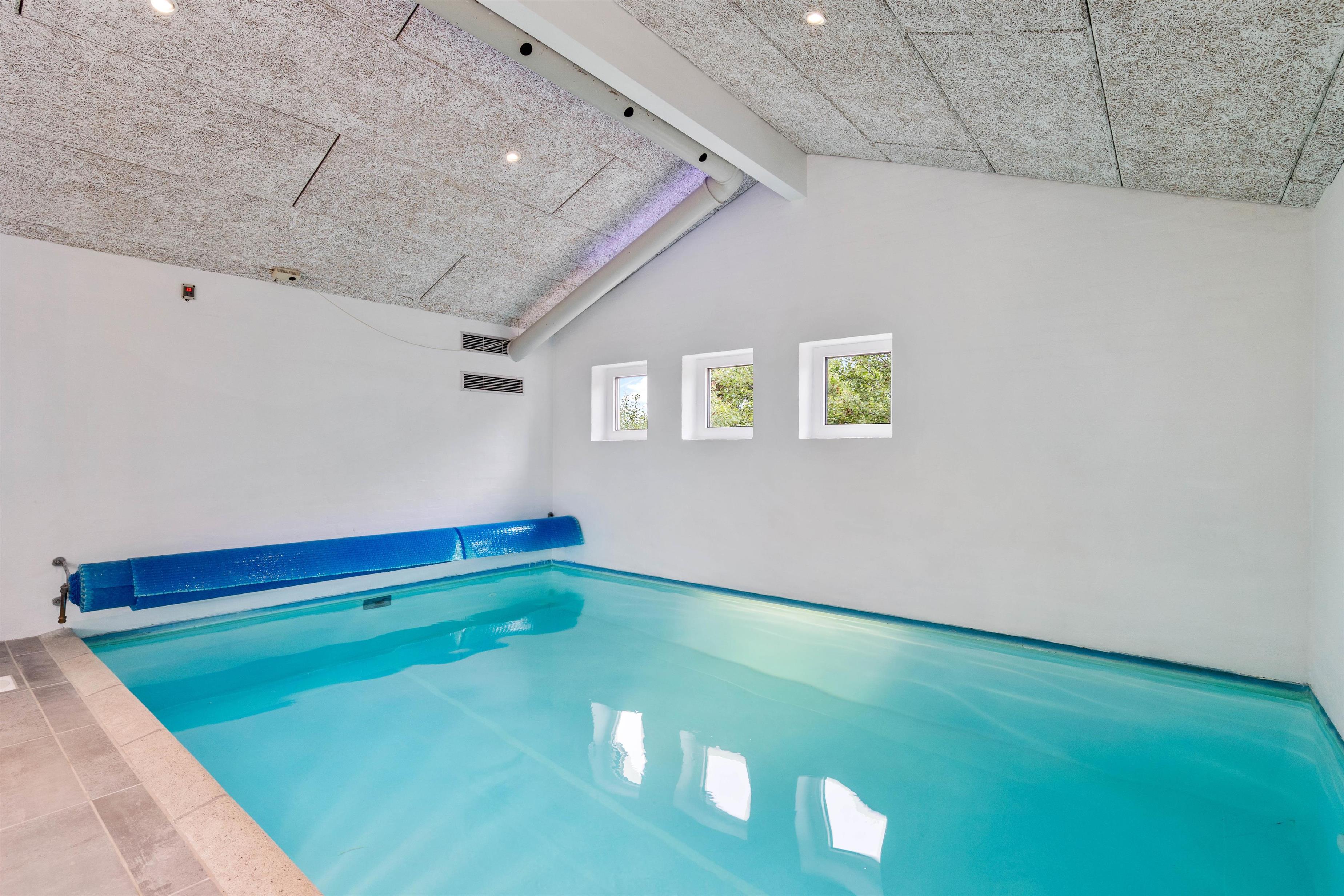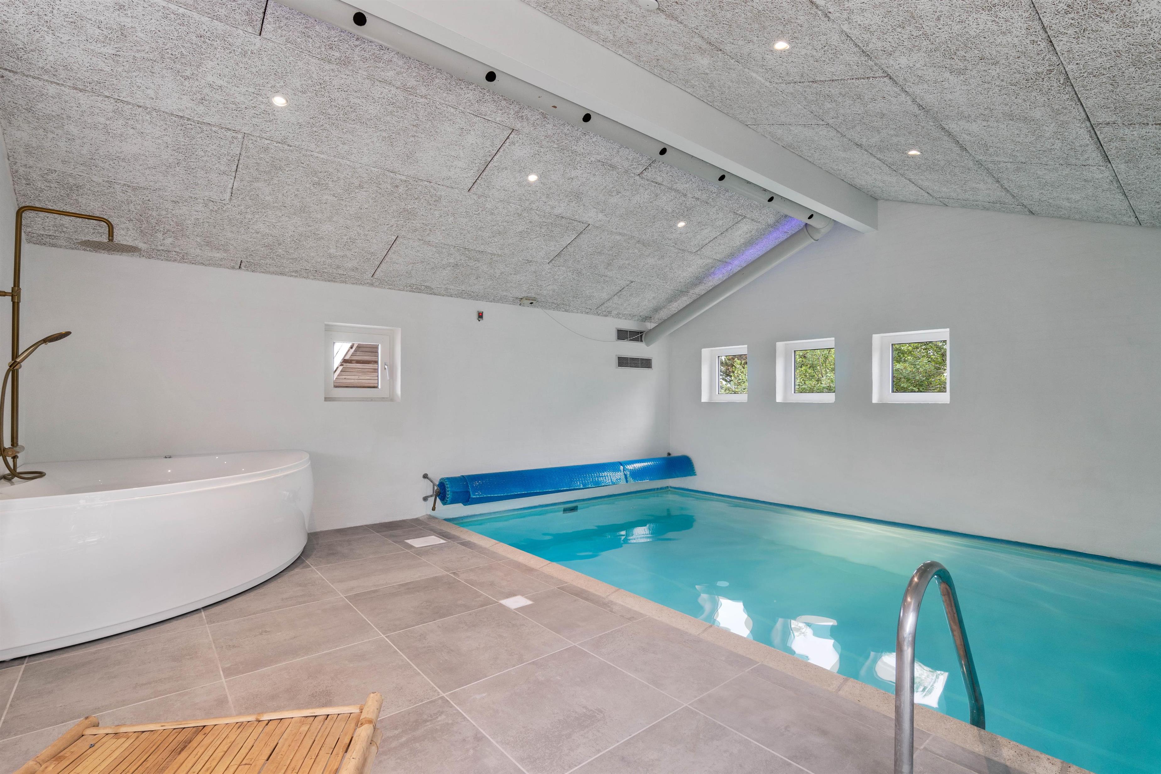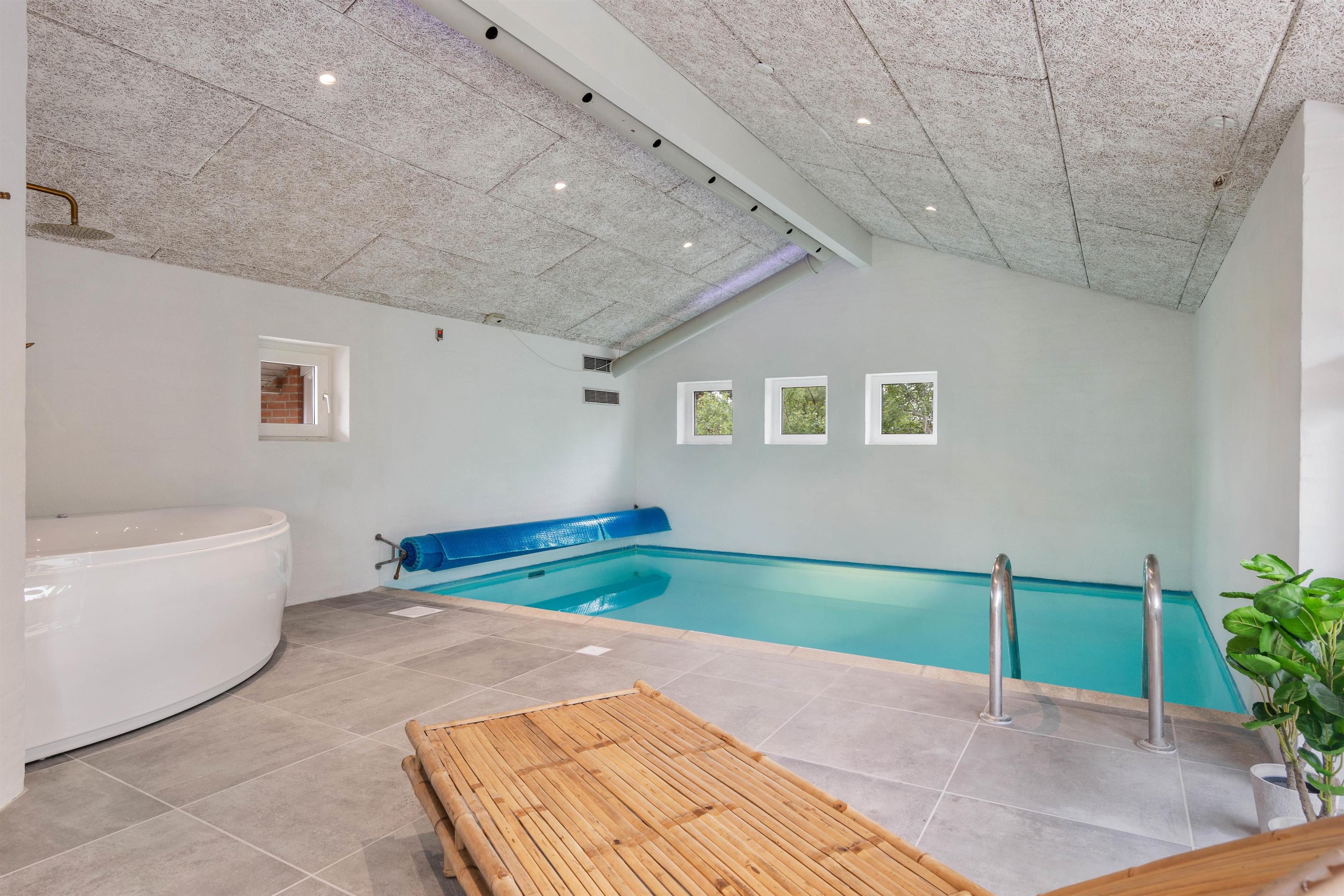 I det lyse poolrum venter jer flere af sommerhusets højdepunkter. Her kommer I uden tvivl, til at tilbringe mange af jeres ferietimer. Med den 20 kvadratmeter store swimmingpool, er der masser plads til at alle vandhundene kan bade i flere timer.