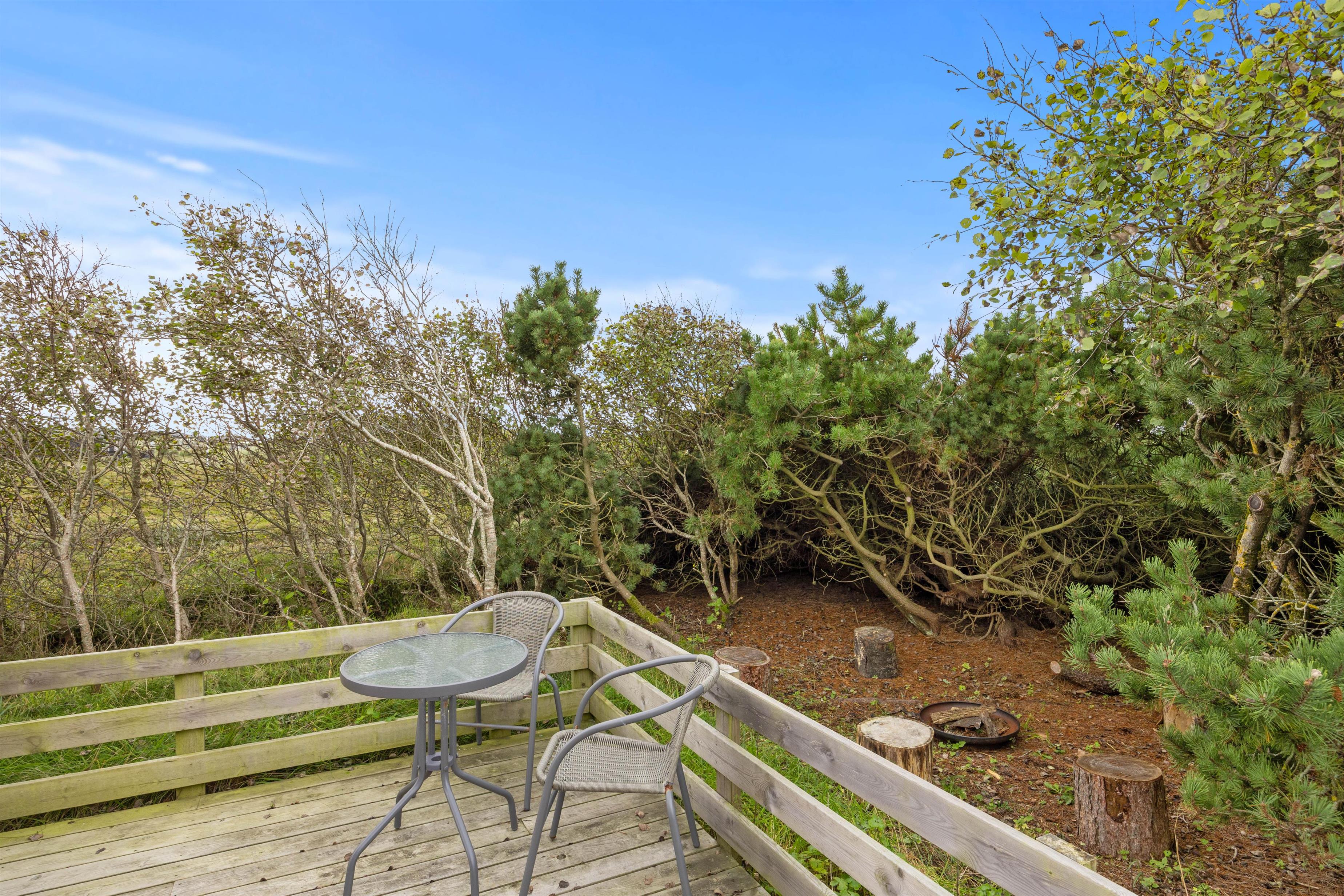 Stor træterrasse på naturgrund i Klegod